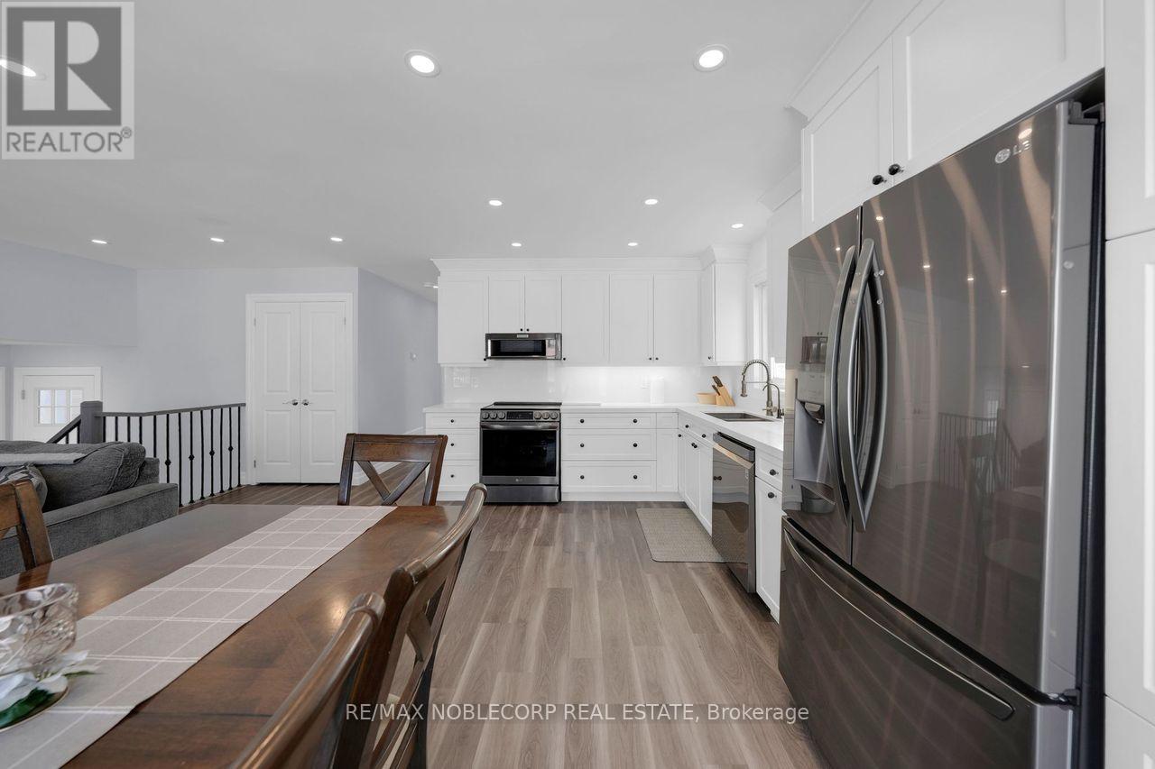 Welcome to this stunning raised bungalow in the heart of Angus, nestled in a beautiful, family-friendly community. Situated on a large lot, this home offers the perfect blend of style, comfort, and functionality. Featuring 3 spacious bedrooms on the main level plus an additional bedroom in the fully finished basement, there's plenty of room for growing families or multi-generational living. The open-concept layout is filled with natural light throughout, creating a bright and inviting atmosphere. The show room-condition kitchen is truly the heart of the home, complete with very nice appliances and designed to impress. Downstairs, you'll find a cozy fireplace in the basement living area, along with the additional bedroom-perfect for guests, a home office, or extended family. This beautifully maintained home offers space, warmth, and modern living. (id:64974)