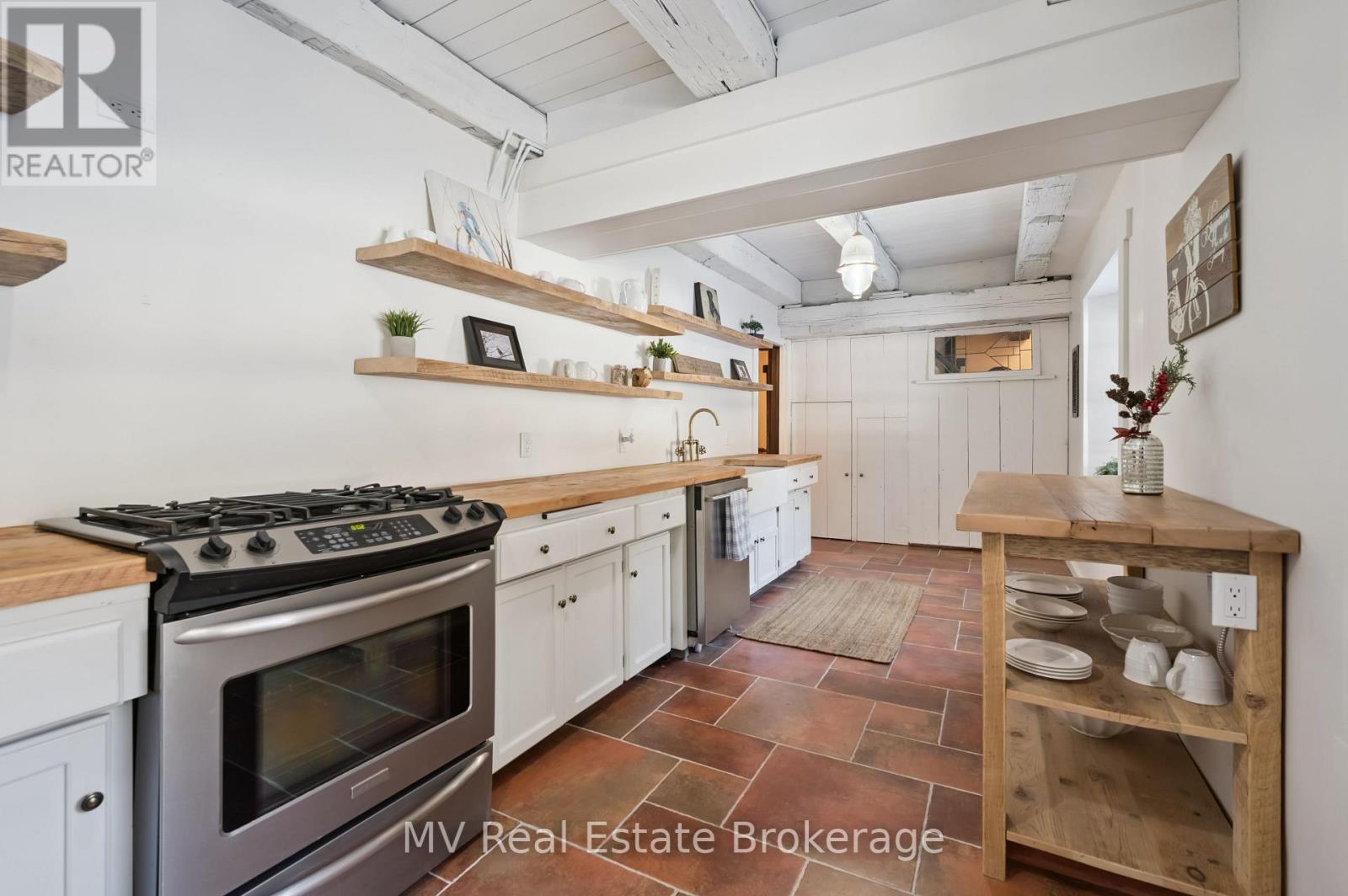 Originally built in 1856 as a mill, this extraordinary property blends historic significance with masterful craftsmanship. Set high above the gorge with the peaceful sound of the waterfall below, this is a private, serene, and truly magical piece of Elora you may not have known existed. Owned by the same family since 1965, there is truly no other property like it.The original stone exterior, hand-chiseled out of limestone from the riverbed, has been meticulously preserved, while the interior has been completely rebuilt and restored from the foundation up. Step inside to discover stunning post-and-beam construction with reclaimed, hand-hewn beams, thick handmade doors, and the unmistakable warmth of a century-old structure-yet updated for comfortable living. The kitchen counters, crafted from 100-year-old planks, pair beautifully with art-deco lighting throughout. With no interior supporting walls, the layout offers flexibility for future redesigns if desired.With five bedrooms and generous yet comfortable living spaces, the home is ideal for a single family seeking their dream home, while also being well-suited for multi-generational living. Additional highlights include a unique drive-through stone garage with upper storage, a large, dry unfinished basement plus wine cellar, and a concrete deck overlooking the river and waterfalls-an exceptional place to relax and take in the natural beauty surrounding this one-of-a-kind home.Tired of traffic to the cottage or the noise once you arrive?At 6 MillRidge Estates, you'll find the peace, quiet, and beauty you've been searching for-right here in Elora.A truly one-of-a-kind historic residence, thoughtfully reimagined as a warm, inviting, and unforgettable home. (id:64974)