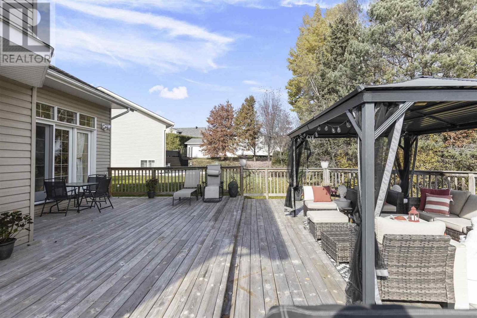 Executive 2 storey 4 bedroom home sitting in an absolute prime central neighbourhood. Nothing to do but move in, enjoy and entertain! Finished top to bottom, inside and out, this home features great curb appeal and located on an oversized pie shaped lot offering a fantastic setting and lots of privacy. Just a walk to schools, parks, Sault Area Hospital, Strathclaire recreational centre, shopping and more. Triple attached garage with drive through doors, triple concrete driveway, large back deck and a nice gazebo! Great space inside and out! Inside boasts a large foyer, open concept kitchen- dining- living rooms, patio doors to backyard space, gas forced air with central air conditioning, main floor office and laundry, true 4+ bedrooms, 3.5 bathrooms, primary with walk in and ensuite, fully finished basement and more! Basement has recrooms, guest room, bathroom, storage, infloor heating and access to garage. Newer carrier gas furnace and air conditioner, newer hot water on demand, central vac, sprinkler system and more! Don’t miss out on this opportunity to settle in style in this prime location! Call today. (id:64974)