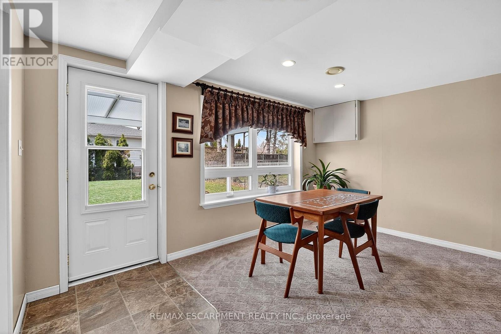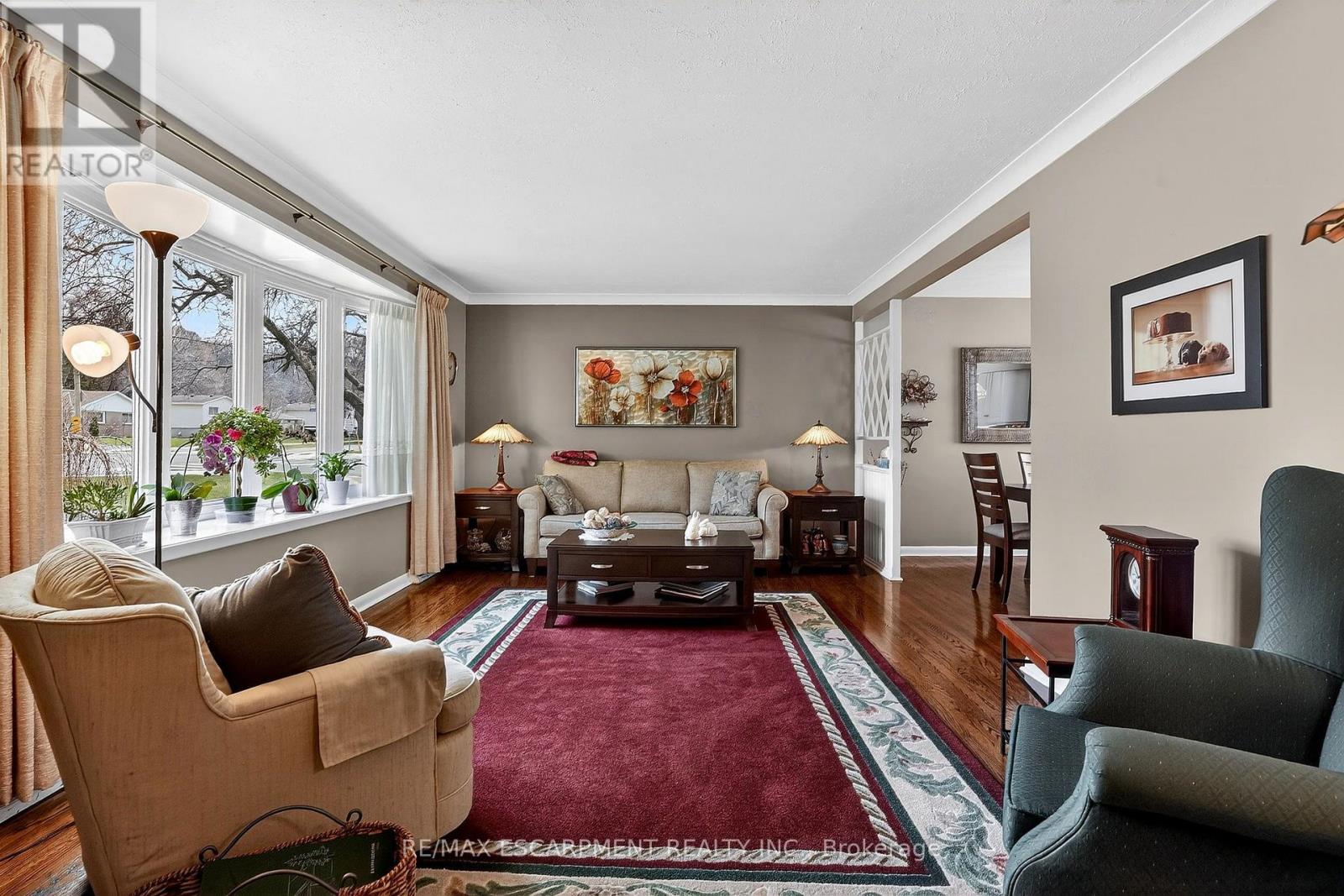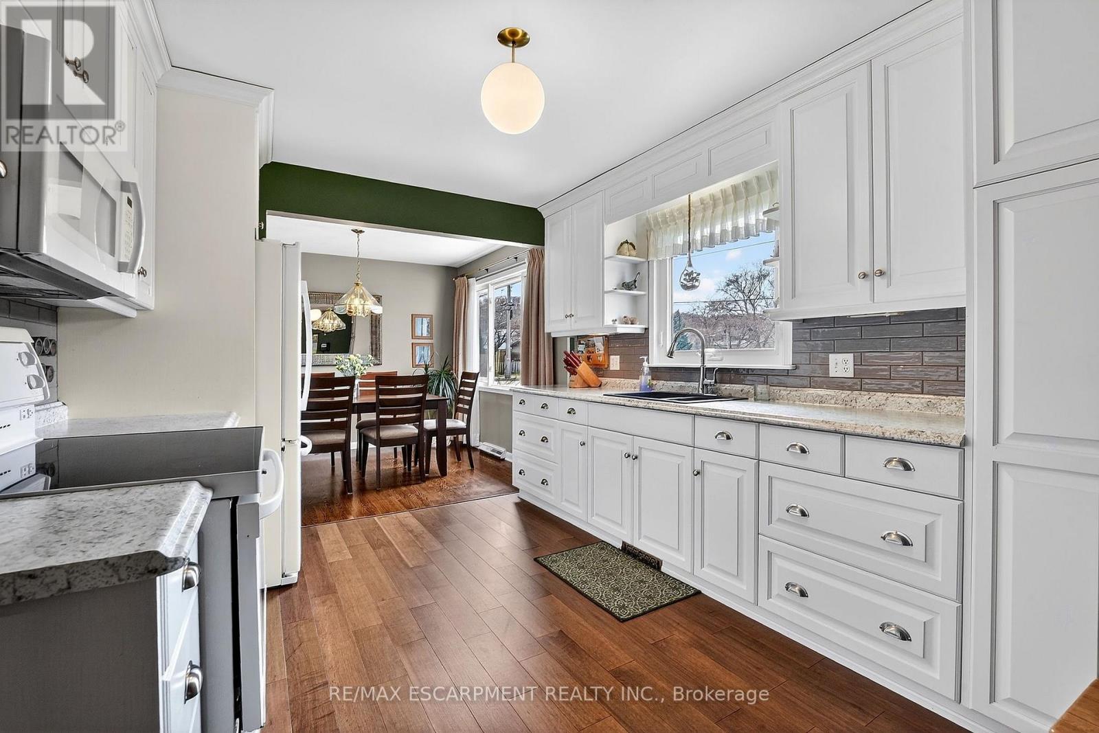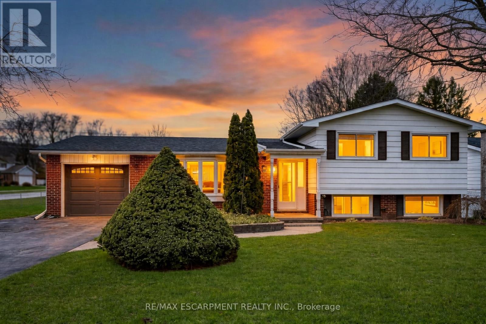 Welcome to 6 Nelles Road South, a well-maintained 3-bedroom, 1.5-bathroom detached sidesplit sitting on a generous 90' x 122' corner lot in one of Grimsby's most desirable and established neighbourhoods. Located just minutes from Grimsby General Hospital, reputable schools, the downtown core, and with QEW access nearby, this home delivers on every front. This home has classic character with some tasteful updates throughout, making it an ideal fit for families at any stage. Step inside to a beautifully updated kitchen featuring white cabinetry, ceramic tile backsplash, a dedicated pantry, and hardwood flooring. The open living and dining area flows from the kitchen, finished with oak hardwood and sized perfectly for relaxed family evenings and larger gatherings. The updated 4-piece main bathroom is finished with a ceramic tub surround, ceramic tile flooring, and a clean white vanity. Three bedrooms are found on the upper level, each presenting oak hardwood flooring and closet space. The bright walkout basement extends the living area, featuring a spacious rec room ideal for a playroom, home office, a convenient 2-piece bathroom, and excellent storage beneath the main level. Mechanical updates include a natural gas furnace (2023), and vinyl thermal windows updated over the years. The home is also equipped with a lawn irrigation system. Outside, the large corner lot provides an impressive side and rear yard with plenty of room for children, gardens, and entertaining. The rear yard has a covered rear patio while the long driveway parks up to three vehicles. Attached garage with garage door opener. Replacement front door has been ordered and will be installed in next 6-8 weeks (same colour brown with side glass). (id:64974)