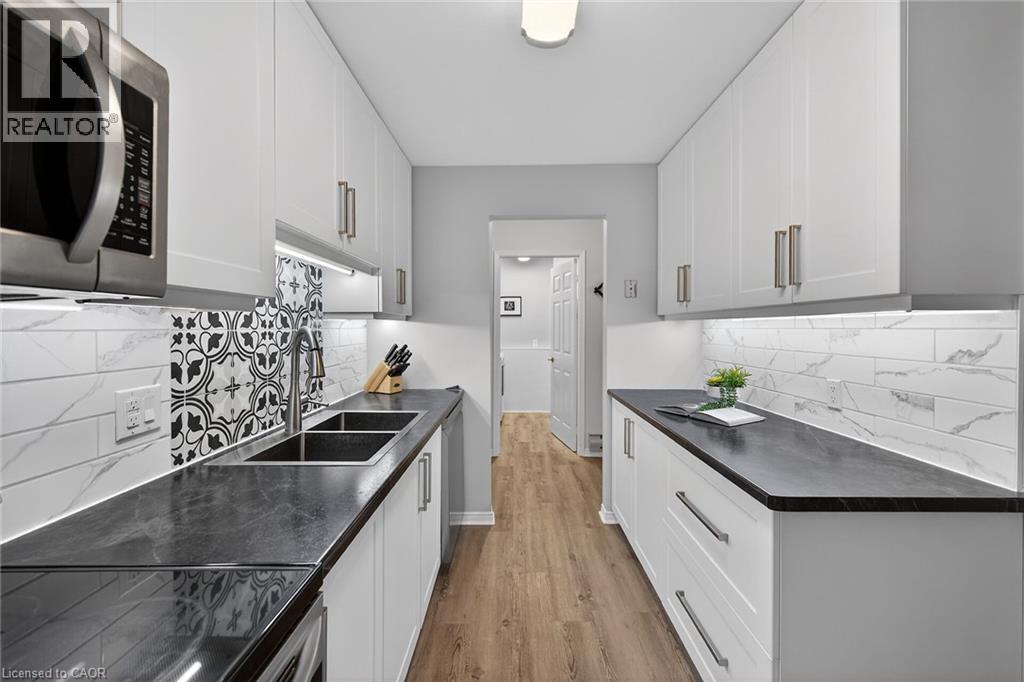 Gorgeous move in ready 2-bedroom unit! This unit could be the one as it has an updated kitchen with a tile backsplash, modern stainless-steel appliances. The bathroom is spacious and was also updated a few years ago. Unlike most other condo's, this one was a full laundry room in the unit with modern cabinets (for extra storage) and updated washer and dryer. Got King Size beds? Not a problem as the bedrooms here are quite roomy and with good closet space. The building has a locked foyer, an elevator, underground parking, common locked storage for bikes, 1 assigned parking space per unit, additional parking can be rented. Location couldn't be better! Walking distance to downtown, churches, great schools, parks, hiking trails, shopping, dining, entertainment & minutes to the QEW & future Go Station at Casablanca Blvd. (id:64974)