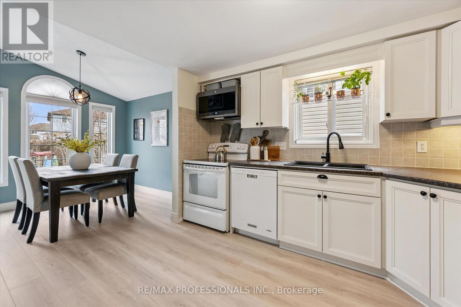 Lovely, well-maintained 2-story home in the desirable Laurentian Hills neighbourhood - an excellent opportunity for first-time buyers or growing families. This home has been thoughtfully updated and carefully cared for over the years. The bright and modern kitchen offers a clean and timeless feel, which opens into the dining area which features a vaulted ceiling. The main floor is completmented lovely living room, and a convenient main floor powder room. Upstairs features three spacious bedrooms, including a generous primary suite with his & hers closets and a 5-pc cheater ensuite. The finished basement adds valuable living space with a comfortable rec room and separate den - ideal for a home office or gym. The basement also offers a full 3-pc bath and an adorable laundry nook. Step outside to enjoy summer evenings on the back deck overlooking a private yard complete with a gorgeous Linden tree and raspberry bushes - a welcoming outdoor space to relax or entertain. Important mechanical updates over the years will provide peace of mind. Some of the updates include: Flooring (main floor -2026); Furnace/AC (2021); Upper floor windows and stairwell windows (2022); Eavestroughs with covers and downspouts (2022); and much more. Located close to shopping, schools, parks, restaurants, and with easy highway access for commuters, this is a well-rounded home in a convenient, family - friendly area. (id:64974)