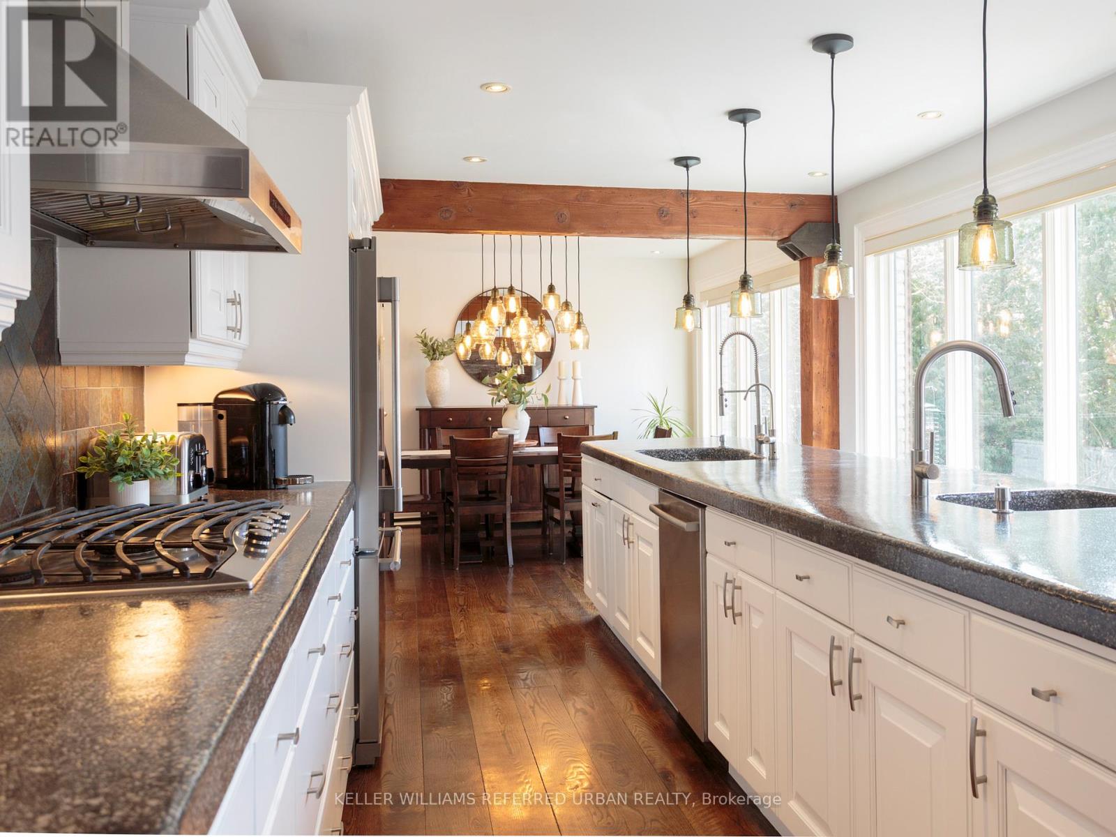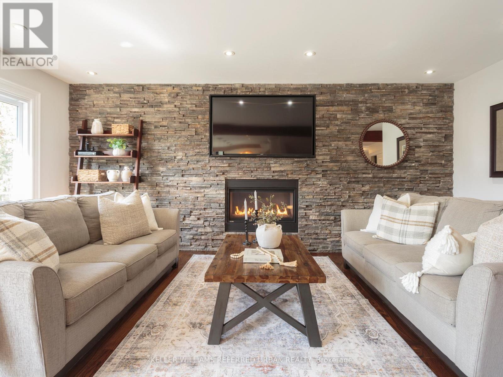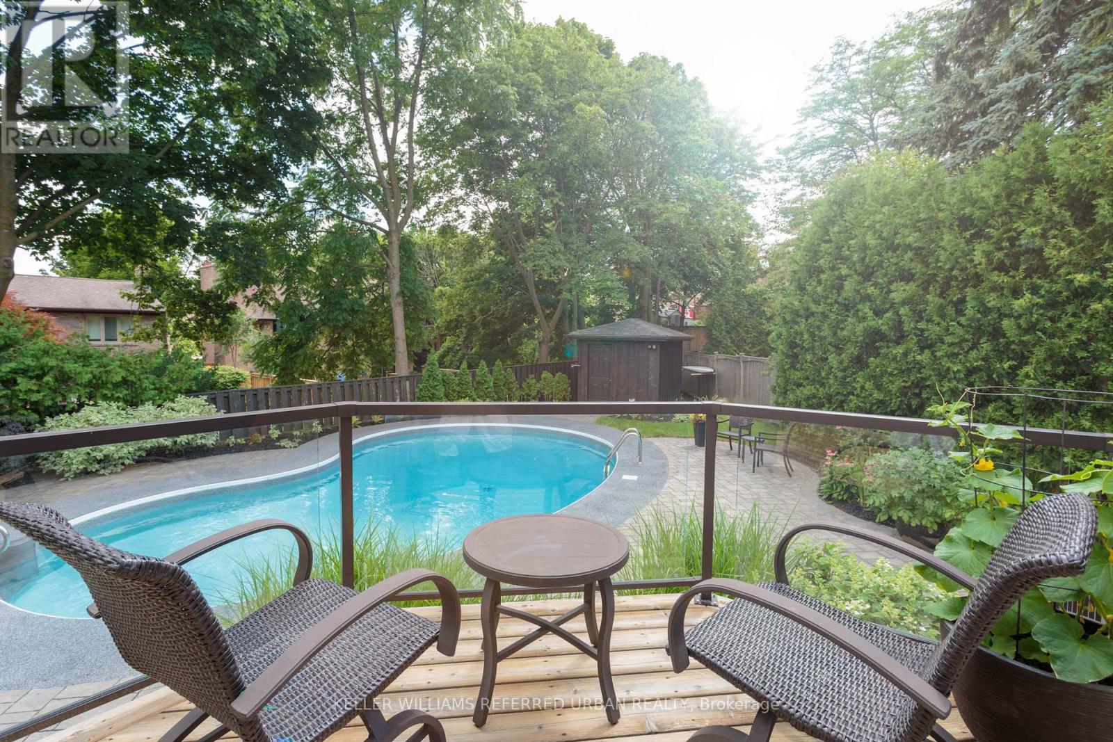 Tucked away on a quiet cul-de-sac where properties rarely become available, this customized home is move-in ready and waiting for you! The safe, welcoming community is an ideal setting for growing families, with a huge park across the street, fantastic neighbours, and access to top-rated schools. Enjoy your morning coffee on the front porch overlooking professionally-landscaped perennial gardens, or on the the back deck overlooking the pool and mature trees. Inside, you'll find thoughtful renovations with exceptional attention to detail throughout. The main floor offers the perfect blend of comfort and style, with an open-concept kitchen, dining room, and cozy family room set against a wall of windows, and a separate formal living room for hosting guests. Convenience is key with a mud room off the side entrance, a powder room, and interior access to the spacious 2-car garage. Upstairs, the generous primary bedroom features a 4-piece ensuite bath, and walk-in closet with built-in organizers. You'll appreciate the privacy provided by the split-layout design, with a laundry room situated between the primary and the other two large bedrooms. Downstairs, the finished basement is multi-functional with a rec room, gorgeous 3-piece bathroom, cantina, and two more bedrooms that can be guest rooms, home office space, or a home gym. Surrounded by parks and nature trails, close to Unionville Main St, Toogood Pond, schools, grocery stores, restaurants, and easy access to the highway. Be sure to watch the virtual video tour! (id:64974)