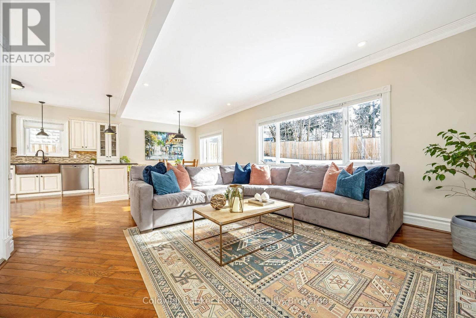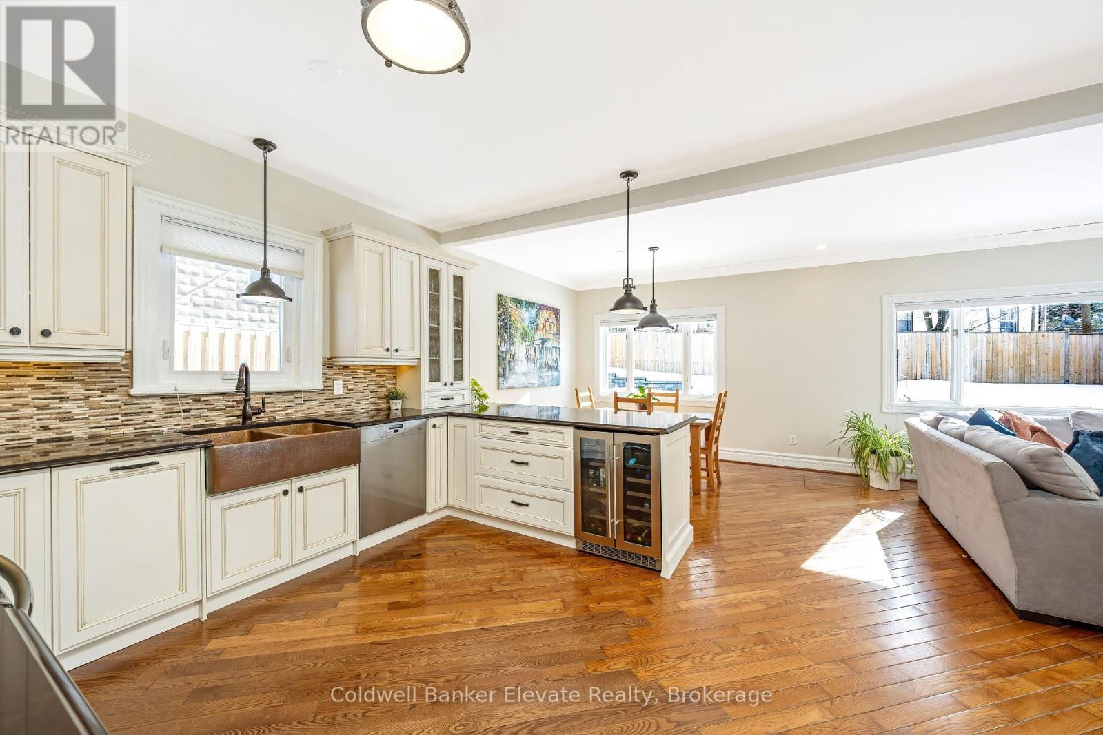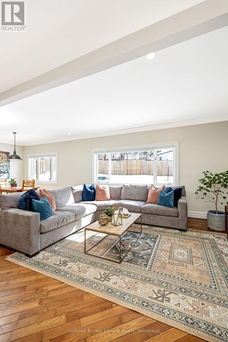 Welcome to 6 Queen Street! This beautiful, Victorian-inspired stone home is filled with charm & comfort, perfectly situated in the heart of Georgetown & just minutes from the Georgetown GO. The bright front sunroom, wrapped in windows, leads into a warm & inviting foyer featuring hardwood flooring, high baseboards, deep-set windows, and 10-foot ceilings that span the main level. The living room boasts hardwood floors, a bay window overlooking the front yard, and one additional large window flooding the room with natural light. The dining room offers a cozy wood-burning fireplace, creating the perfect ambiance for gathering. A main floor office with wood-panel wainscoting provides an ideal work-from-home space & can easily double as a main floor bedroom. A spacious addition expands the living area, showcasing an updated open-concept kitchen with granite counters, shaker cabinets, a double sink, built-in microwave, wine & beverage fridge & a window overlooking the side yard. The bright and airy breakfast area opens into the large family room, where a picture window frames views of the backyard & includes a convenient walkout to the side yard. A charming main floor powder room is an added bonus! Upstairs are two bright bedrooms with the primary featuring hardwood floors & a walk-in closet. The second bedroom also includes hardwood flooring and a beautiful bay window overlooking the front yard. The updated five-piece family bath offers a free-standing soaker tub, glass-enclosed walk-in shower, double sink & built-in vanity. The lower level provides excellent additional space for family or guests, complete with a rec room, bonus room/den & secondary kitchen. This basement also includes a brand-new three-piece bathroom with glass shower, laundry area with cabinetry & a folding counter. Outside, the large, fenced yard features an interlock patio, a shed, & plenty of room to play. Enjoy being a short walk to parks, schools, shops, & Georgetown's charming downtown. (id:64974)