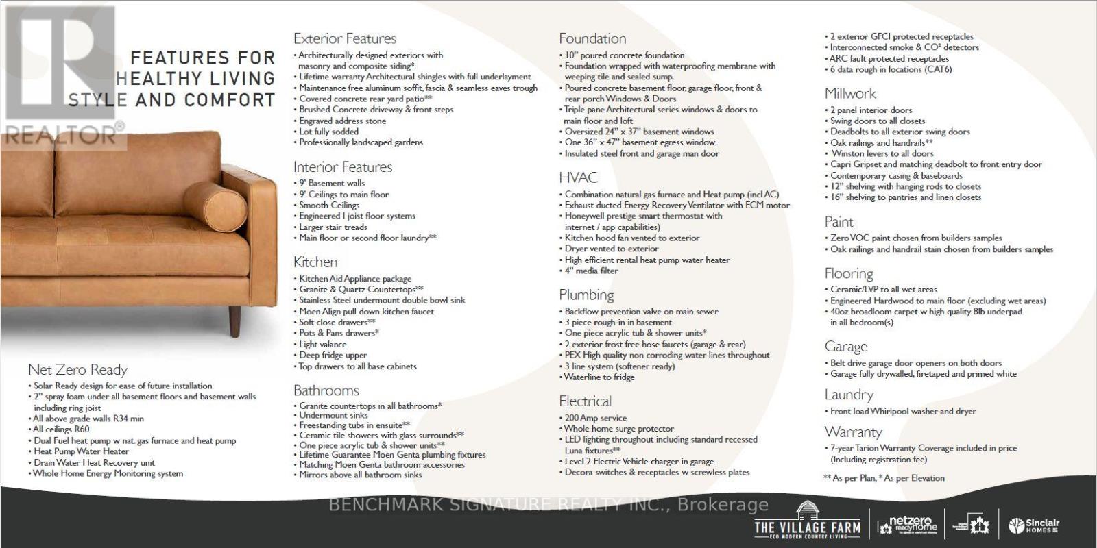 Discover country living with a Net Zero Ready home built above code featuring R34 insulation, triple-pane windows, and 2" spray foam under the basement slab for superior comfort and efficiency. Customizable finishes, ready in 90 days. Includes 9-ft ceilings, engineered hardwood, KitchenAid kitchen, covered porch, 9-ft basement, EV charger, and brushed concrete driveway. Photos are of a model home, actual home is yet to be built - see brochure for plans and finishes. *Price is inclusive of HST Rebate Buyer must qualify (id:64974)