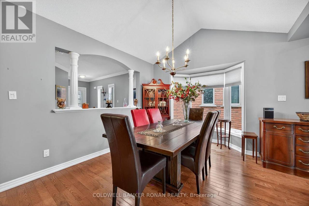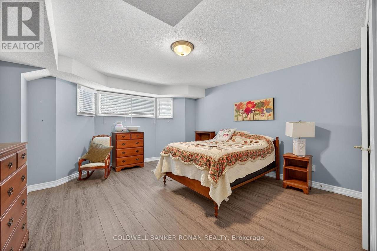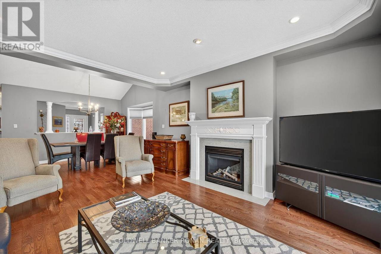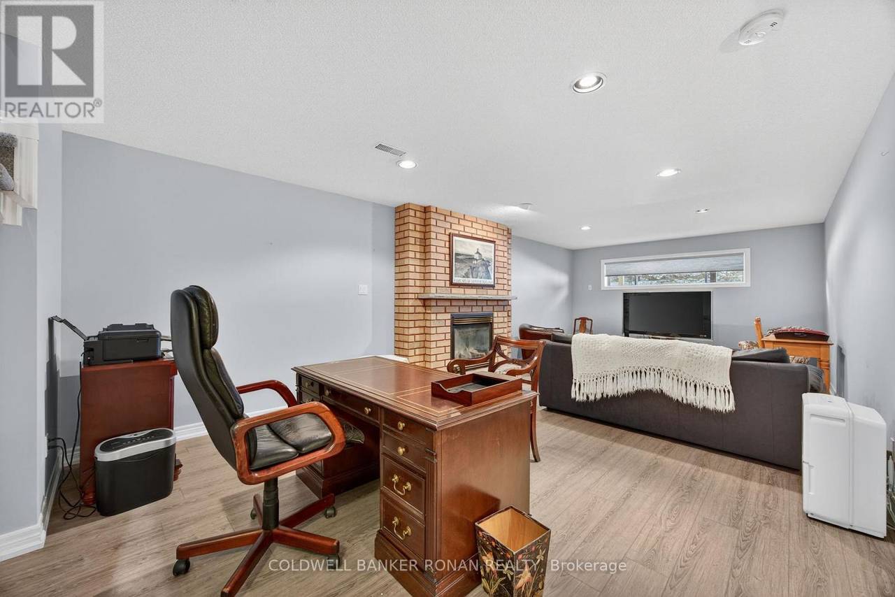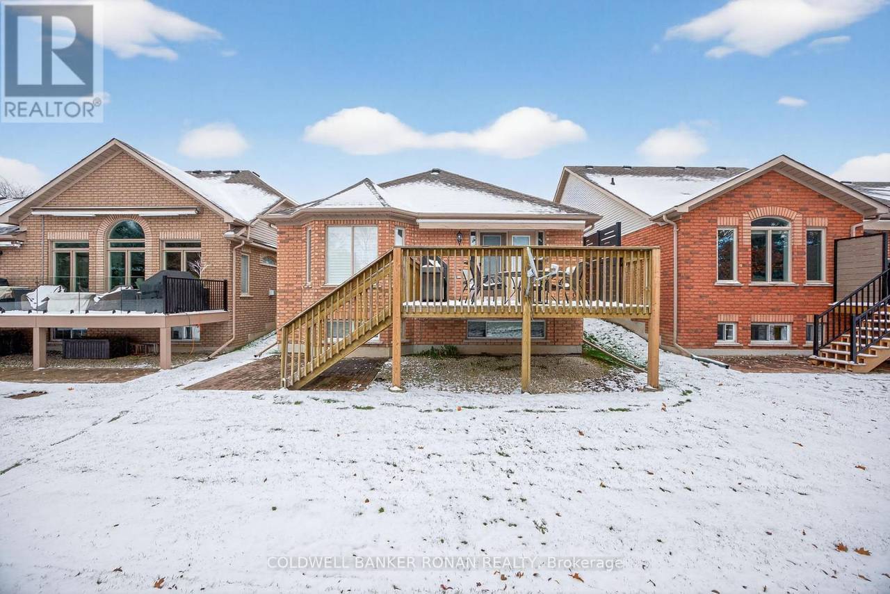 Charming Detached 1+1 Bedroom Bungalow Overlooking the Golf Course. This beautifully maintained bungalow offers peaceful living with a private deck backing onto the golf course. The primary bedroom features hardwood flooring, double closets, and a private ensuite. The bright eat-in kitchen includes ample cabinetry and a large bay window. The combined living and dining area boasts hardwood floors, a cozy gas fireplace, and a walkout to the deck. Convenient main-floor laundry is included. The lower level extends your living space with a spacious family room, an additional bedroom, and generous storage areas. The home also includes a single-car garage and an interlock driveway with parking for two vehicles. Enjoy all the amenities of the Briar Hill community while being just minutes from the town of Alliston. (id:64974)