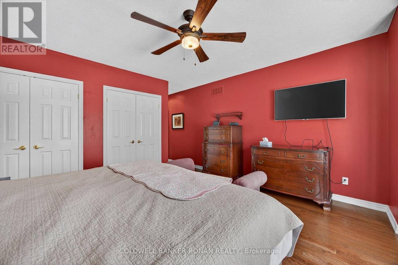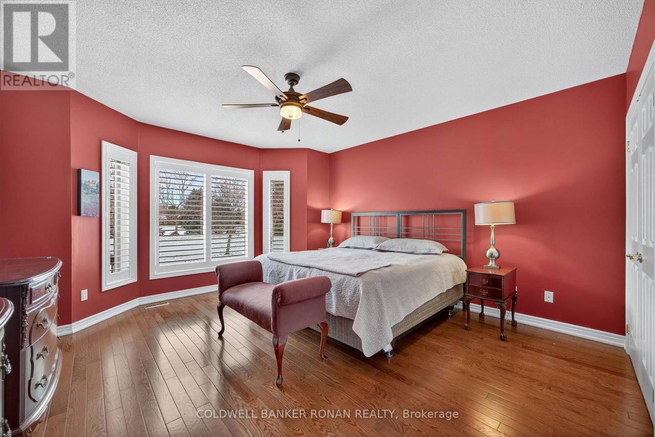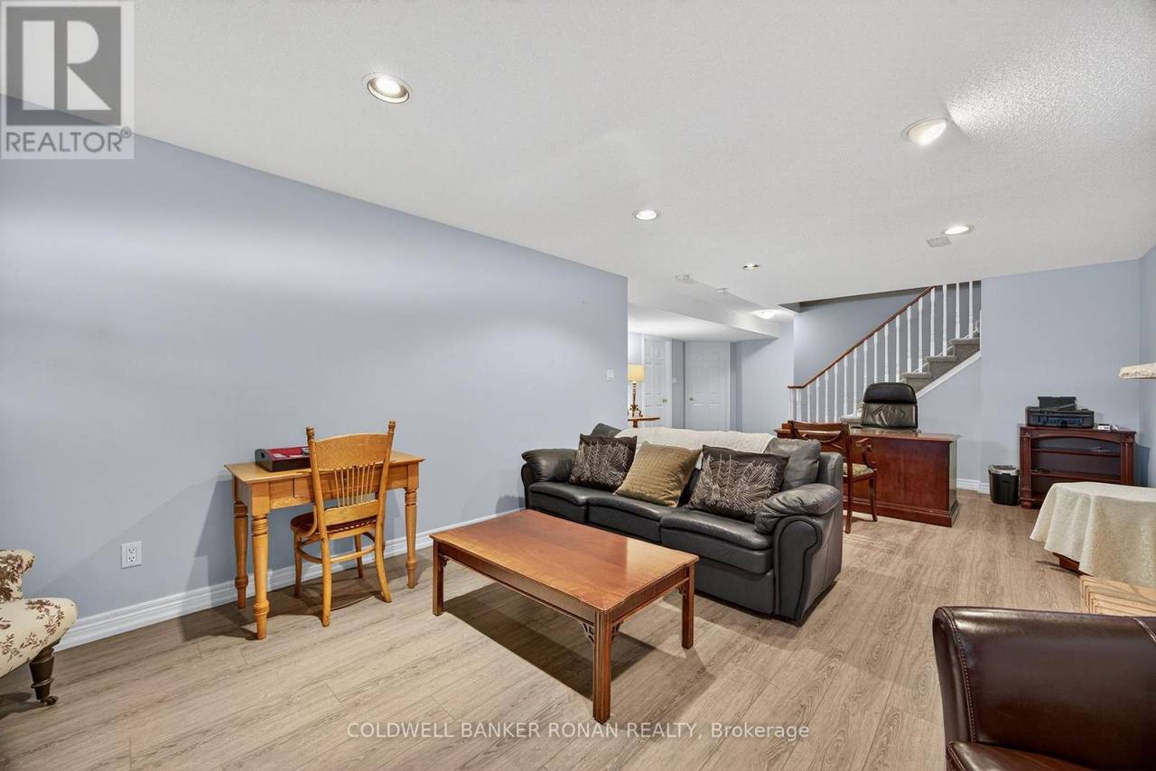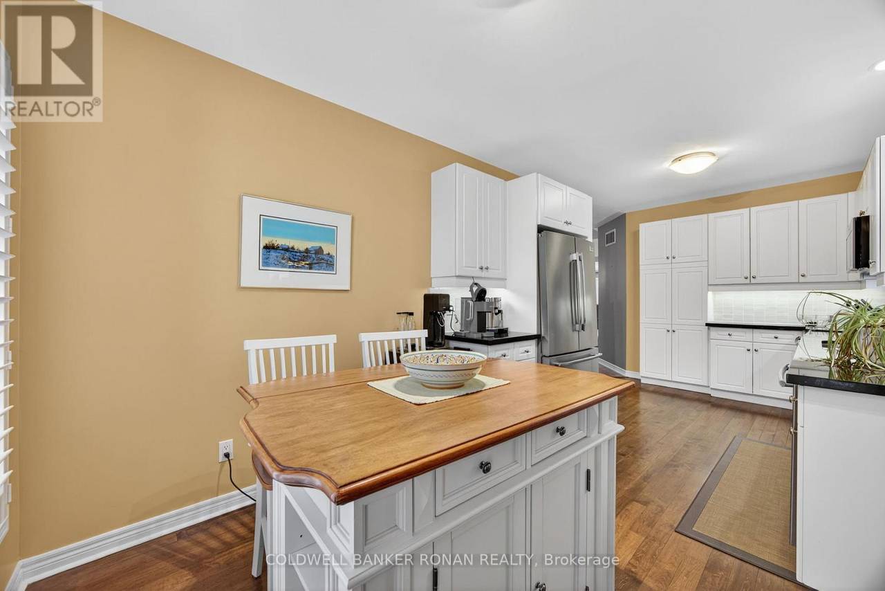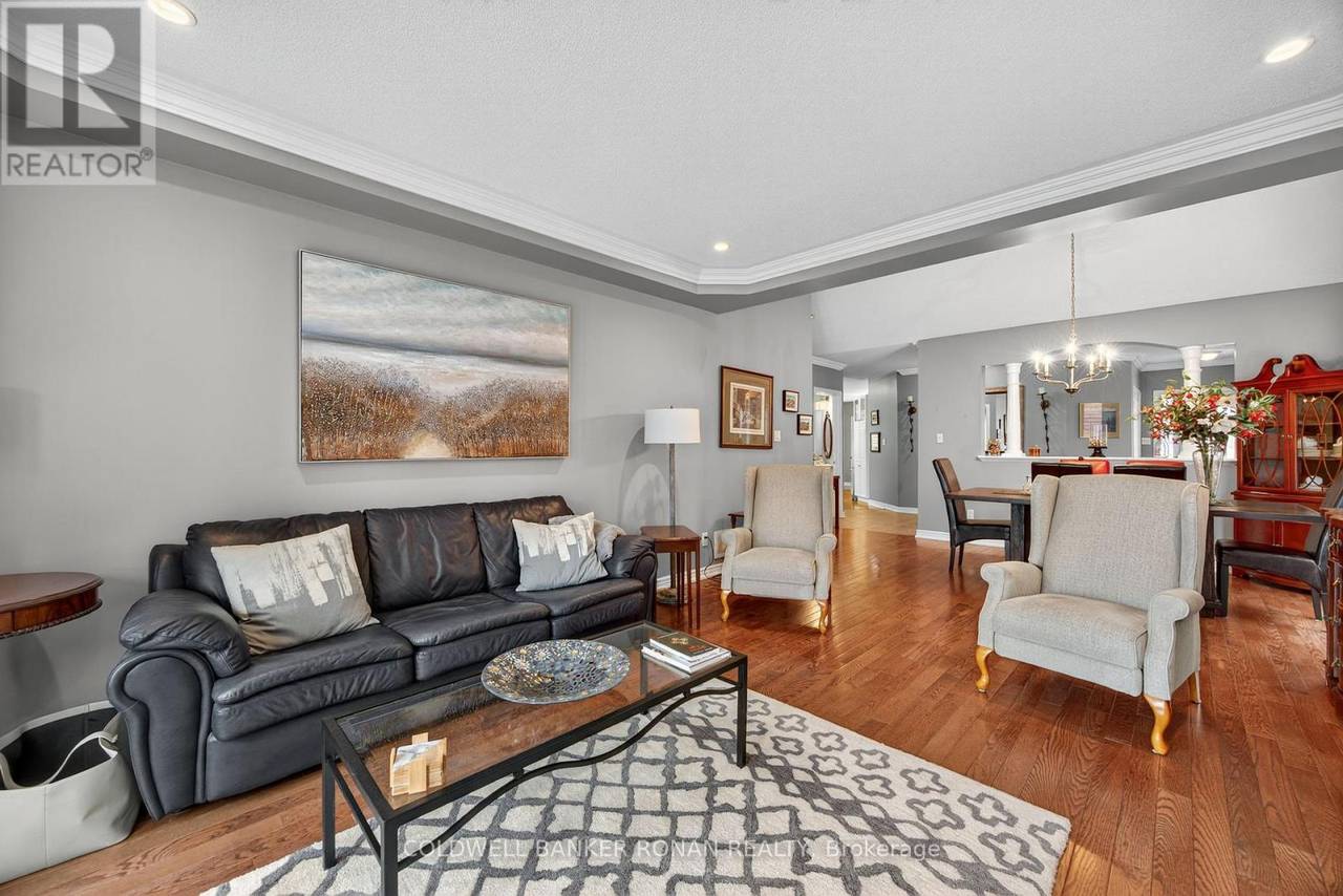 Charming Detached 1+1 Bedroom Bungalow Overlooking the Golf Course. This beautifully maintained bungalow offers peaceful living with a private deck backing onto the golf course. The primary bedroom features hardwood flooring, double closets, and a private ensuite. The bright eat-in kitchen includes ample cabinetry and a large bay window. The combined living and dining area boasts hardwood floors, a cozy gas fireplace, and a walkout to the deck. Convenient main-floor laundry is included. The lower level extends your living space with a spacious family room, an additional bedroom, and generous storage areas. The home also includes a single-car garage and an interlock driveway with parking for two vehicles. Enjoy all the amenities of the Briar Hill community while being just minutes from the town of Alliston. (id:64974)
