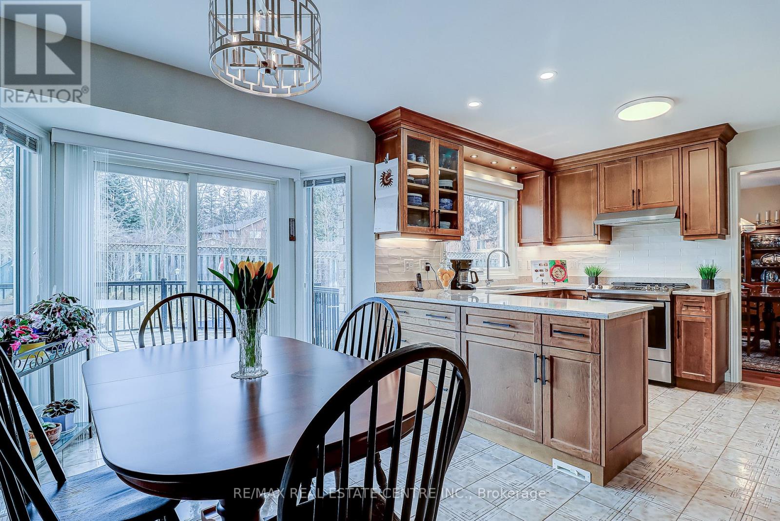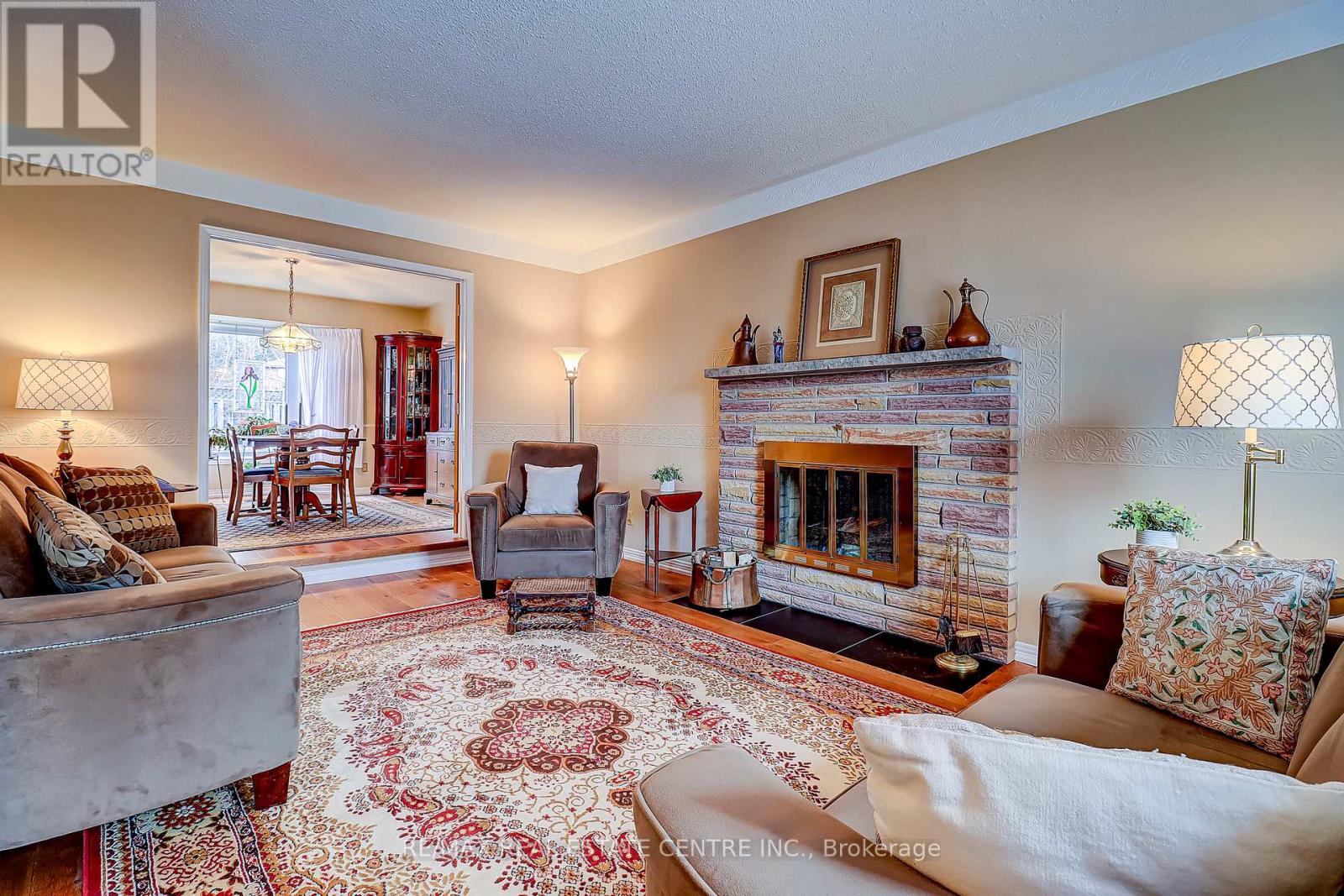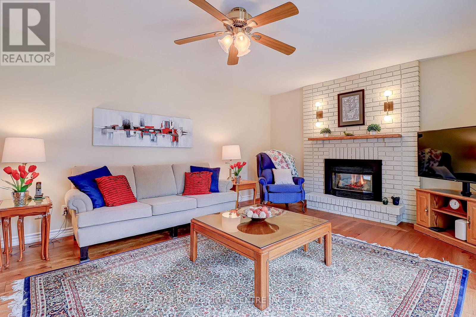 Welcome to this beautifully maintained home, ideally situated on a quiet court in Brampton's prestigious Conservation Drive neighbourhood, known for its executive estate style homes and large premium lots. This exceptional property offers numerous quality upgrades throughout, including a renovated kitchen ($50,000) featuring custom maple cabinetry, quartz countertops, valance trim with under cabinet lighting, a large side server with pot drawers, and an impressive 5' double-door pantry. Hickory hardwood flooring enhances the living, dining, and family rooms, all overlooking the expansive private backyard. Additional highlights include 2 fireplaces (wood-burning and gas), a main floor office with wall-to-wall oak built-in bookshelves and desk, a large bow window overlooking the front yard. Workshop, cold cellar, updated furnace and air conditioner, solid oak front doors, and renovated bathrooms and laundry room. Significant investment has been made in thoughtful upgrades throughout. Step outside to your own backyard oasis featuring a 38' in-ground pool with newer liner, pump, and heater, winter safety cover, Pergolino remote wind-sensor awning, hot tub, spacious 34' deck, fully fenced yard, and beautifully landscaped perennial gardens. A rarely offered entertainer's dream in one of Brampton's most sought-after neighbourhoods. This home is sure to impress! (id:64974)