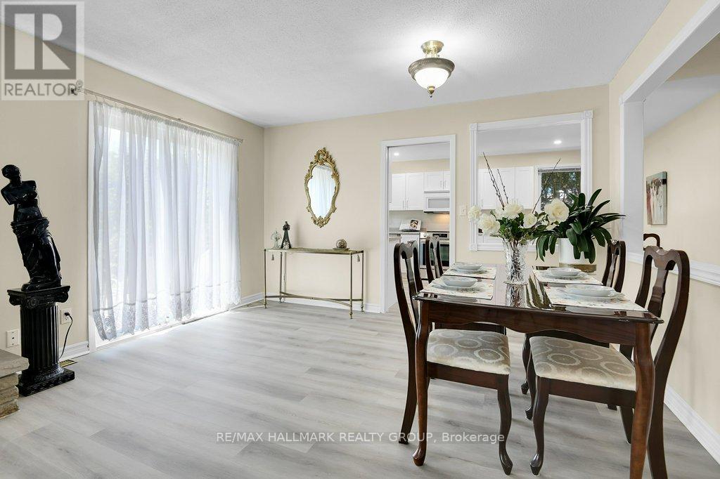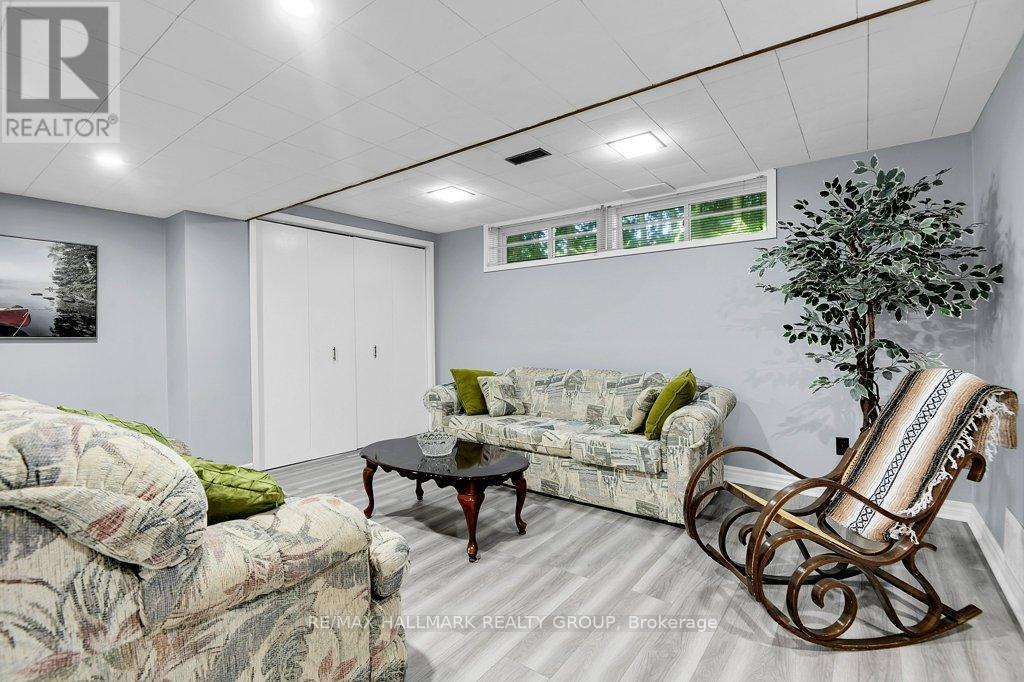 This bright and spacious 3-bedroom bungalow with attached garage is perfectly situated for active families and seniors. Walking distance to the Nepean Sailing Club, Andrew Hayden Park's waterfront trails, the Corkstown Park community pool, Lakeview Public School, and the Moodie LRT station. DND on Moodie is a quick six-minute drive, with shopping and dining nearby along Carling Avenue and at Bayshore Mall.The main floor features an oversized window overlooking the back yard, a cozy gas fireplace and patio door access to the private backyard that backs onto Lakeview Park - perfect for walking the dog or kids! The spacious, renovated eat-in kitchen offers sleek white cabinetry with gold accents, LED pot lights, stainless steel appliances, and elegant countertops. The main 4 piece bath has a new, sleek white vanity with gold accents, tile flooring, and a tub/shower combo. The modern updates adds to the home's fresh, move-in-ready feel. The generous primary bedroom is complemented by two additional well-sized rooms ideal for a child's room, office, or guest space. The finished lower level adds a large family room, fourth bedroom or gym area, laundry room, and a utility room with workbench. Main and lower-level updates were completed in 2024. Roof (2019) and furnace (2011); A/C is older but functioning well. Original hardwood remains under the new main-level flooring. (id:64974)