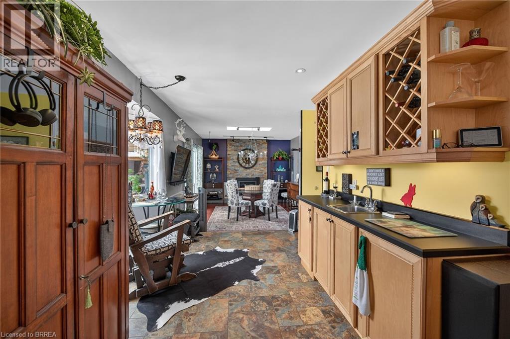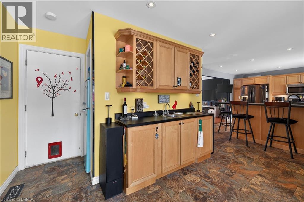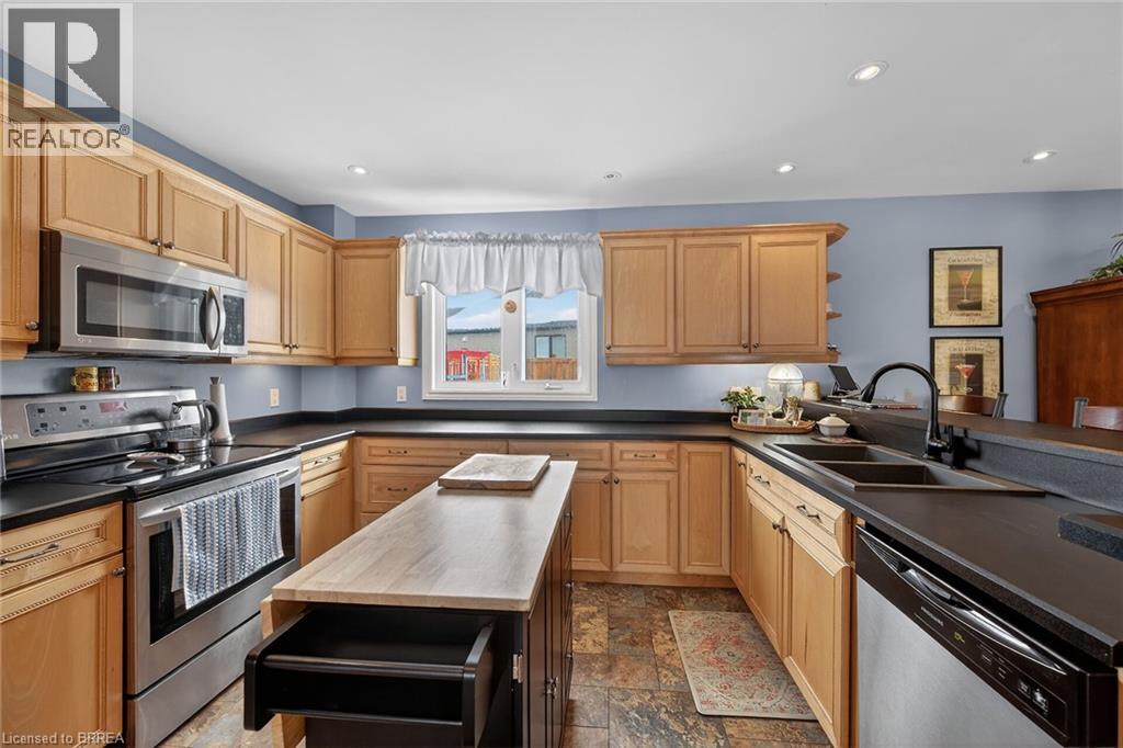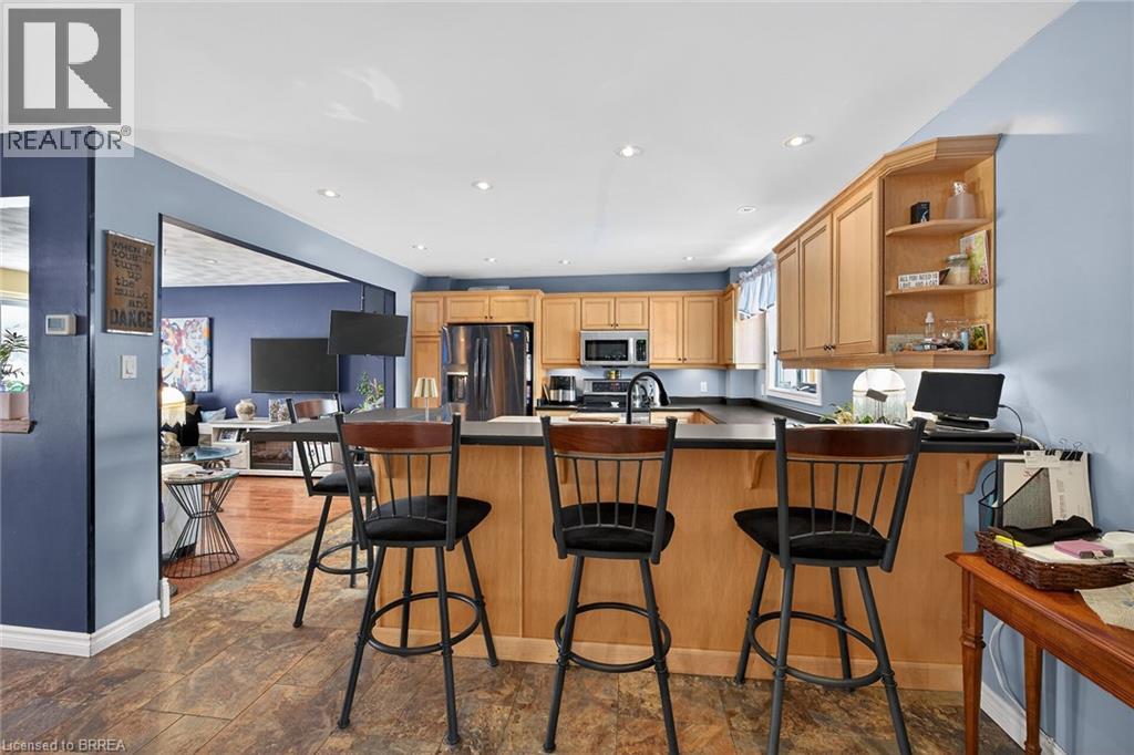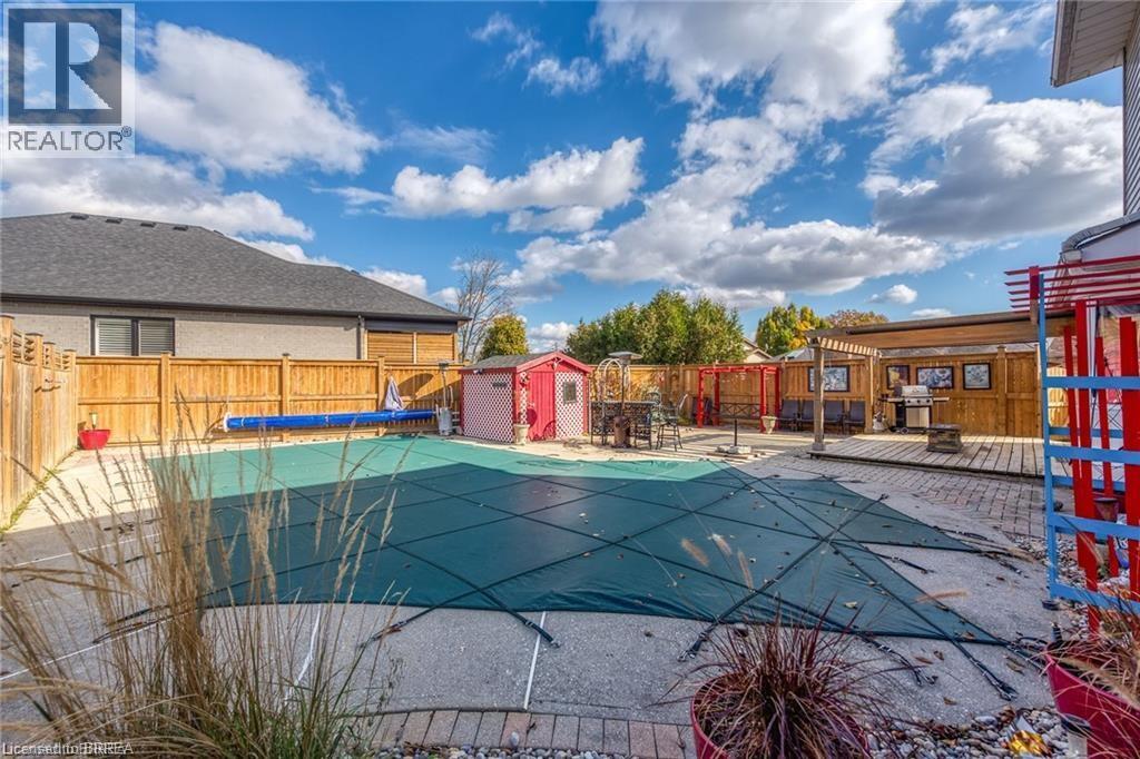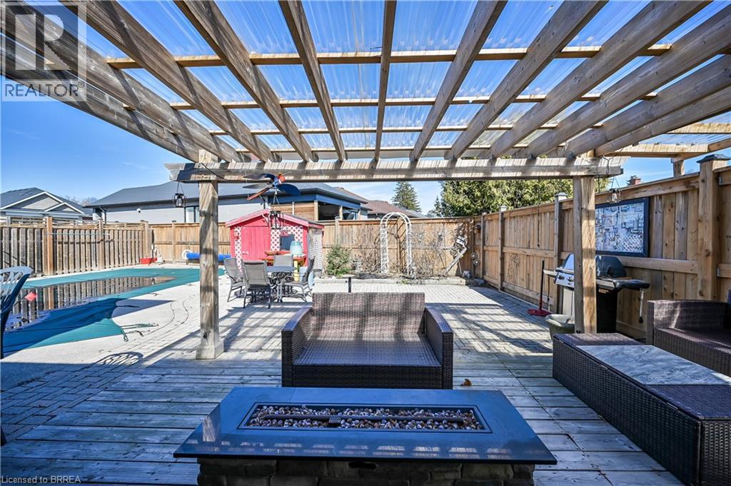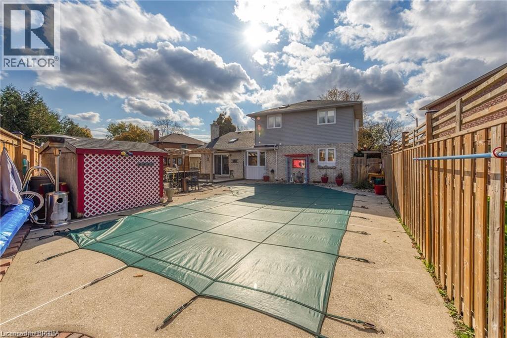 Welcome to 6 Winter Way in the highly sought-after Pioneer Grove community. This exquisite home boasts a welcoming foyer that leads you into a formal living room, an open concept updated kitchen with a spacious island that can comfortably seat 5, a breakfast room, and a family room featuring a cozy gas fireplace and a patio door offering a picturesque view of the beautifully landscaped gardens and inground pool. Upstairs, you will find a generously sized primary bedroom with an updated 3pc ensuite, along with two other spacious bedrooms with an updated 4pc washroom. The lower level of this stunning home is complete with a fully renovated rec room, adding to the overall appeal and functionality of this remarkable property. Updates include Pool liner (2021), solar blanket (2023) and furnace (2020) (id:64974)