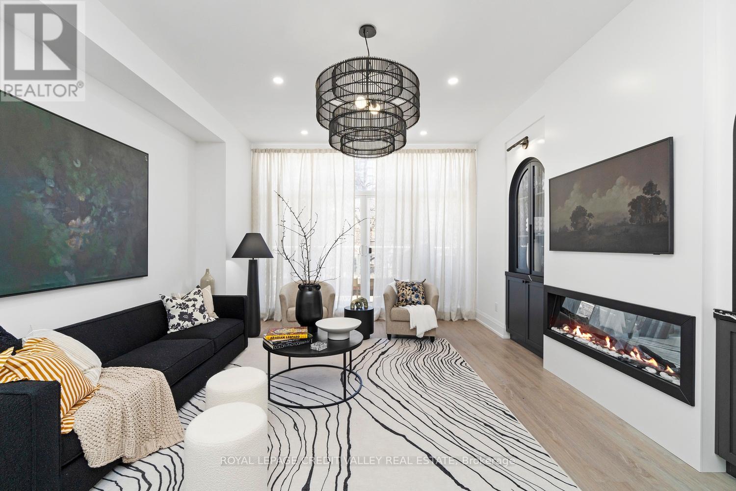 Nestled in the heart of the city, this stunning townhome offers a seamless blend of luxury, sophistication, and functionality. Completely custom redesigned, every detail of this residence has been meticulously curated to create a living space that exudes elegance and charm. Upon entering, guests are greeted by the grandeur of arched doorways and custom mill work setting the tone for the exquisite craftsmanship found throughout the home allowing for both form and function. For those who appreciate the convenience of working from home, a dedicated office space provides a quiet retreat with big windows, while a Murphy bed in the den offers flexibility for overnight guests. What's more, luxury meets practicality with interior garage access, built-ins, ample storage and ensuite laundry facilities, ensuring convenience at every turn. The kitchen boasts a stylish granite island, perfect for entertaining guests or enjoying casual meals with family overlooking the expansive great room featuring 10 feet soaring ceilings offering openness as well as a walk-out to the balcony perfect for enjoying that morning tea or coffee. The primary bedroom is a sanctuary of comfort with herringbone flooring throughout, featuring his and her sinks, separate showers and switchable privacy glass. Two additional luxurious bedrooms above provide ample space for family or guests with a beautifully tiled washroom offering a spa-like ambiance. However, the piece de resistance of this remarkable townhouse is the massive rooftop patio, offering unparalleled views of the iconic CN Tower and the city skyline. Whether hosting soirees under the stars or simply enjoying a morning coffee with breathtaking vistas, the rooftop patio is sure to be the envy of all who visit. Experience the epitome of urban living in this meticulously designed townhouse, where every detail has been thoughtfully considered to elevate your lifestyle to new heights. (id:64974)