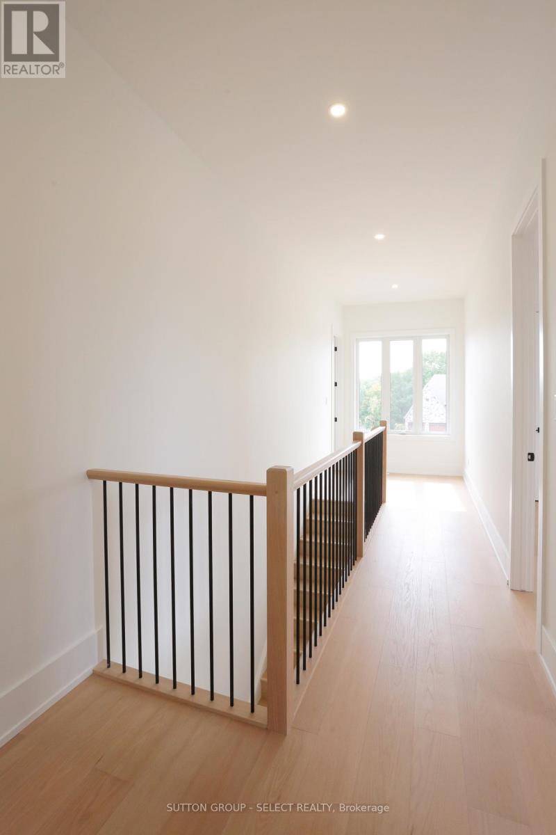 Scandinavian inspired architecture defines this distinctive new build, where dramatic 10 ft ceilings on both the main & second floor create remarkable scale & light, & a rare layout showcases four bedrooms each with their own private ensuite for exceptional comfort & privacy. Offering a spacious 3296 sq ft of executive finished living space above grade, this home blends architectural presence with thoughtful design. A signature courtyard entry creates a striking architectural arrival & an intimate outdoor lounge that introduces the home's modern European influence. The refined stucco exterior reinforces the home's clean architectural lines & timeless modern presence, while a warm wood & white palette carries throughout the interior. Hardwood floors extend across the main living areas, leading to a bright & expansive great room framed by a dramatic wall of windows & sliding glass doors overlooking the backyard. A contemporary gas fireplace anchors the space & creates a refined focal point for gathering. Impressive kitchen is designed with beauty & function forefront featuring premium cabinetry, quartz counters, a large centre island & a walk in pantry. A long windowed prep run with sink fills the workspace with natural light, while architectural transitions between the kitchen & dinette add character. A main floor home office offers separate direct entry, ideal for meeting clients or operating a home based business while maintaining privacy from the main living areas. Upstairs, a wide light filled hallway & open landing form an airy central gallery, with bedrooms thoughtfully arranged around the space. The primary suite features a spacious walk in closet with built ins & a spa inspired ensuite with freestanding tub & glass shower finished in large format tile. The upper level laundry room includes cabinetry & a folding counter for everyday convenience. The basement offers full 9 ft ceilings & excellent potential for additional living space. (id:64974)