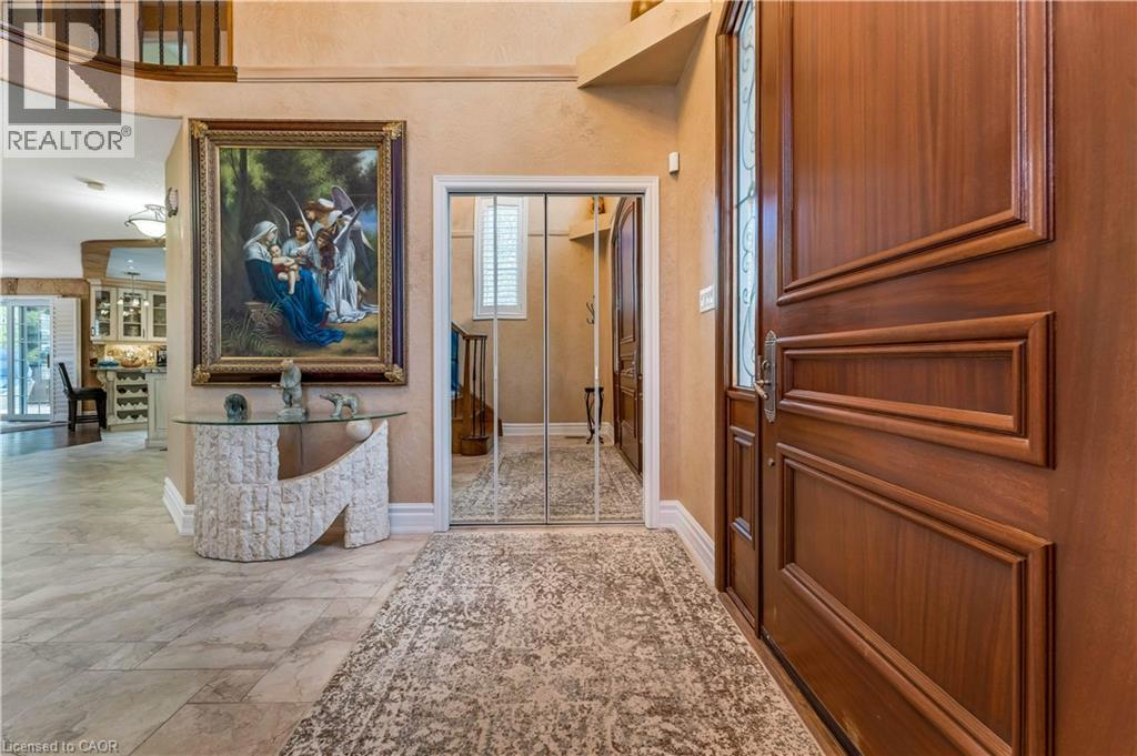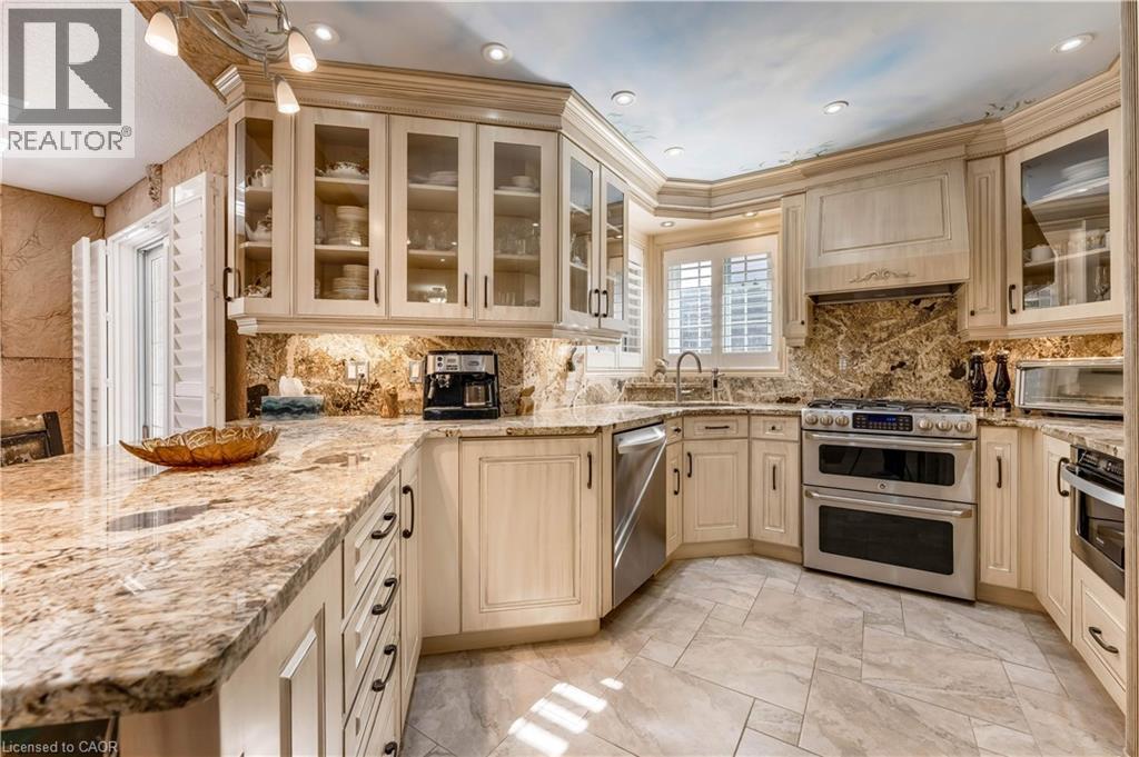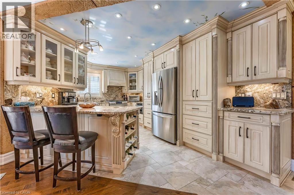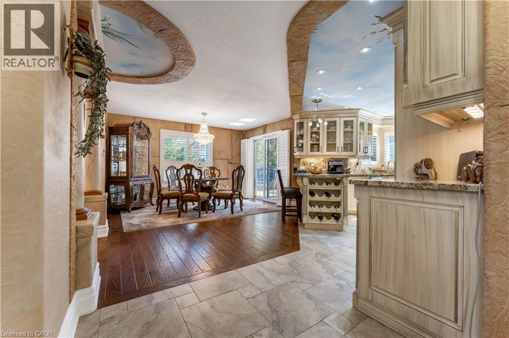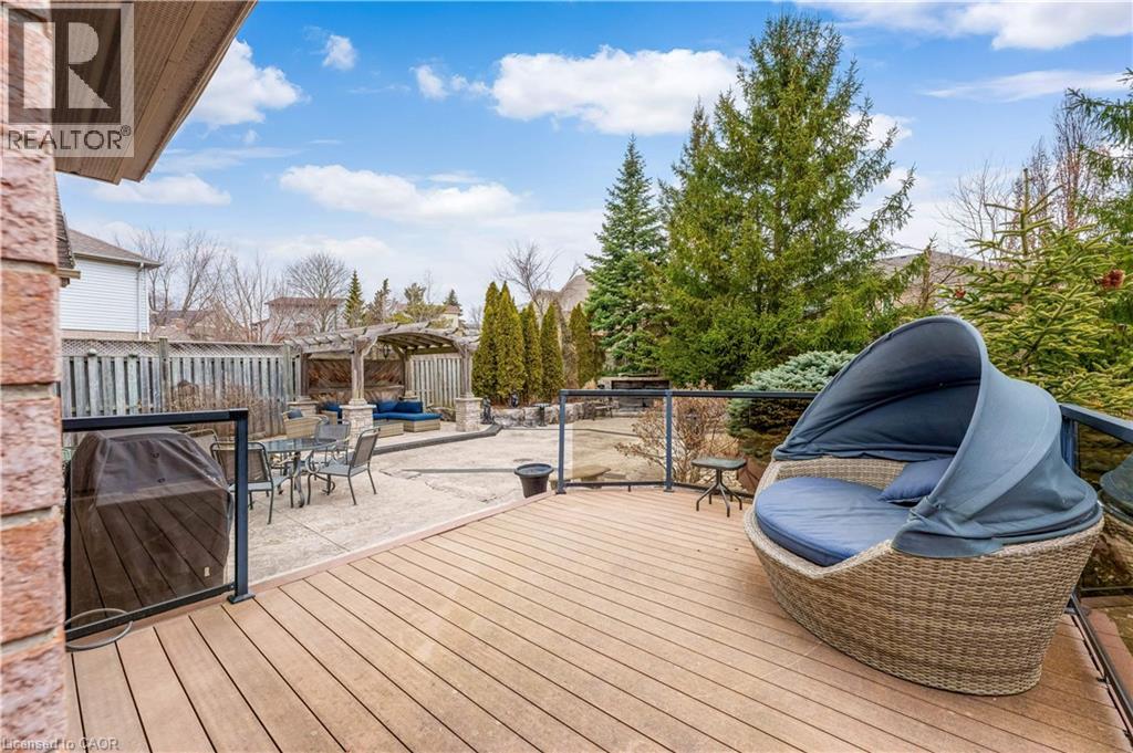 Welcome to 60 Chandos Drive, Kitchener: A Timeless Masterpiece. Step into a home where European elegance meets modern comfort. Situated on an impressive 52 x 143 ft lot, this beautifully maintained detached home showcases quality craftsmanship and thoughtful design. From the moment you arrive, the home’s striking curb appeal stands out, complemented by parking for up to 5 vehicles: 2-car garage, 3-car driveway. Inside, you are welcomed by a grand foyer with soaring ceilings along with Elegant finishes, custom wall details and vintage-style ceiling work. The inviting living room features a cozy gas fireplace, perfect for relaxing or entertaining. The gourmet kitchen offers granite countertops, stainless steel appliances and oak cabinetry with ample storage. A wine display with glass cabinetry adds a sophisticated touch. Adjacent is the dining area, perfect for family gatherings. The main floor also features a laundry room. Upstairs, there are 3 generously sized bedrooms. The primary suite includes a walk-in closet with organizers and a luxurious 5pc ensuite with jacuzzi tub and separate shower. The additional bedrooms are bright and complemented by another 4pc bathroom. The fully finished basement offers extra living space with a large rec room with gas fireplace, a bedroom or office, full bathroom and a wet bar, perfect for throwing parties. There is also walk-up access to the garage. Step outside to an exceptional, fully fenced backyard, finished with low-maintenance concrete, it features a composite deck with glass railings, gazebo seating area, above-ground pool, storage shed and decorative pond with waterfall, creating a peaceful outdoor oasis. Additional upgrades include a generator plug at the electrical panel for added convenience during power outages. Ideally located just minutes from Chicopee Ski & Summer Resort, the Grand River, scenic trails, Highway 401, and public transit. This extraordinary home truly checks every box. Book your private showing today. (id:64974)