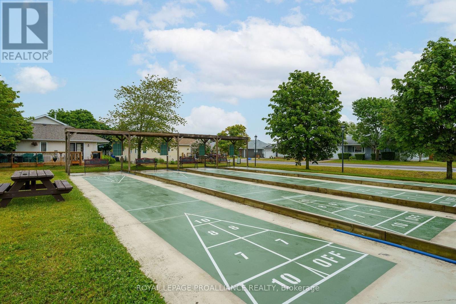 Thinking of investing in a rental property? Look no further as this Villa at Wellington on the Lake in Prince Edward County offers 2 bedrooms, 2 bathrooms, a den, partially finished basement, nice size back deck with gas barbecue hook up and mature trees in the backyard. There is a cozy covered front porch, paved driveway, 1 car garage with opener, new front stairs and soo much more. Basement offers a full bedroom, 4 piece bathroom, rec room and storage area. Home was freshly painted and it is move in ready for. The Adult Lifestyle offers a community Rec Centre featuring an in-ground swimming pool, tennis and pickle ball court, gym, billards room, full kitchen and more. The home is located minutes away from downtown Wellington, numerous restaurants, waterfront, park and the beach! Adjacent to the development is the beautiful Wellington Golf Course and the Millennium Trail for walking or cycling. A wonderful place to live and play. Common fee of $357.77 including HST monthly for grass cutting, road snow removal and sanding and salting of all roads and common areas, garbage and recycling pick up and use of the rec centre. There is a sprinkler system for the front yard. Home was completed in 2019. Water is turned off. (id:64974)