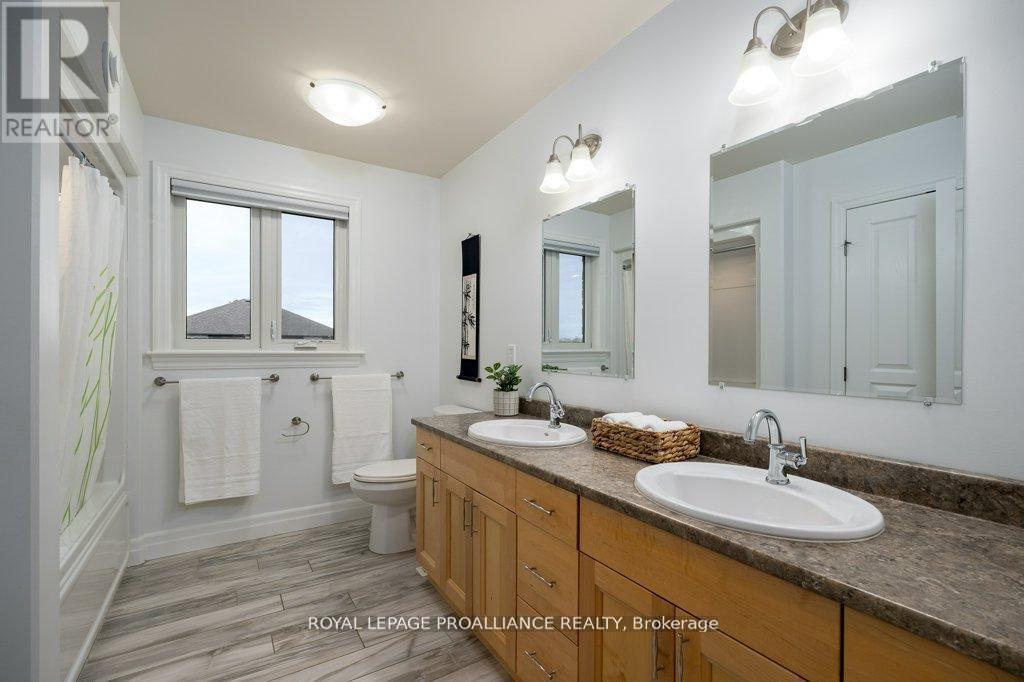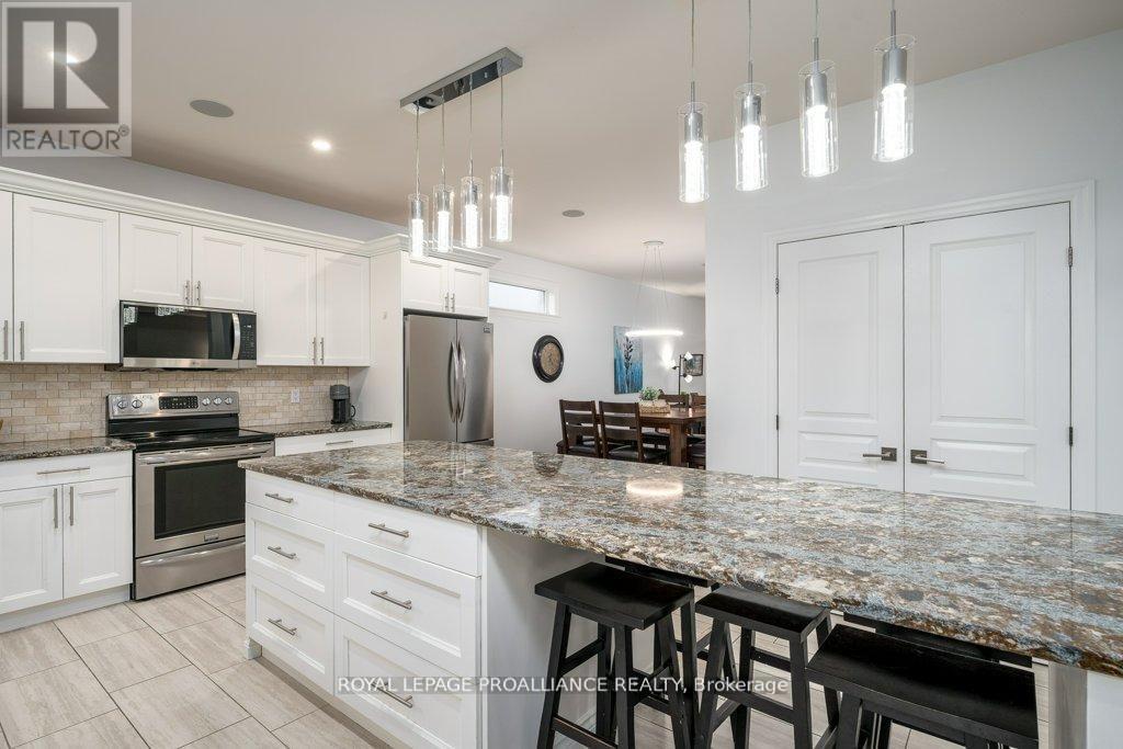 BONUS!! Seller's are offering $5,000 CASH BACK to a buyer upon closing! Welcome to this immaculate, beautifully maintained two-storey home nestled in a sought-after, family-friendly neighbourhood surrounded by parks and growing families. With a backyard stretching over 120 feet deep, there is endless potential to add a POOL if desired, creating your very own retreat and oasis. Thoughtfully designed for both comfort and style, this open-concept home offers exceptional space for everyday living and entertaining. The stunning kitchen is truly the heart of the home, featuring gorgeous Quartz countertops, crisp white cabinetry, a stylish backsplash, and an incredibly large island, perfect for hosting and gathering. A beautiful staircase leads to the second level where you'll find four spacious bedrooms, including a primary retreat complete with a walk-in closet and private ensuite. The fully finished basement adds even more living space with a large rec room, an additional full bathroom, and plenty of storage. With five bedrooms and four bathrooms, this home truly checks all the boxes. It features a built-in sound speaker system (Redball Radio) in the living room, ready to be connected, and a spacious backyard ideal for relaxing or entertaining. Located in a desirable neighbourhood close to schools and amenities, and only a short drive to Highway 401 or CFB Trenton, this move-in ready home is perfect for growing families looking for both function and style. (id:64974)