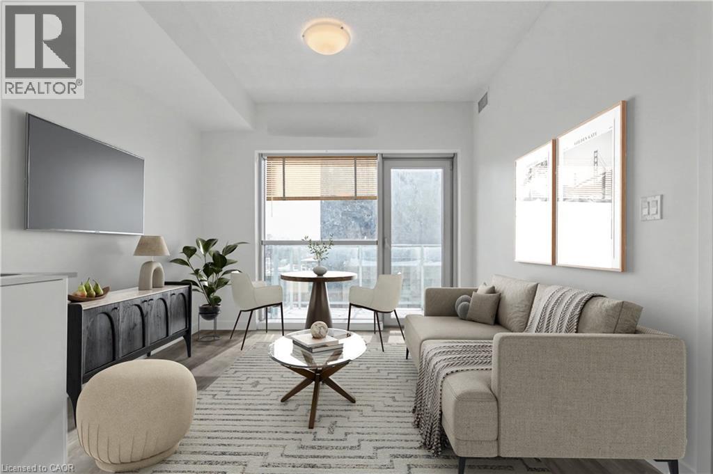 Welcome to elevated urban living at DTK Condos in the heart of Kitchener. This rarely offered 1 Bedroom + Den, 2 full bathroom layout delivers exceptional flexibility and function—an ideal opportunity for professionals, couples, or investors seeking something beyond the typical downtown condo configuration. The thoughtfully designed open-concept floor plan is bright and modern, featuring contemporary finishes and large windows that flood the space with natural light. The spacious den easily functions as a home office, guest area, or creative studio, while the second full bathroom adds everyday convenience and enhanced hosting capability—an uncommon and highly desirable feature in a one-bedroom suite. Step outside and enjoy unbeatable walkability. You’re just steps to the Frederick Station ION LRT stop, along with restaurants, cafés, shopping, entertainment venues, and the trails and green space of Victoria Park. Residents enjoy a full suite of modern building amenities designed to complement an active urban lifestyle, including concierge service, a fully equipped fitness centre, stylish party and lounge spaces, and an impressive rooftop terrace with panoramic city views. Experience connected downtown living at its finest. (id:64974)