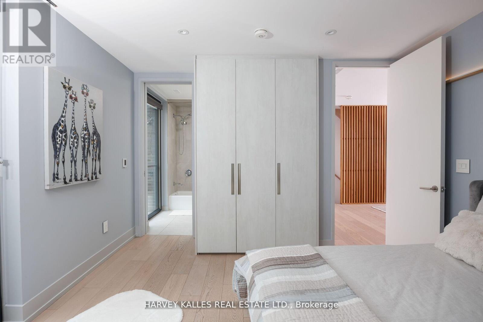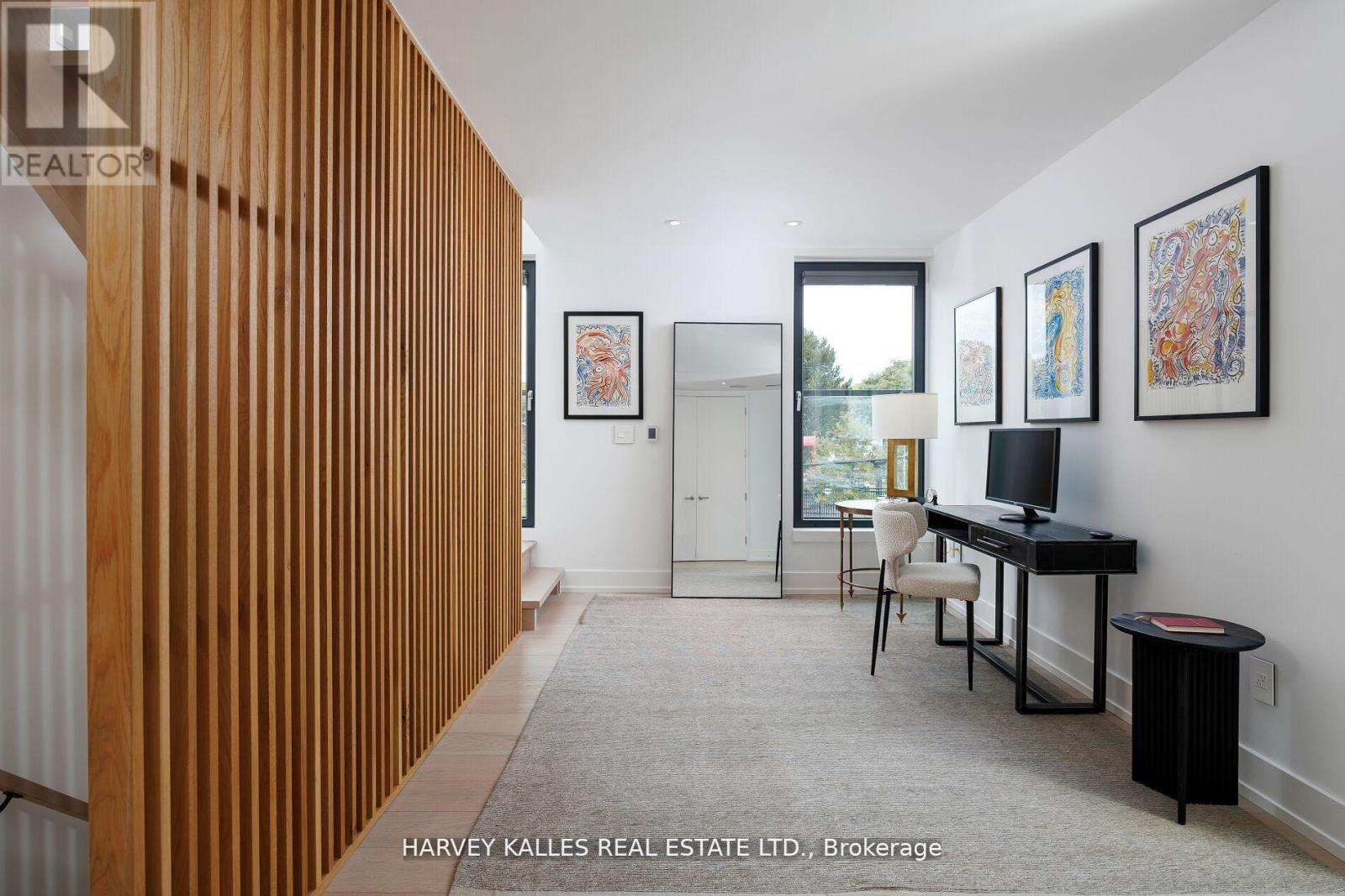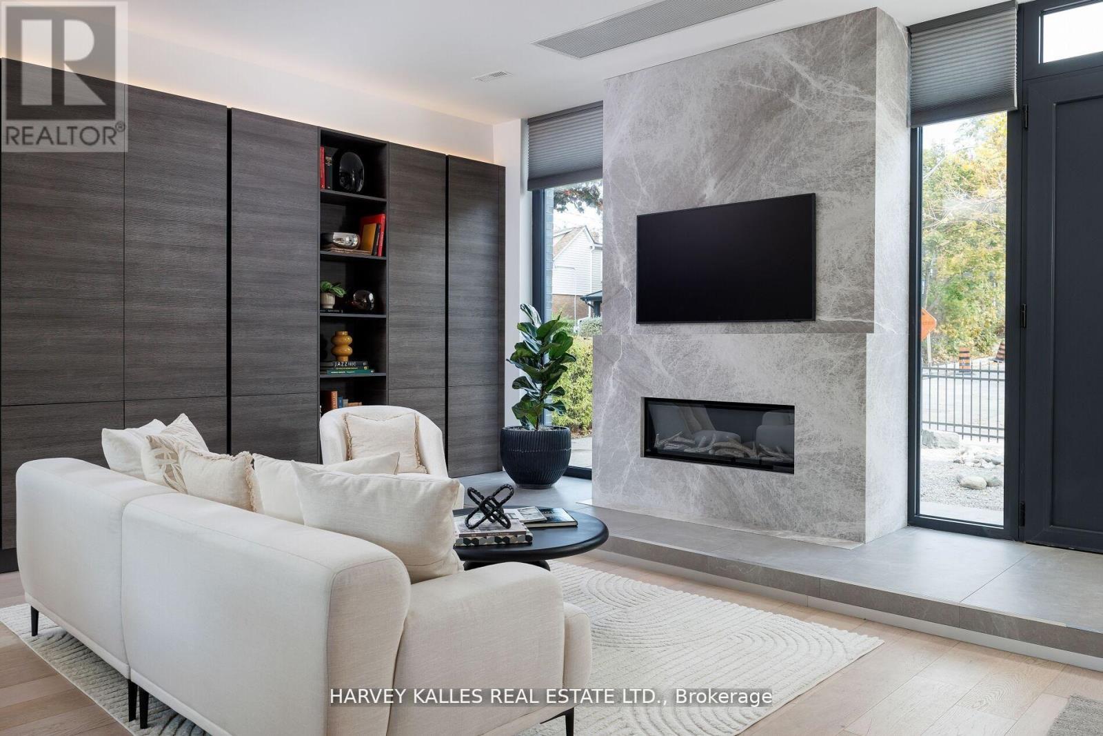 Featured by BlogTO as "Like Living in the Future." 60 Hiltz is a custom-built, all-electric home on a wide, quiet, tree-lined street steps from Greenwood Park and Queen East. 3+1 bed, 5 bath, 7 Juliet balconies, covered carport with EV rough-in, over 3,000 sf. Step inside to ~10' ceilings and a bright open kitchen-dining-family room anchored by a honed marble fireplace. Scavolini kitchen with 8-foot quartz island, Gaggenau fridge and induction cooktop, Monogram wall oven, Bosch dishwasher, Faber hood. Up to the second floor: two large bedrooms with two full baths and Scavolini closets, dedicated office, and laundry. The third-floor primary suite opens to CN Tower views, 5-pc ensuite with stone soaking tub, and gorgeous dressing area with custom millwork. Below grade: open-concept 900+ sf level with full bath and 8-foot ceilings - guest suite, media room, gym, or play space. Built for health and comfort: all-electric means zero combustion, no indoor air pollution. HEPA-filtered fresh air 24/7 via backed-up ERV. Passive House-certified triple-pane floor-to-ceiling windows flood every room with light and retain 3X more heat than standard glass. Heated floors throughout. Motorized Hunter Douglas blinds. Built to save: High Performance building envelope and cold-climate heat pump cuts heating and cooling costs vs. code-built homes. German heat pump hot water tank uses 3X less energy than conventional. 16 solar panels power the home and sell surplus to the grid. Rare islanding keeps solar running during outages. 20 kWh battery backs up sump pump, fridge, ERV, WiFi, lighting, HWT, and plug loads. Carport ready for 10 more panels. Built to protect: Bone Structure steel frame, non-combustible brick and metal exterior, laminated security glazing, 7-point locking windows, steel security door. Climate-resilient and break-in resistant. You cannot replicate this build at this price. Riverdale CI and Duke of Connaught catchments. 10 min by bike to the Beaches. Come see it. (id:64974)