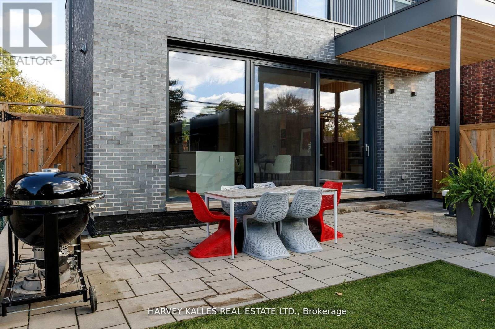 Featured by BlogTO as "Like Living in the Future." 60 Hiltz is a custom-built, all-electric home on a wide, quiet, tree-lined street steps from Greenwood Park and Queen East. 3+1 bed, 5 bath, 7 Juliet balconies, covered carport with EV rough-in, over 3,000 sf. Step inside to ~10' ceilings and a bright open kitchen-dining-family room anchored by a honed marble fireplace. Scavolini kitchen with 8-foot quartz island, Gaggenau fridge and induction cooktop, Monogram wall oven, Bosch dishwasher, Faber hood. Up to the second floor: two large bedrooms with two full baths and Scavolini closets, dedicated office, and laundry. The third-floor primary suite opens to CN Tower views, 5-pc ensuite with stone soaking tub, and gorgeous dressing area with custom millwork. Below grade: open-concept 900+ sf level with full bath and 8-foot ceilings - guest suite, media room, gym, or play space. Built for health and comfort: all-electric means zero combustion, no indoor air pollution. HEPA-filtered fresh air 24/7 via backed-up ERV. Passive House-certified triple-pane floor-to-ceiling windows flood every room with light and retain 3X more heat than standard glass. Heated floors throughout. Motorized Hunter Douglas blinds. Built to save: High Performance building envelope and cold-climate heat pump cuts heating and cooling costs vs. code-built homes. German heat pump hot water tank uses 3X less energy than conventional. 16 solar panels power the home and sell surplus to the grid. Rare islanding keeps solar running during outages. 20 kWh battery backs up sump pump, fridge, ERV, WiFi, lighting, HWT, and plug loads. Carport ready for 10 more panels. Built to protect: Bone Structure steel frame, non-combustible brick and metal exterior, laminated security glazing, 7-point locking windows, steel security door. Climate-resilient and break-in resistant. You cannot replicate this build at this price. Riverdale CI and Duke of Connaught catchments. 10 min by bike to the Beaches. (id:64974)