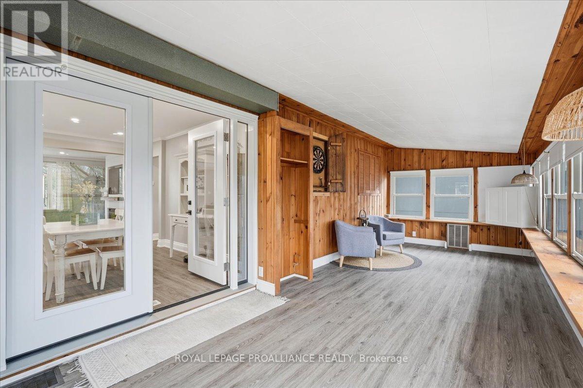 Backing directly onto Henry Street Park and just a short walk to Main Street, this bungalow offers both convenience and a setting that's hard to come by. 3-bedroom, 2-bathroom bungalow set in the village of Stirling. The home features an updated kitchen and bathroom, along with an open main living area that creates a comfortable and functional space for everyday living. Two enclosed sunrooms add valuable additional square footage, offering bright, flexible spaces ideal for relaxing, entertaining, or enjoying the surrounding views through the seasons. Recent updates throughout the home enhance both comfort and usability, making it a move-in ready option. The full walkout basement provides excellent potential for extended living space or in-law capability. Forced air gas heating and central air conditioning ensure year-round comfort. Outside, the property offers a deck, fully fenced yard, and a private double driveway with parking for up to six vehicles. (id:64974)