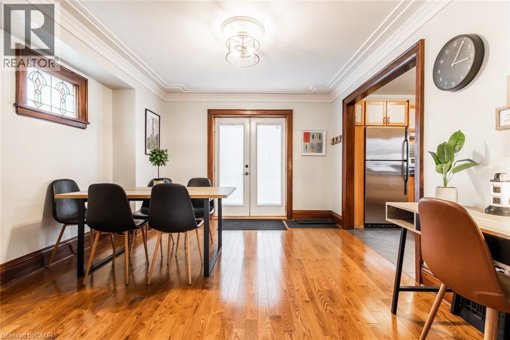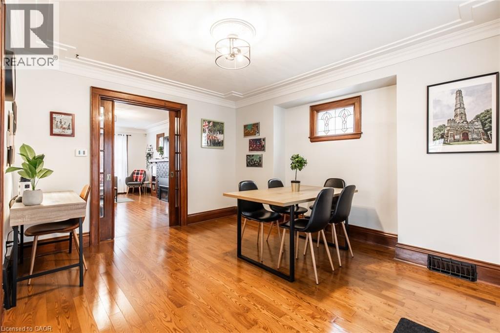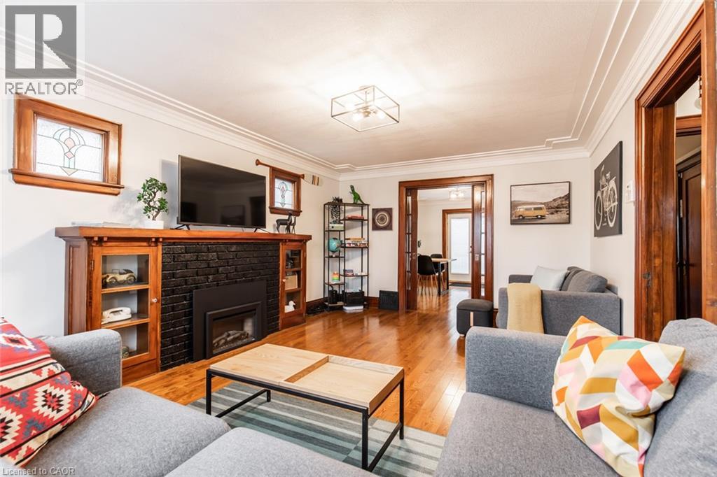 Charming 3-Bed, 2-Bath Stoney Creek Home with In-Law Suite! This bright and open main floor boasts a cozy living room with a fireplace, a kitchen featuring stainless steel appliances, and a spacious dining room with double doors leading to the back deck. Upstairs offers three generously sized bedrooms, a large 4-piece bathroom with laundry, and access to a quaint private balcony. A separate walk-out basement entrance leads to the in-law suite, complete with its own living area, bedroom, kitchen, and washer/dryer. Situated on a large 45 x 239.50 ft lot with a private deck, shed, and a detached garage! This home is close to Battlefield Park, downtown Stoney Creek, parks, shops, great schools, and offers easy highway access. Don't miss it, book your private showing today! (id:64974)