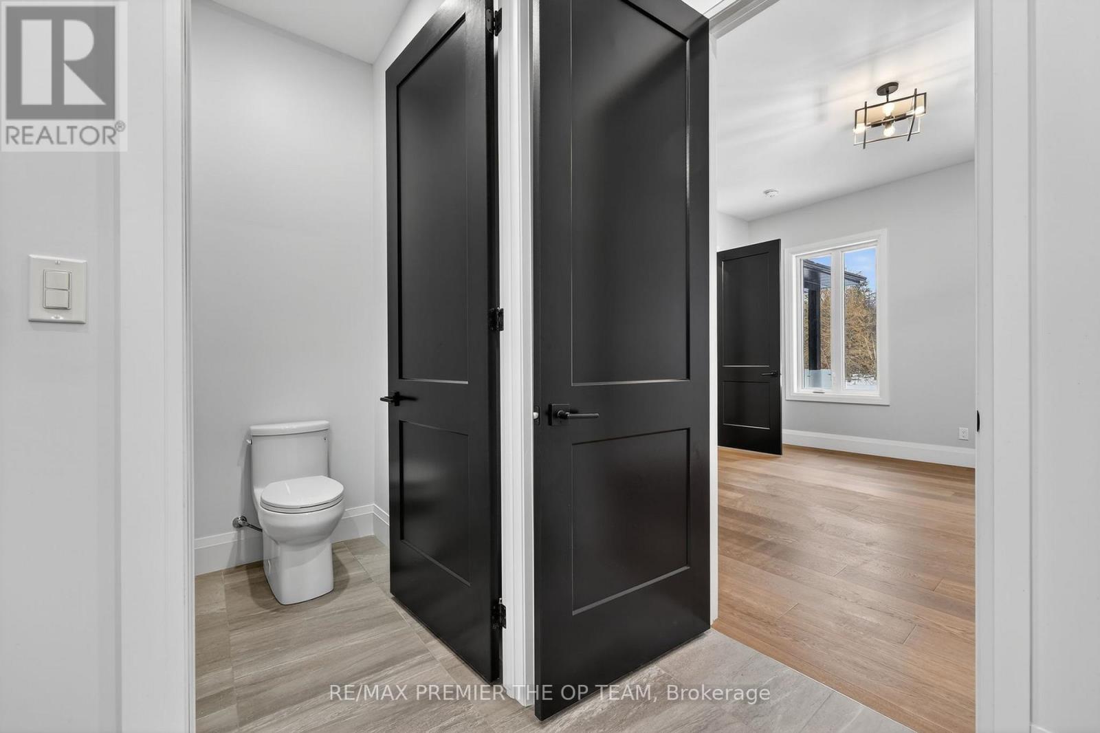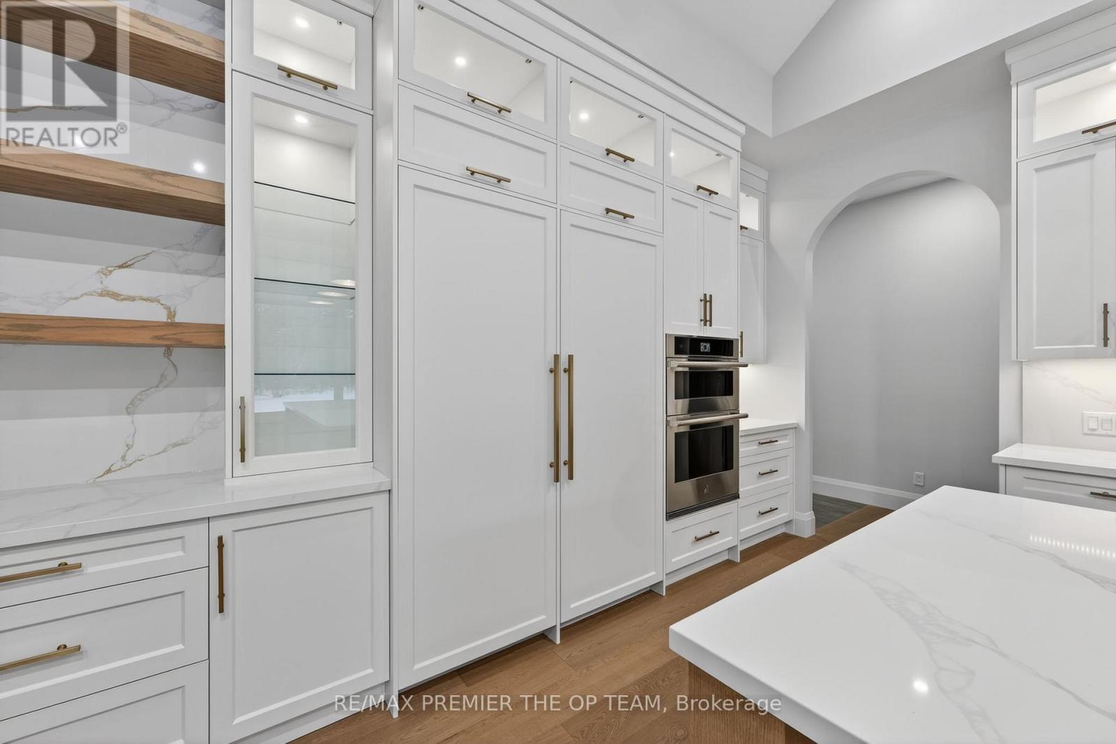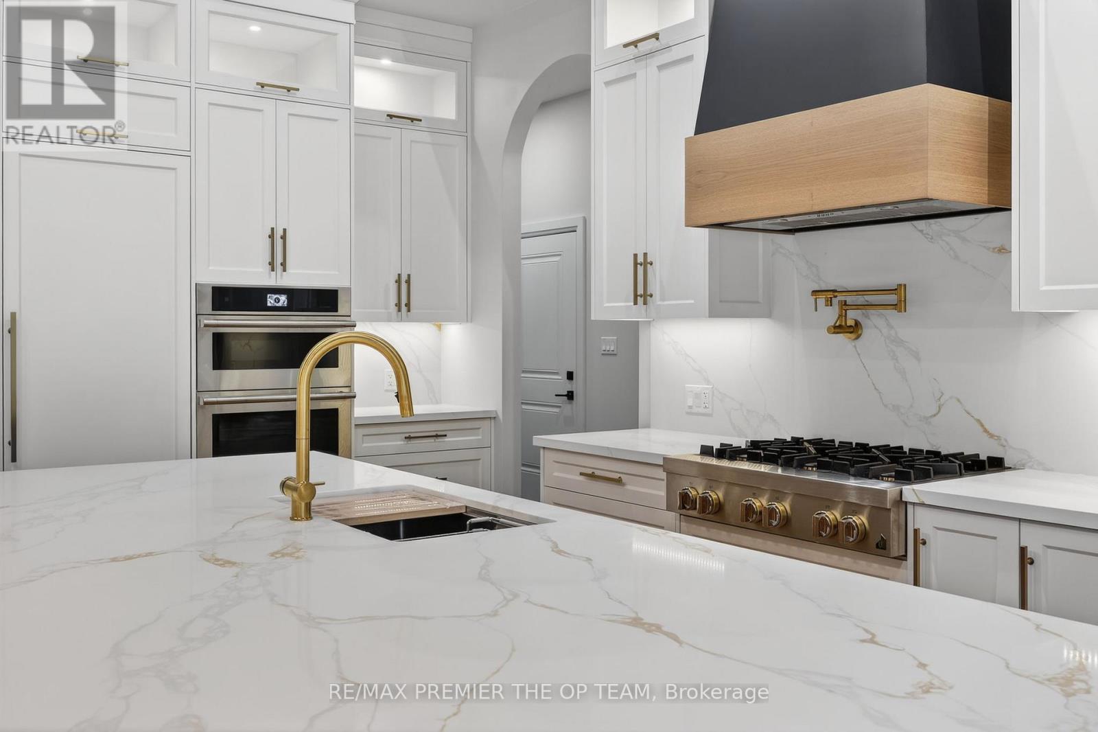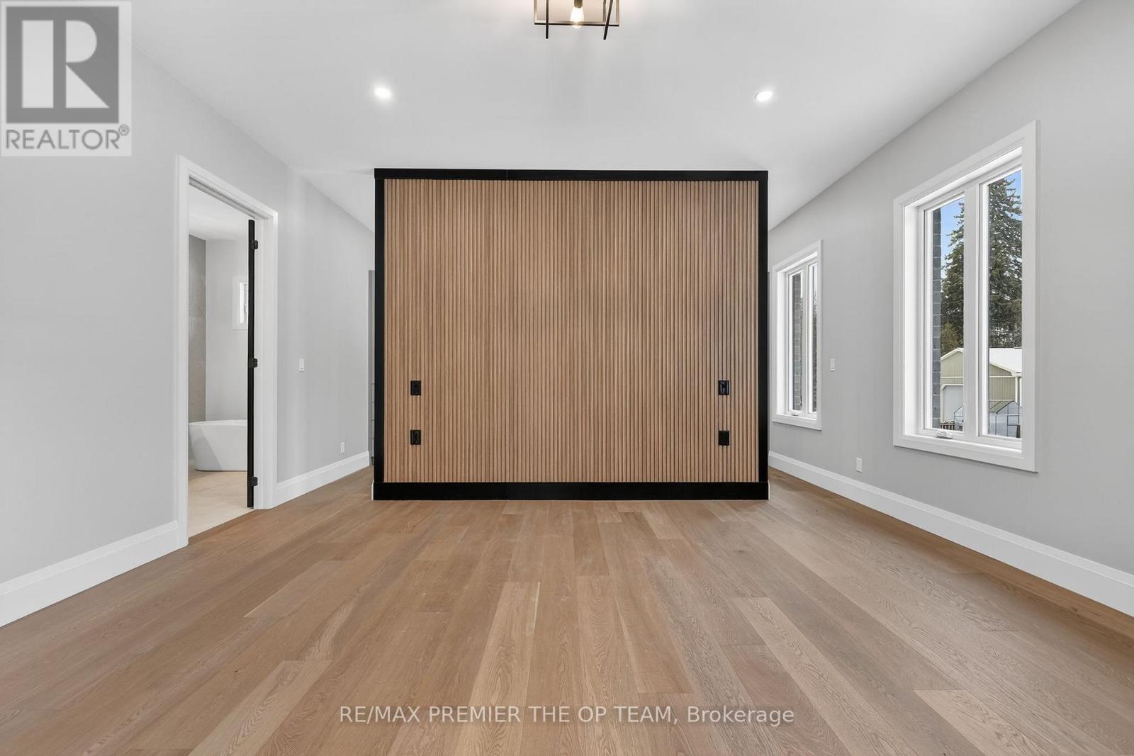 New 3,200 sq. ft. custom stone and brick bungalow on over an acre, built by a quality builder and backed by Tarion warranty. This stunning home features wide plank hardwood floors, high-end light fixtures, JennAir appliances, and Riobel bathroom fixtures throughout. The open-concept kitchen and living area is highlighted by a massive island, butler's pantry with espresso bar, and a dramatic floor-to-ceiling double-sided stone fireplace, with walkout to a covered back deck overlooking a pool-sized yard and forest backdrop. The principal suite offers a feature wall, walk-through custom closet, and spa-inspired ensuite. Separate bedroom wing with 3 bedrooms and 2 full baths. Main floor laundry and mudroom off the impressive 40' x 30' garage with oversized doors, high ceilings for car lifts, and basement walk-up. Basement features 9 ft ceilings and rough-in for additional bath. Landscaping package includes exposed stone concrete walkway, entrance garden with two trees, sodded front yard, and hydro-seeded backyard. Excellent commuter location with easy access to Barrie and Hwy 400. (id:64974)