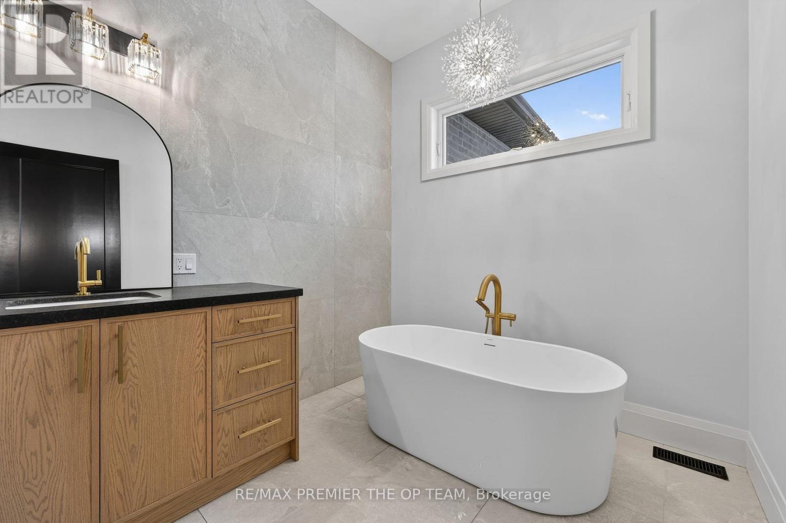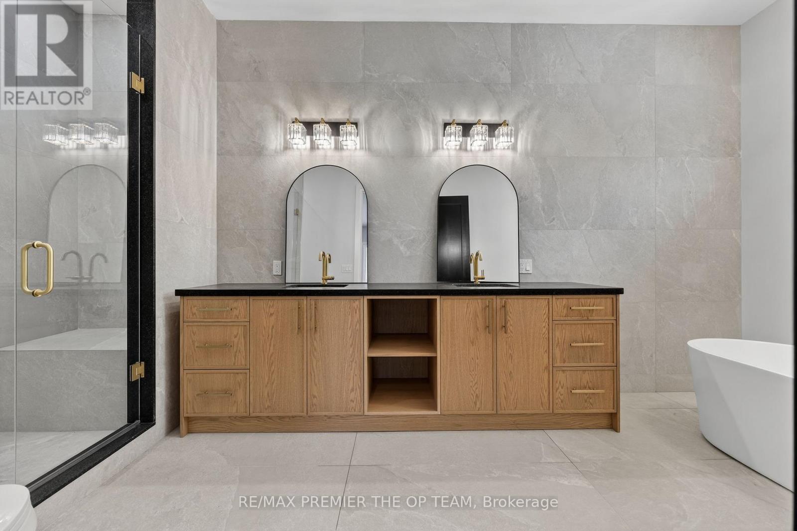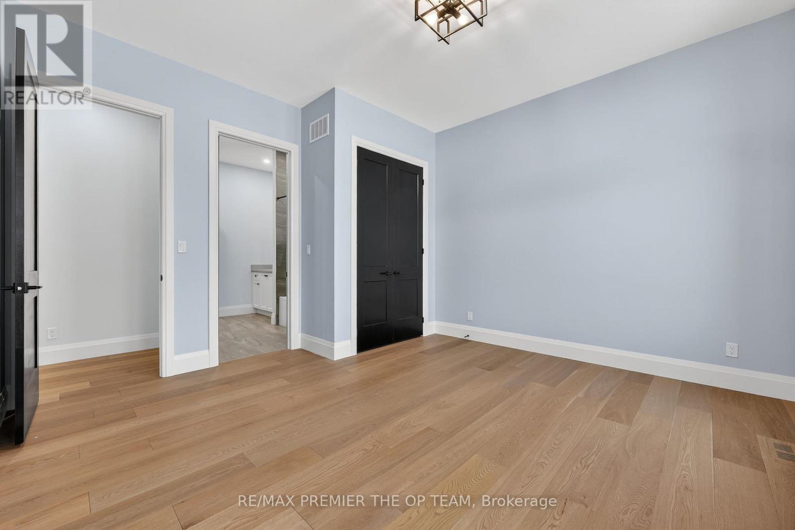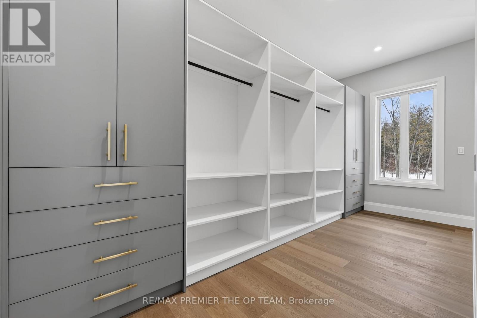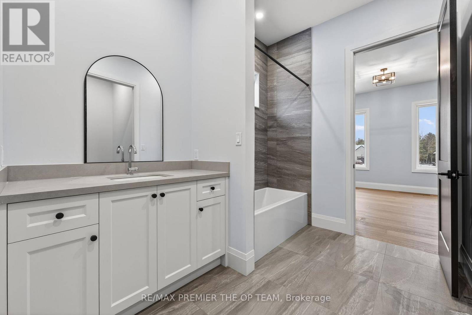 New 3,200 sq. ft. custom stone and brick bungalow on over an acre, built by a quality builder and backed by Tarion warranty. This stunning home features wide plank hardwood floors, high-end light fixtures, JennAir appliances, and Riobel bathroom fixtures throughout. The open-concept kitchen and living area is highlighted by a massive island, butler's pantry with espresso bar, and a dramatic floor-to-ceiling double-sided stone fireplace, with walkout to a covered back deck overlooking a pool-sized yard and forest backdrop. The principal suite offers a feature wall, walk-through custom closet, and spa-inspired ensuite. Separate bedroom wing with 3 bedrooms and 2 full baths. Main floor laundry and mudroom off the impressive 40' x 30' garage with oversized doors, high ceilings for car lifts, and basement walk-up. Basement features 9 ft ceilings and rough-in for additional bath. Landscaping package includes exposed stone concrete walkway, entrance garden with two trees, sodded front yard, and hydro-seeded backyard. Excellent commuter location with easy access to Barrie and Hwy 400. (id:64974)