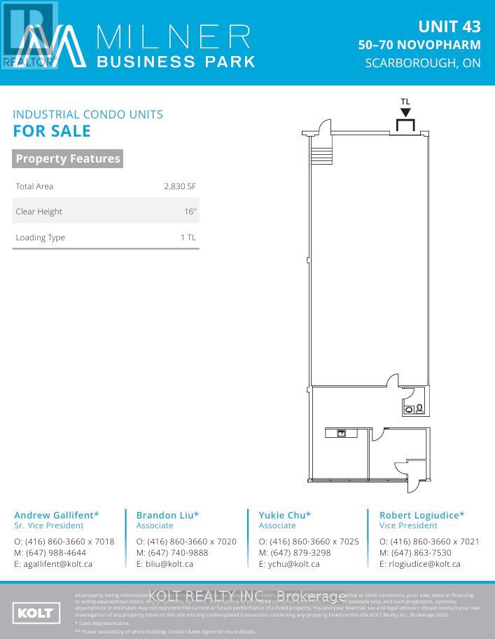 Welcome to the Milner Business Park, featuring this Prime Industrial unit offering 2,830 sq.ft. with 16' clear height, & 1 Truck-level Loading Dock. Ideal for end users or investors.Great location in high demand industrial area and offering quick access to Hwy 401, a keybenefit for logistics and transport-oriented businesses. Flexible E0.6 zoning can accommodate awide range of industrial uses. The property's three access points help streamline entry andexit, with ample parking spaces for your staff & clients. Vendor can provide turnkey buildouts& renovation options, and the space is easily adaptable to your needs. This industrial unit isa smart choice for operational efficiency and investment potential. Industrial Condo Unit #43,Municipal Address 60 Novopharm Court. (id:64974)