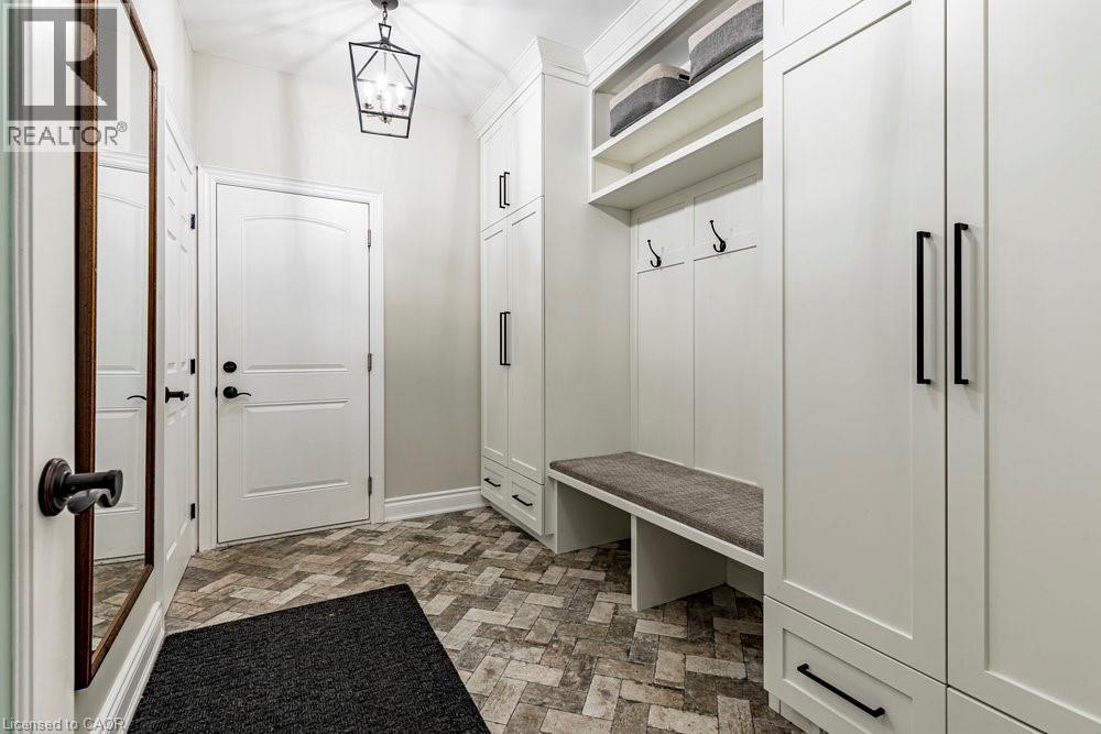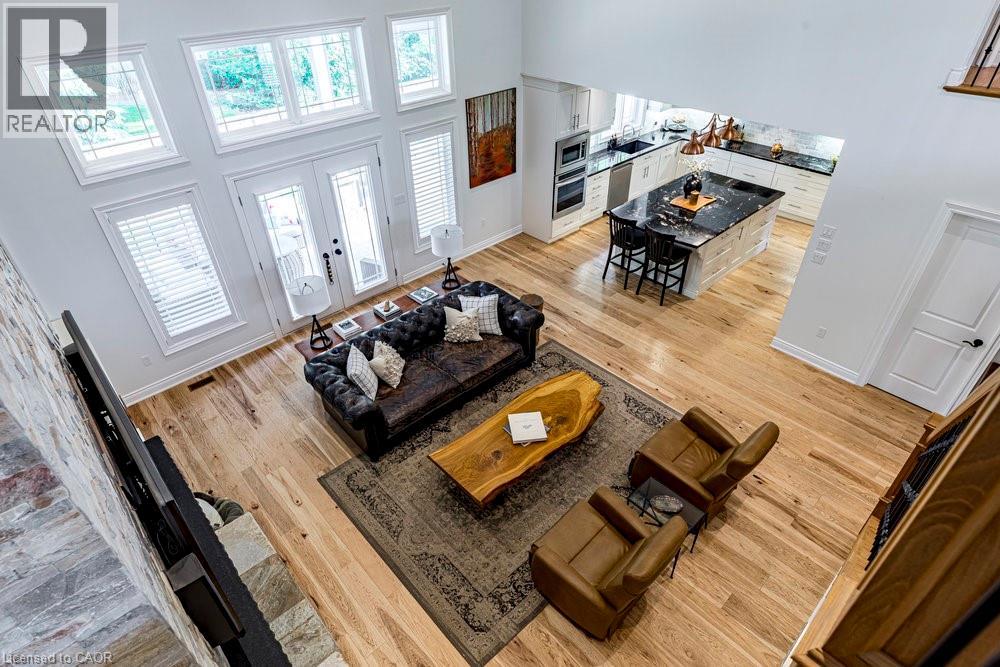 Homes like this don’t come around often! Tucked away on a quiet street in Ancaster’s coveted Oakhill neighbourhood, this custom bungaloft delivers timeless country-inspired design, space, and lifestyle in one impressive package. The main floor is bright and open, centred around a stunning eat-in kitchen that works just as well for casual mornings as it does for hosting. A dramatic two-storey great room anchors the space, complemented by a formal dining area, walk-in pantry, mudroom, and a dedicated home office – everything thoughtfully laid out for easy living. The main-floor primary suite is a standout, designed as a true retreat with a spa-inspired ensuite, two walk-in closets, and a peaceful, private feel. Upstairs, two spacious bedrooms each feature their own ensuite, along with a flexible loft space ideal for a cozy reading nook, kids’ hangout, or 4 th bedroom. The fully finished lower level takes entertaining to the next level, offering a rec room, full bath, home gym (or optional bedroom), workshop, stylish bar, and a temperature-controlled wine room – perfect for hosting or unwinding at home. Outside, the backyard is your own private escape. Professionally landscaped and designed for easy enjoyment, it features a covered porch, saltwater gunite pool with automatic cover, built-in BBQ, and lush greenery that makes every day feel like a getaway. A rare triple garage and parking for up to 12 vehicles round out this exceptional property. From top to bottom, inside and out, this is a home that truly checks every box in one of Ancaster’s most desirable communities. Full list of features available upon request. (id:64974)