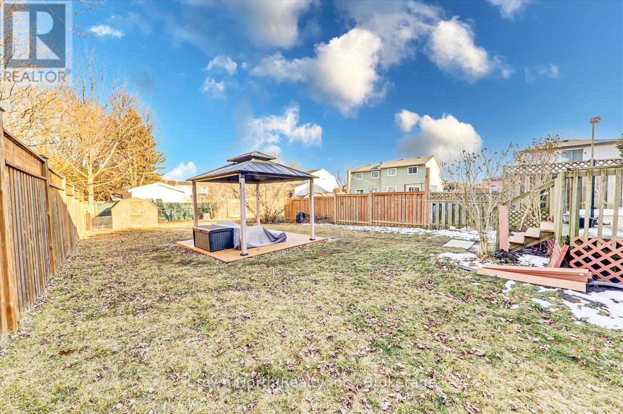 Discover this beautifully updated 4 bedroom, 3 bath, two storey home in one of the area's most welcoming small town neighborhood's.Thoughtfully modernized from it's original 1976 design, this home blends classic charm with refreshed, contemporary finishes throughout. the main and upper levels offer a warm, well-defined layout typical of the era, while they fully finished basement adds valuable flexibility, perfect for arec room, home office, extra family space, or even the potential to create a 5th bedroom with some finishing work. The large private backyard isa true highlight- complete with a charming gazebo, perfect for relaxing or entertaining. An attached garage provides added convenience, and the overall layout offers comfort, character and room to grow. Located close to the local schools and just minutes from the 401, this home provides quick access to everyday essentials. With its generous lot size, fresh updates, and friendly community setting, this home is an exceptional opportunity you won't want to miss. (id:64974)