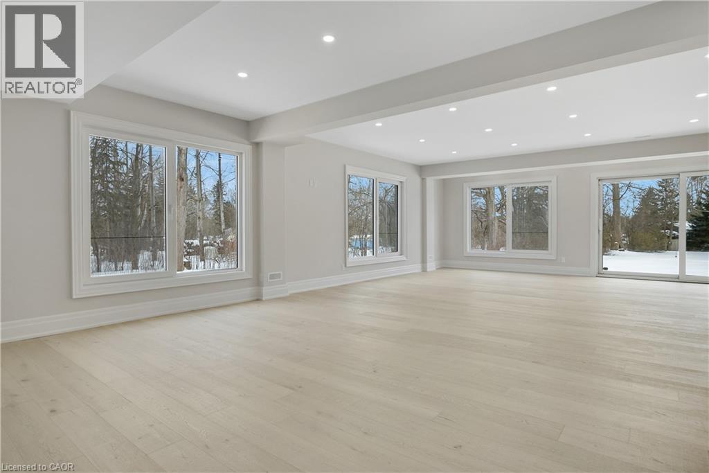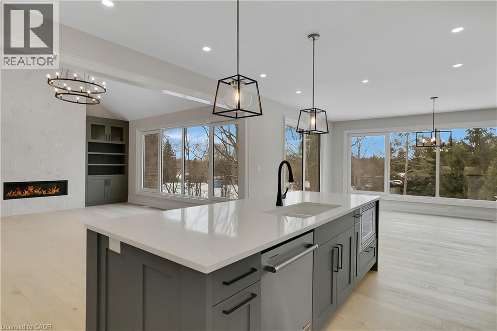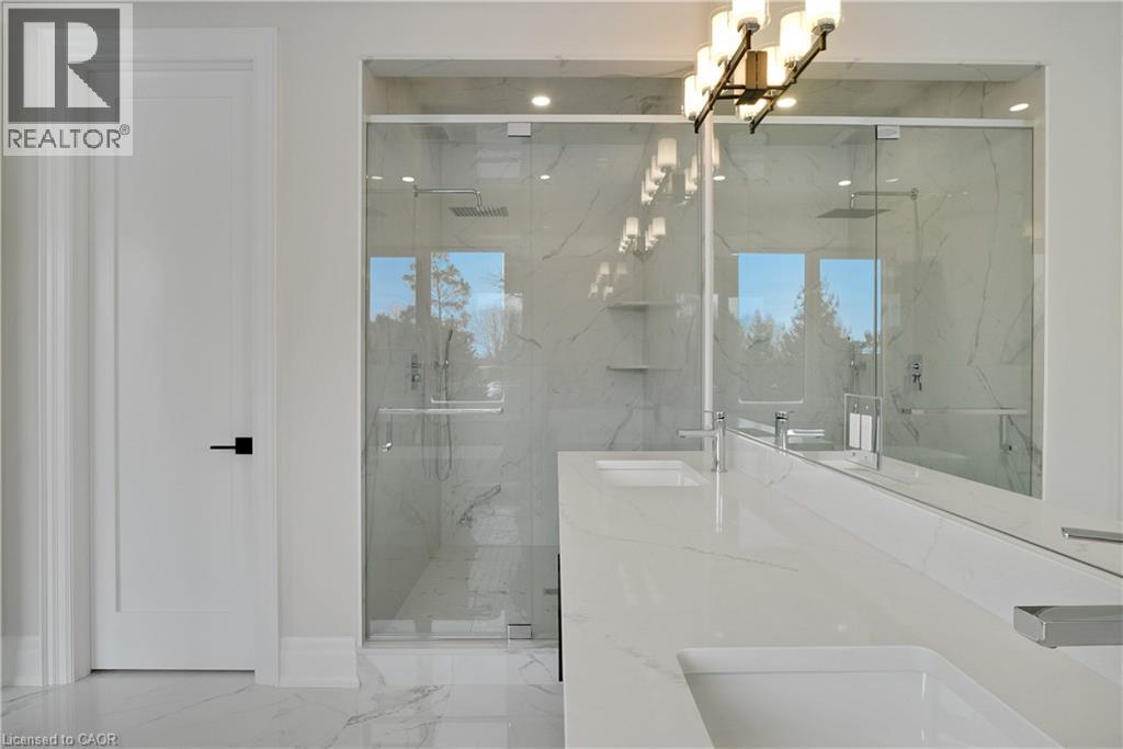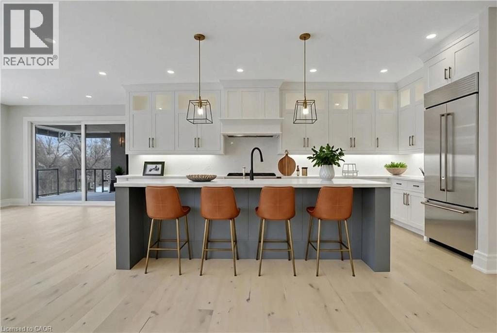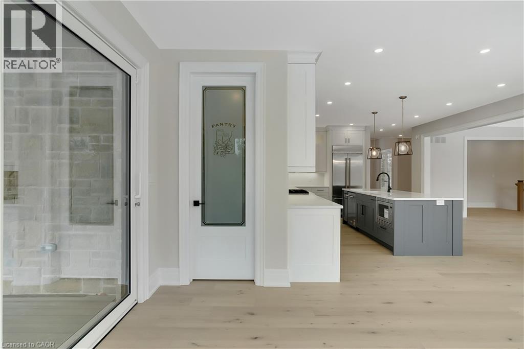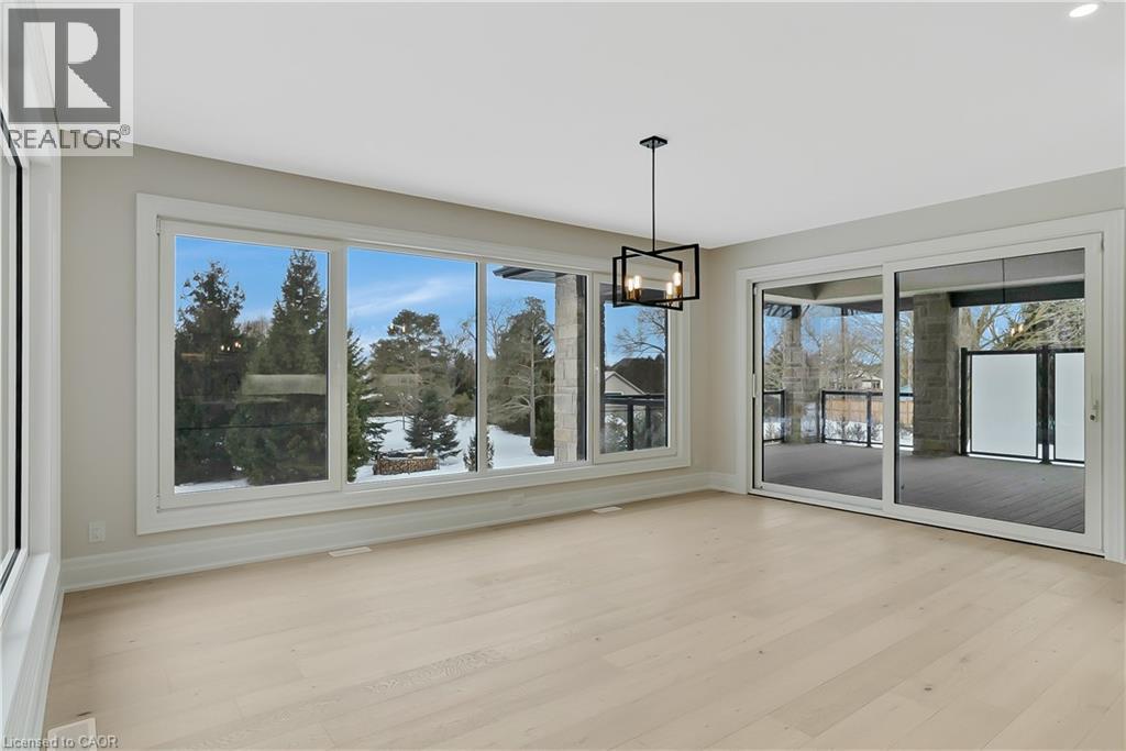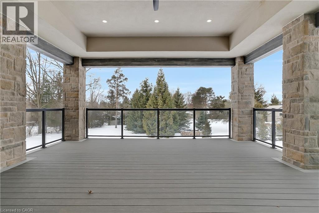 Modern Country Estate Like No Other. “Brand New” breathtaking custom all stone bungalow offering over 6,000 sq. ft. of finished luxury living with a full walkout basement done in 10ft wide & 8ft high glass sliding doors with steel frame and also, separate entrance off garage. Easily could function for multigenerational families, this home features 5 bedrooms, 4 full bathrooms, and a stylish main floor powder room. High tech European steel doors and windows deliver exceptional unmatched security and striking modern design, while floor to ceiling windows each level showcase the south facing, over ¾ acre treed lot. A true escape designed for families who value space, serenity, and sophistication. Enjoy a massive, covered porch with pot lights, a gas line for grilling, and complete privacy—perfect for creating your dream backyard oasis. The grounds offer endless potential for a resort style pool retreat. Impressive foyer w/11 ft ceiling. Large main floor office with custom built-in cabinetry &11 ft ceilings, Great room w/14ft ceiling height. All appliances included. 4 car tandem garage, and 5 car driveway, Security Cameras, Full irrigation system, 2 zone furnace- main & lower-level separate controls. Tankless Hot Water Heater, Water Softener- all equipment owned. All bedrooms with custom built in Shelving. Located minutes from the Grand River and Conestoga Golf Course, and only 10 minutes to Waterloo, this property blends peaceful country living with urban convenience. A rare offering of elegance, privacy, and craftsmanship by the acclaimed Surducan Custom Homes! (id:64974)
