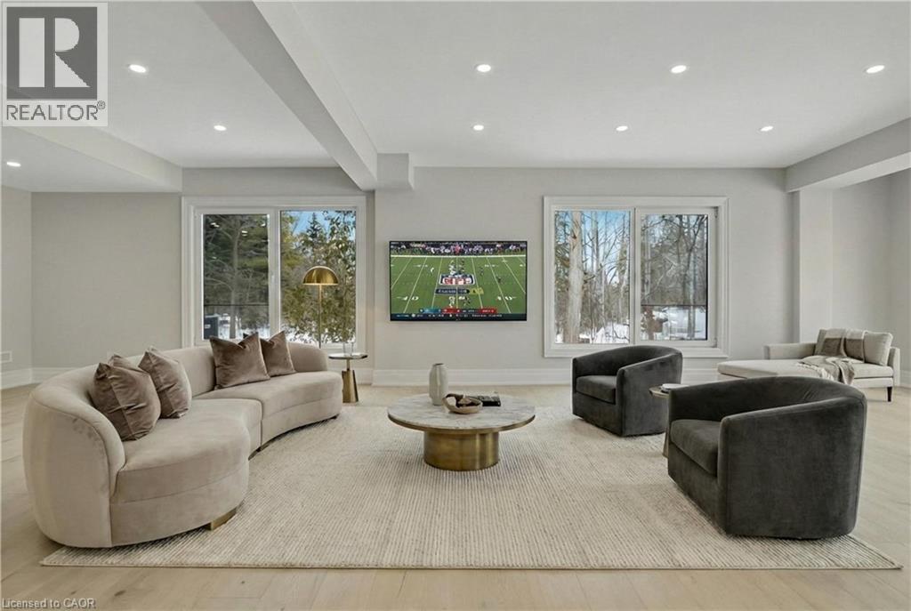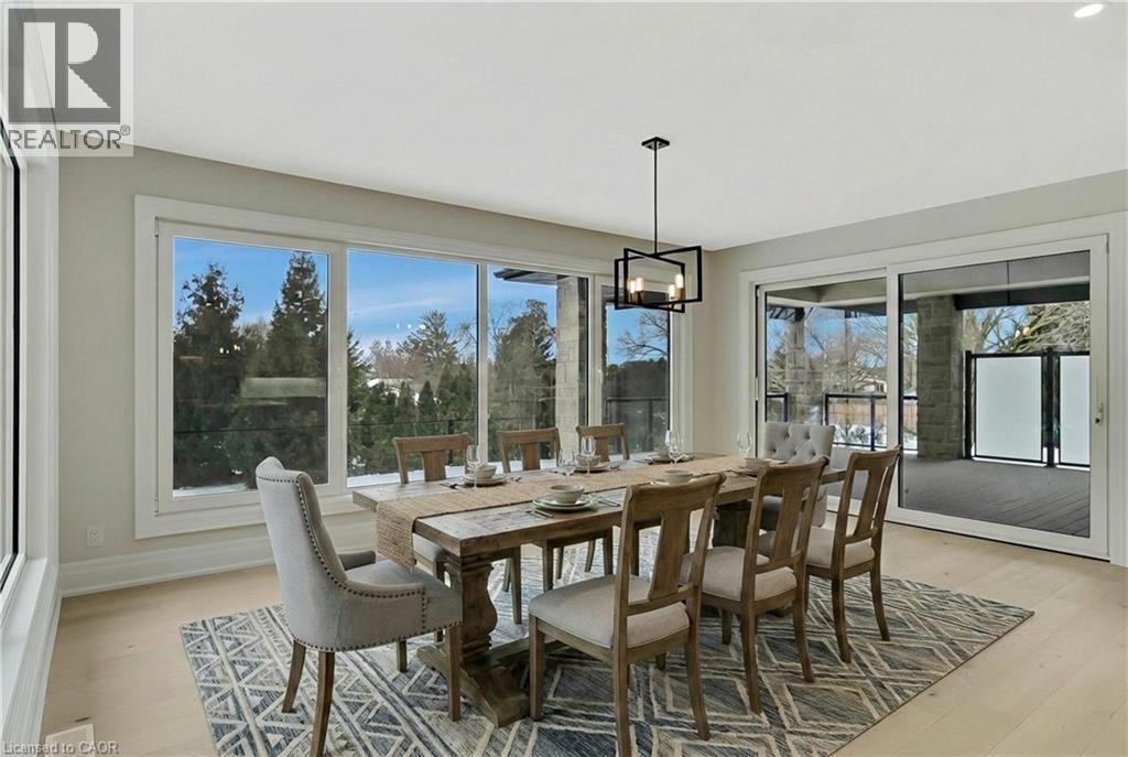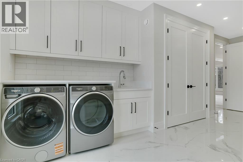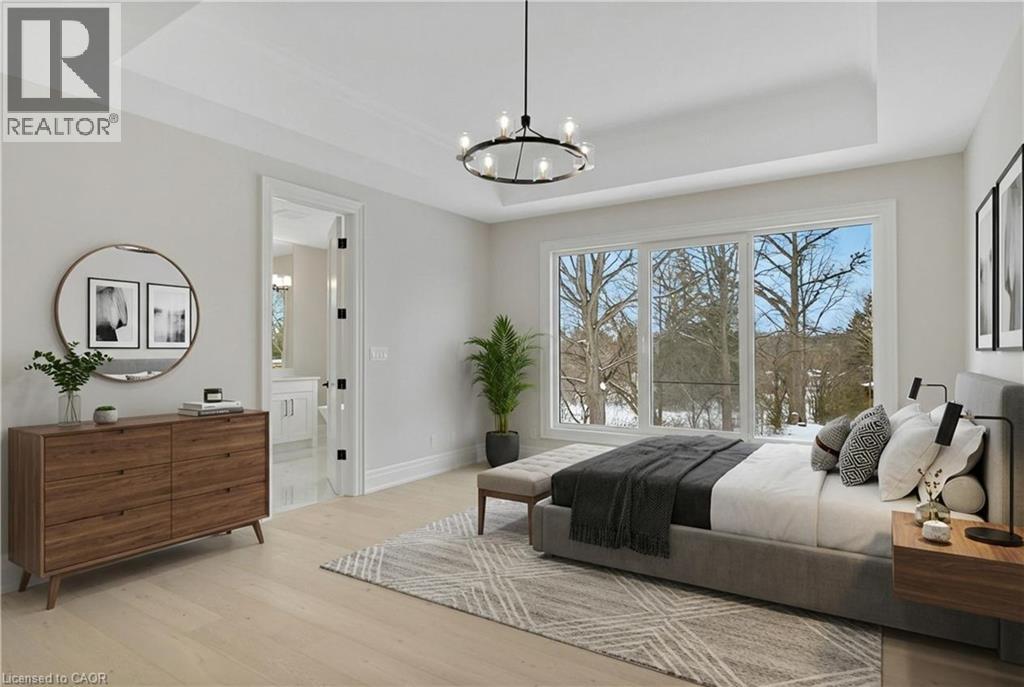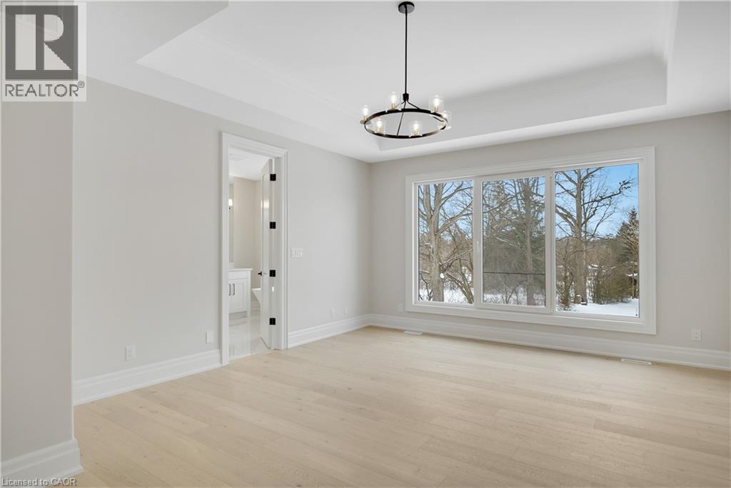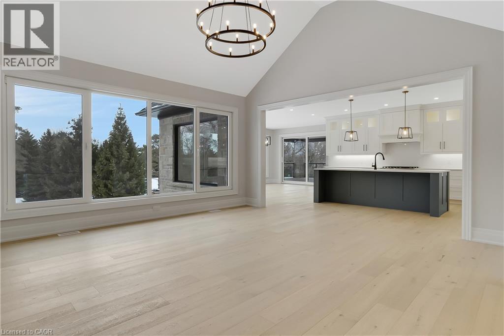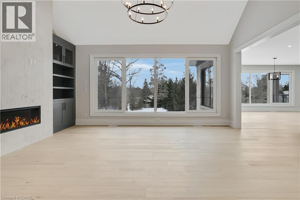 Modern Country Estate Like No Other. “Brand New” breathtaking custom all stone bungalow offering over 6,000 sq. ft. of finished luxury living with a full walkout basement done in 10ft wide & 8ft high glass sliding doors with steel frame and also, separate entrance off garage. Easily could function for multigenerational families, this home features 5 bedrooms, 4 full bathrooms, and a stylish main floor powder room. High tech European steel doors and windows deliver exceptional unmatched security and striking modern design, while floor to ceiling windows each level showcase the south facing, over ¾ acre treed lot. A true escape designed for families who value space, serenity, and sophistication. Enjoy a massive, covered porch with pot lights, a gas line for grilling, and complete privacy—perfect for creating your dream backyard oasis. The grounds offer endless potential for a resort style pool retreat. Impressive foyer w/11 ft ceiling. Large main floor office with custom built-in cabinetry &11 ft ceilings, Great room w/14ft ceiling height. All appliances included. 4 car tandem garage, and 5 car driveway, Security Cameras, Full irrigation system, 2 zone furnace- main & lower-level separate controls. Tankless Hot Water Heater, Water Softener- all equipment owned. All bedrooms with custom built in Shelving. Located minutes from the Grand River and Conestoga Golf Course, and only 10 minutes to Waterloo, this property blends peaceful country living with urban convenience. A rare offering of elegance, privacy, and craftsmanship by the acclaimed Surducan Custom Homes! (id:64974)