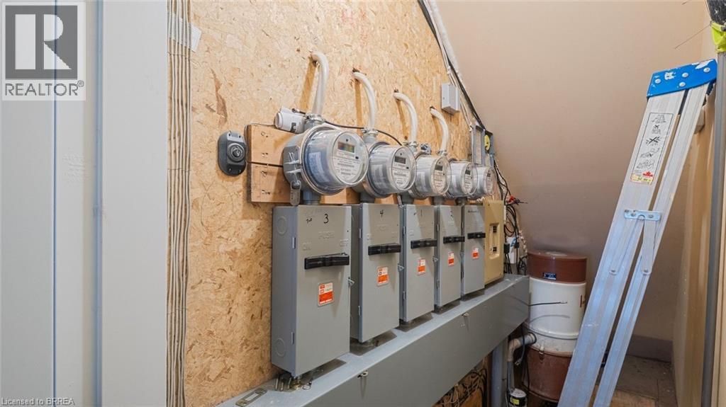 Renovated and gorgeous 4 plex on the banks of the Grand River in the pretty town of Paris, Ontario. Updated with flooring, open concept kitchen with quartz counters, cabinets, lighting. Bath updated. In suite laundry in each unit. Gas furnaces and central air. Each unit faces the water from the living areas. Upper floor with balconies, lower floor with patio deck. Interior hallways with doors to each unit. Outbuilding has potential. Watch the sunsets and wildlife over the river ! Beautiful. Good long term tenants in most units. Well maintained property. (id:64974)