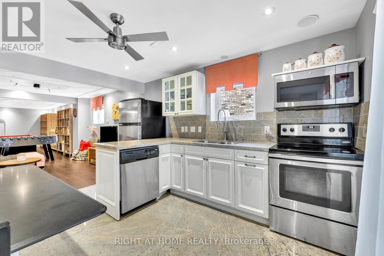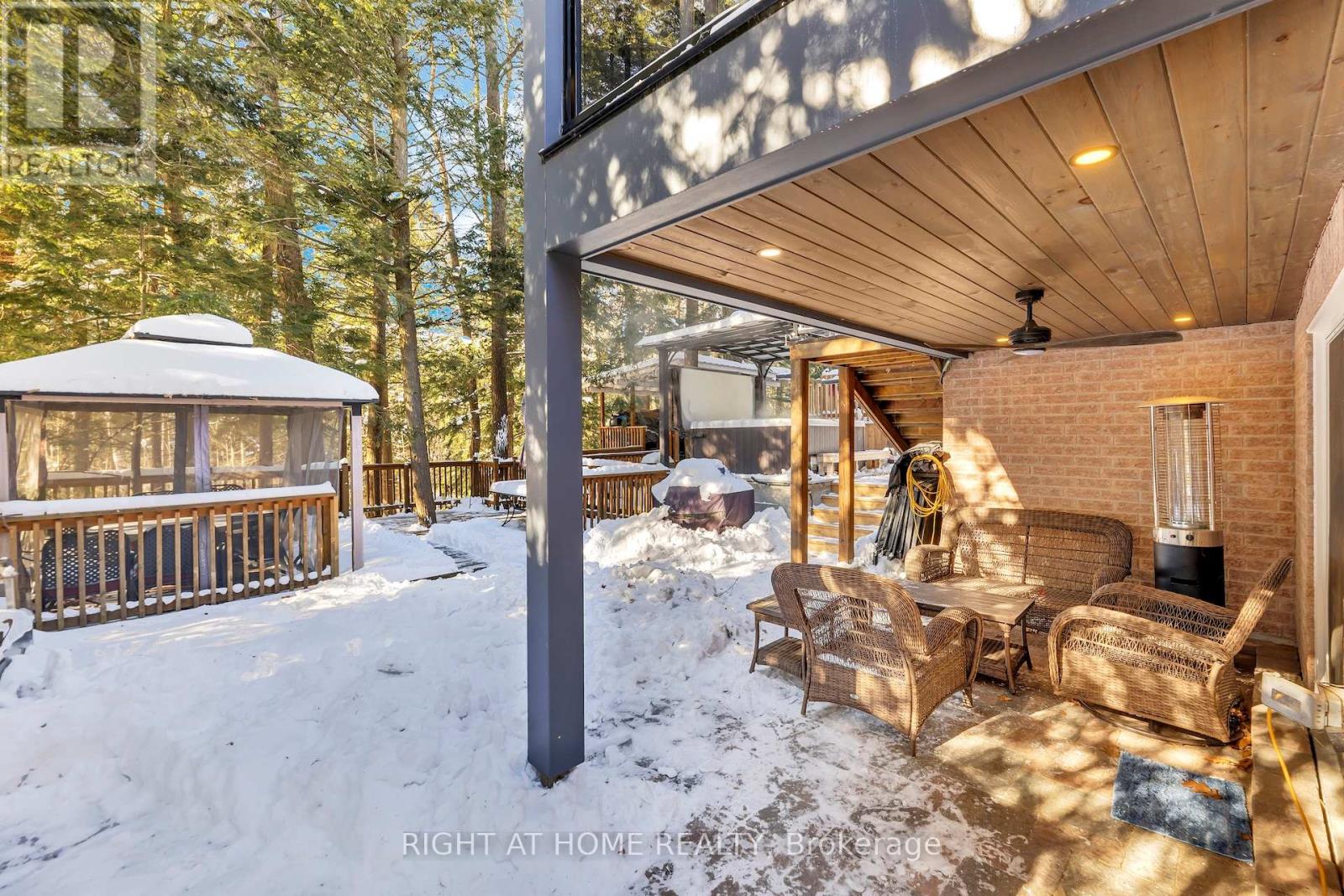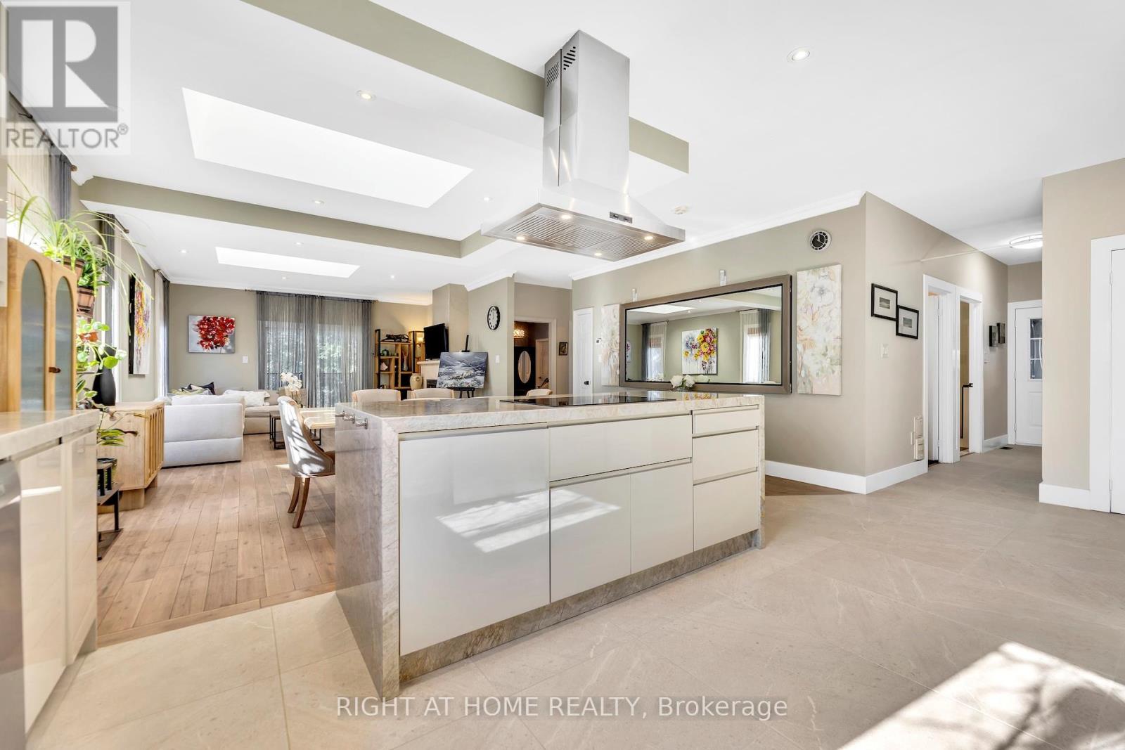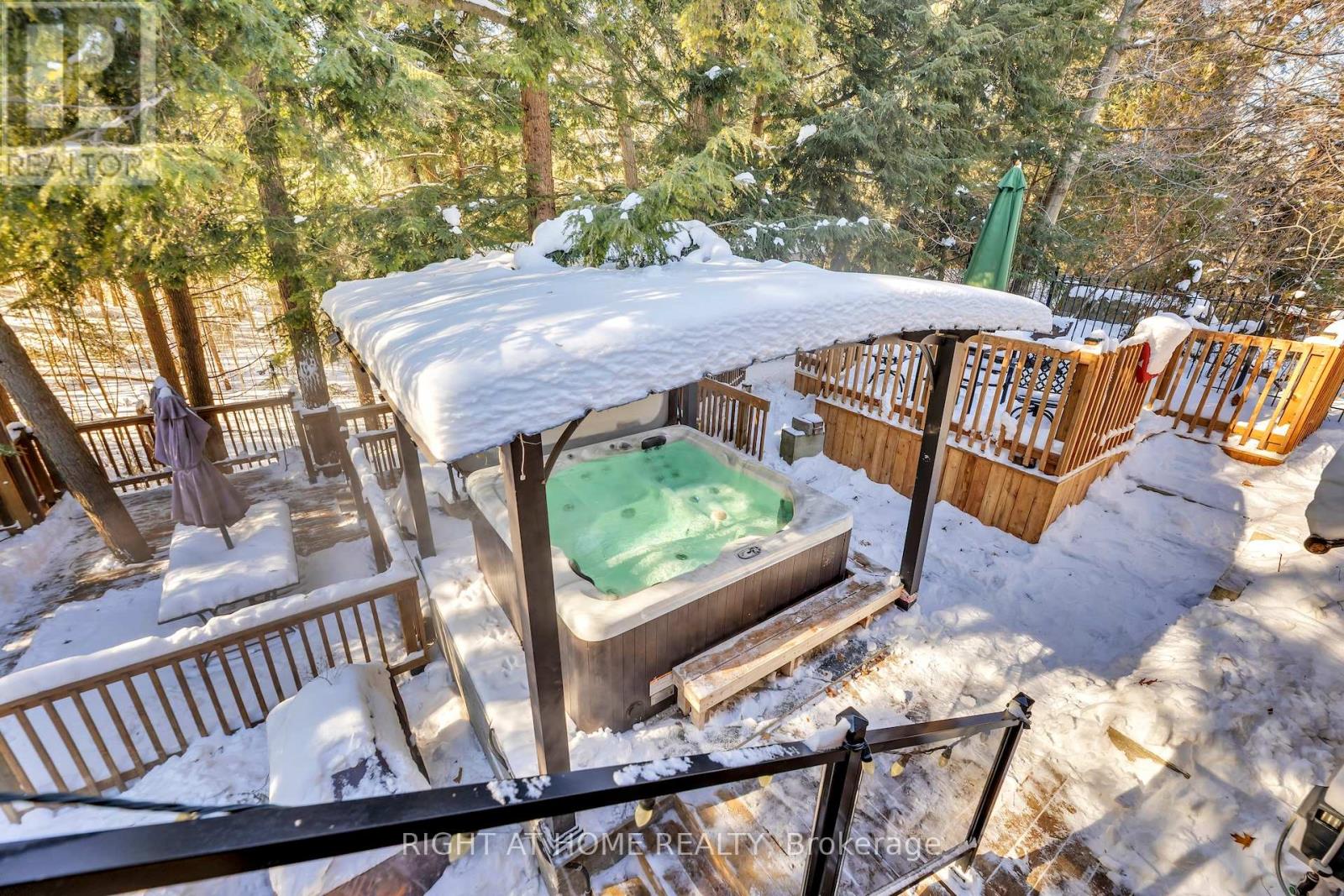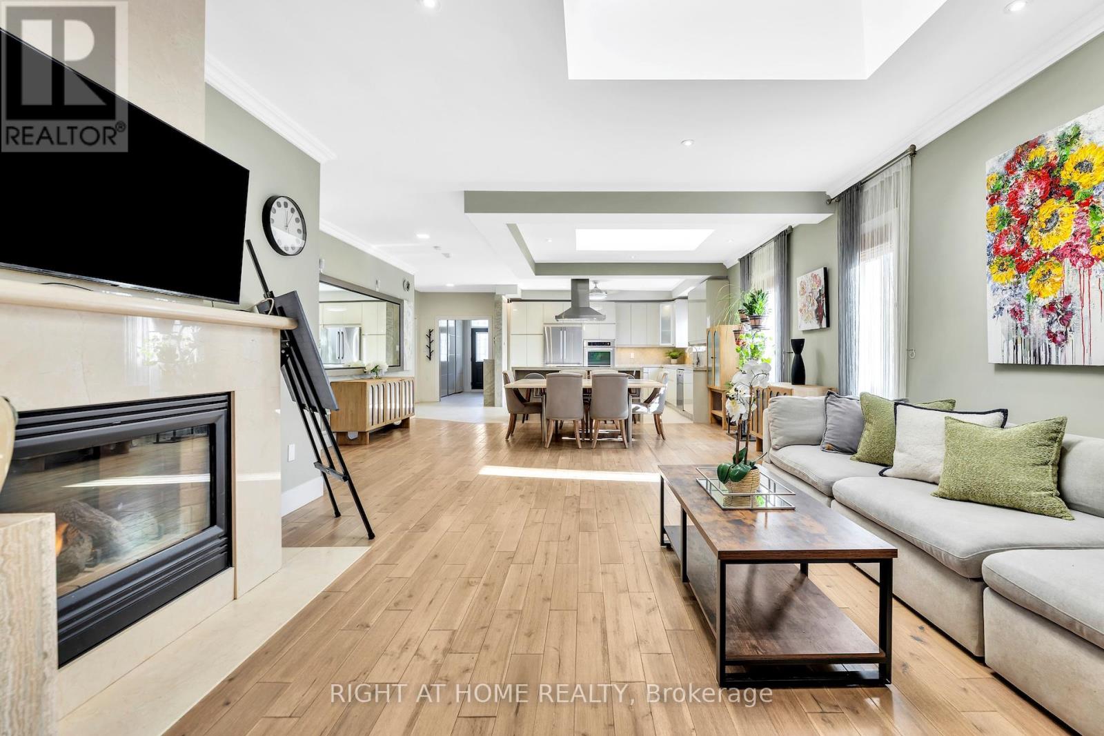 Tucked away on an exclusive private street shared by only three homes, 600 Henderson Drive offers a rare sense of seclusion and tranquility surrounded by mature trees and ravine views while still being centrally located in the highly sought-after Aurora Highlands. This extensively renovated 3+1 bedroom, 4 bathroom home is a must see. The main level showcases a stunning chef's kitchen with granite countertops, backsplash, and an impressive 88" x 38" waterfall island, complemented by stainless steel appliances. Engineered hardwood flooring, pot lights, skylights and sun tunnels fill the home with natural light, while a striking two-sided Crema Marfil marble gas fireplace anchors the living space. Walk out from both the living room and primary bedroom to a fully upgraded balcony featuring new flooring, glass railings, wood ceilings, pot lights, and a ceiling fan, all overlooking a private ravine setting. The spa-inspired primary ensuite features travertine tile throughout and a quartz countertop vanity. The fully finished lower level offers a second kitchen with granite counters and stainless steel appliances, a full bath with stand-up shower, a dry sauna accommodating 5-7 people, and a walk-out to an interlock patio. Enjoy your own backyard oasis with landscaped grounds, multiple decks, gas line for BBQ, Hot tub, and serene ravine views. Ideally located close to top-rated schools, trails, shopping, and more. A true showstopper not to be missed. (id:64974)