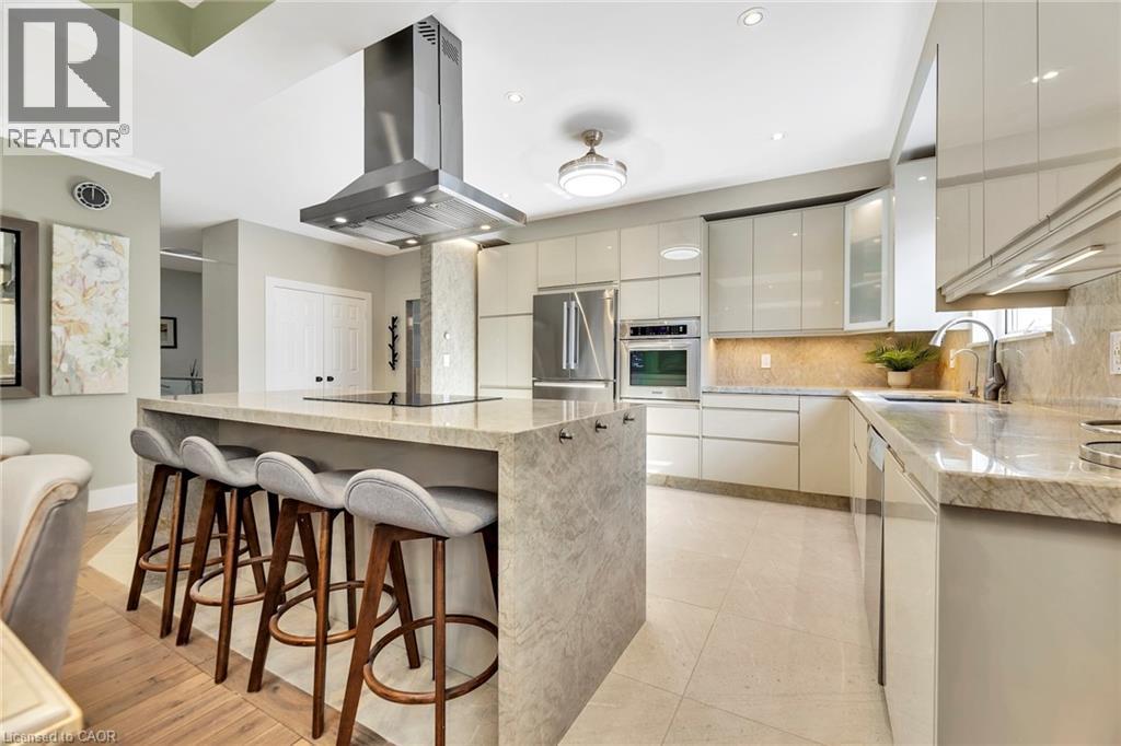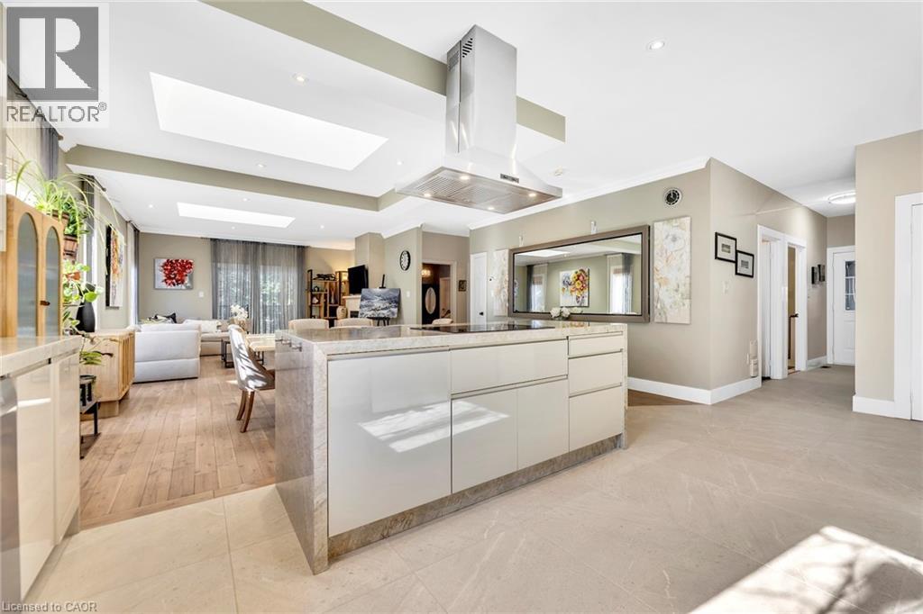 Tucked away on an exclusive private street shared by only three homes, 600 Henderson Drive offers a rare sense of seclusion and tranquility surrounded by mature trees and ravine views while still being centrally located in the highly sought-after Aurora Highlands. This extensively renovated 3+1 bedroom, 4 bathroom home is a must see. The main level showcases a stunning chef's kitchen with granite countertops, backsplash, and an impressive 88 x 38 waterfall island, complemented by stainless steel appliances. Engineered hardwood flooring, pot lights, skylights and sun tunnels fill the home with natural light, while a striking two-sided Crema Marfil marble gas fireplace anchors the living space. Walk out from both the living room and primary bedroom to a fully upgraded balcony featuring new flooring, glass railings, wood ceilings, pot lights, and a ceiling fan, all overlooking a private ravine setting. The spa-inspired primary ensuite features travertine tile throughout and a quartz countertop vanity. The fully finished lower level offers a second kitchen with granite counters and stainless steel appliances, a full bath with stand-up shower, a dry sauna accommodating 5-7 people, and a walk-out to an interlock patio. Enjoy your own backyard oasis with landscaped grounds, multiple decks, gas line for BBQ, Hot tub, and serene ravine views. Ideally located close to top-rated schools, trails, shopping, and more. A true showstopper not to be missed. (id:64974)