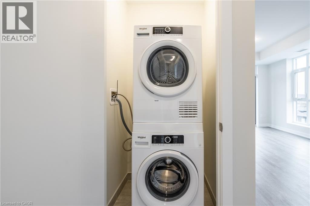 Welcome to COMO Condos—one of Stoney Creek’s most sought-after new communities. This stunning fifth-floor corner suite offers a rare blend of style, comfort, and breathtaking views, with sightlines of both the Niagara Escarpment and Lake Ontario enjoyed from your private balcony and bedroom. Designed with a modern coastal aesthetic, this bright and spacious unit features two well-appointed bedrooms, a sleek four-piece bathroom, and impressive 9-foot ceilings that enhance the open, airy feel. The thoughtfully designed open-concept layout is complemented by elegant vinyl plank flooring and contemporary finishes throughout. The stylish kitchen is fully equipped with a XL island fully functioning with ample storage and great prep area, brand-new appliance package, perfect for both everyday living and entertaining. Enjoy the convenience of in-suite stackable laundry, along with the added value of underground parking and a dedicated storage locker. Residents of COMO Condos have access to an exceptional array of amenities, including a rooftop terrace with BBQs and a community garden, a fully equipped bike room, party and media rooms, as well as a dog park and pet spa—perfect for pet lovers. Ideally located close to parks, waterfront trails, shopping, and major highway access, this unit offers the perfect balance of urban convenience and natural beauty. Don’t miss your chance to call this beautiful suite home—available for immediate occupancy. (id:64974)