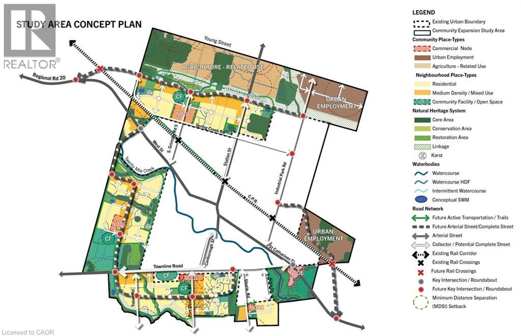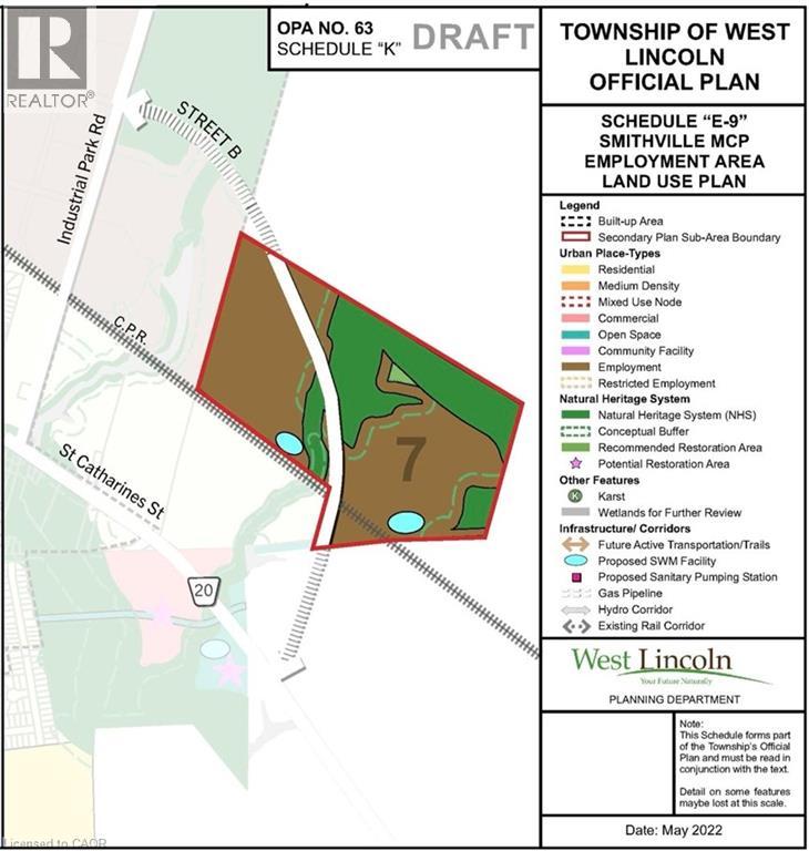 Rare opportunity to acquire approximately 128± acres of land in Smithville, Ontario, with a portion of the property located inside the expanded urban boundary and the balance outside the urban boundary, offering a unique blend of near-term and long-term strategic value. The Township of West Lincoln and the Region of Niagara have identified Smithville as the primary focus for long-term population and employment growth. The land base comprises approximately 60 acres of workable farmland and approximately 68 acres of forest and wetlands, allowing for interim agricultural use while maintaining long-term land banking potential as planning policies evolve. Official Plan Amendments OPA 62 and OPA 63 establish a framework for Smithville’s future growth, identifying approximately 540 hectares of new development lands, with projected growth of approximately 29,030 residents and 7,360 jobs by 2051. Planning documents contemplate a range of land uses within the broader growth area, including employment-related and urban-supportive uses, subject to further approvals. The subject property is identified within Block Plan 7, Phase 2A, with existing zoning and designations including Employment-related planned use, EC zoning, and A zoning. This offering represents a large-scale, well-suited for investors seeking exposure to Smithville’s long-term growth trajectory. (id:64974)