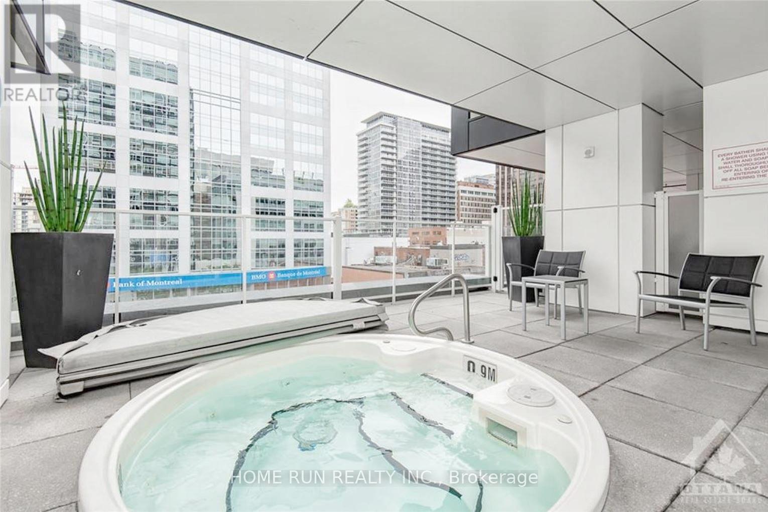Welcome to THE SLATER, located in the heart of Ottawa's Financial District, only steps from the Parliament. This condo offers 1 Bedroom,1 Den (Office), full Bath, Locker and a Balcony with a spectacular view of the Downtown Skyline. Sun filled living room fts 9' ceiling and floor-to-ceiling windows. Chef style kitchen comes with stainless steel appliances to make the space feel fresh, Quartz countertops with island to complete the trendy living style. Spacious primary bedroom with beautiful sliding door and huge closet. Large Den (Office) is perfect for working from home and can double as a second bedroom. Main bathroom features a stone countertop, glass shower, balcony with a beautiful city view and in-suite laundry makes urban living convenient. Building features a large terrace with BBQ hookup. Amenities include gym, party room, whirlpool, screening room, billiards room and concierge service. Located steps from Parliament, 3 mins walk to LRT Station, restaurants, shopping, Byward Market and Rideau Center. Please include proof of income, credit report & photo ID with rental application. No Pets, No Smokers, No roommates. (id:64974)