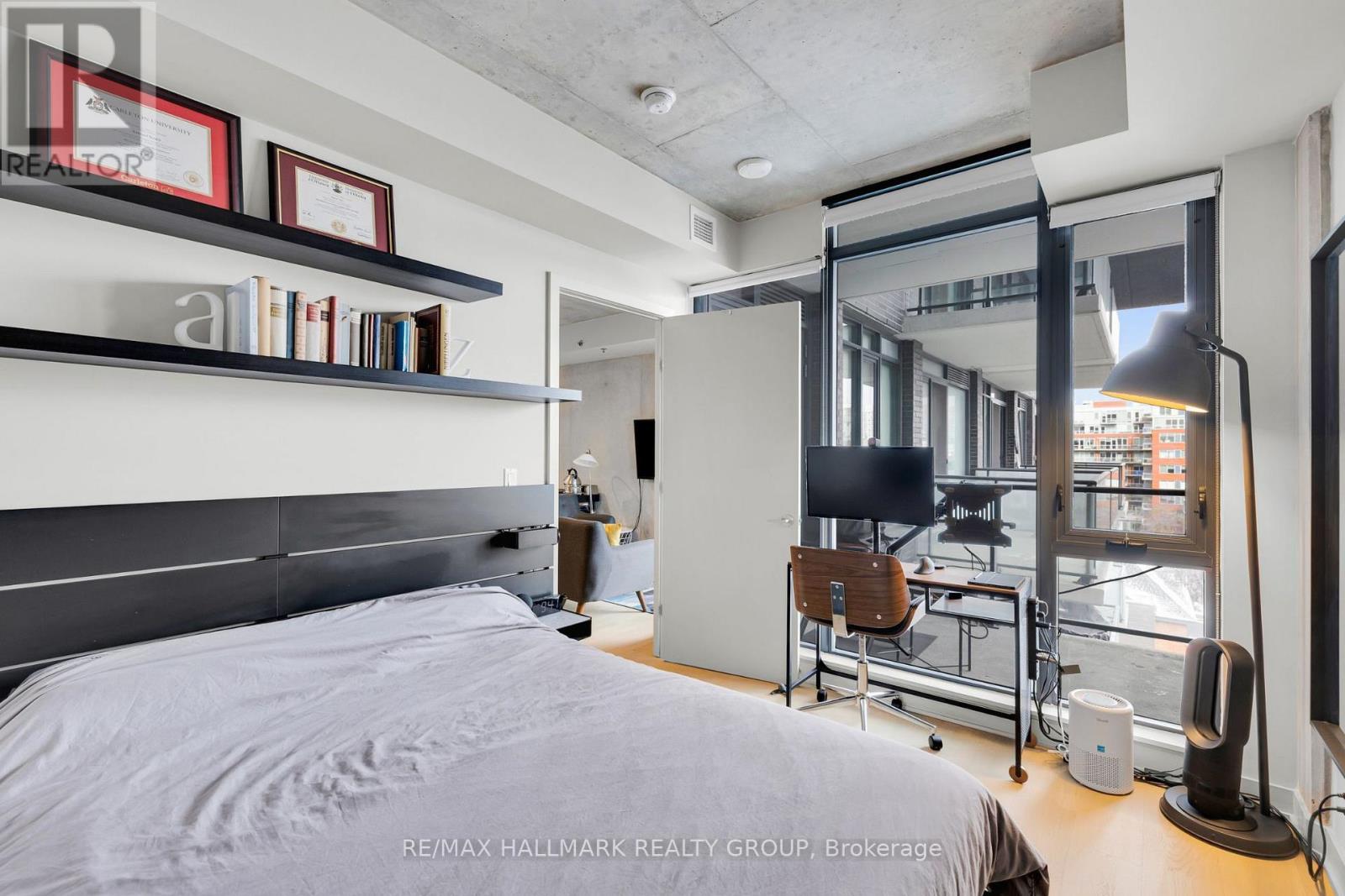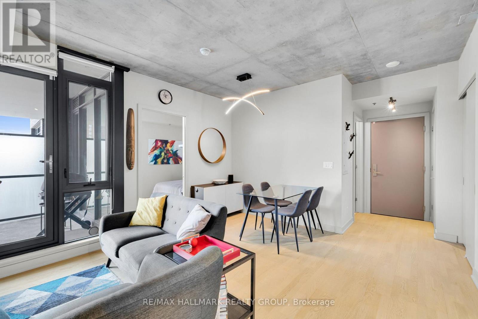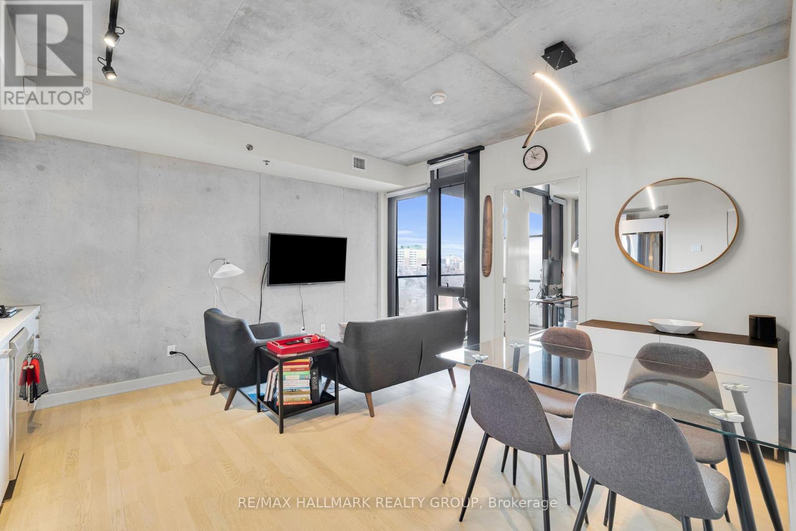 Modern 1-bedroom condo with parking and storage locker in the iconic SOBA building in Centretown, featuring floor-to-ceiling windows, exposed concrete ceilings and walls, sleek contemporary finishes, and access to luxury amenities including an outdoor pool and concierge, all steps from Bank Street, Lansdowne, and the Rideau Canal.This bright open-concept unit showcases the modern industrial design SOBA is known for, with expansive windows that fill the space with natural light and highlight the clean architectural lines throughout. The stylish kitchen features stone countertops, stainless steel appliances, and modern cabinetry, flowing seamlessly into the living and dining area for comfortable everyday living or entertaining.The bedroom provides generous storage and privacy within the smart urban layout. Enjoy the convenience of in-unit laundry, and a private balcony, perfect for relaxing in the heart of downtown.Residents enjoy premium building amenities including concierge service, a fully equipped gym, pool and terrace, spa pool, and sky garden party room.Located at the corner of Catherine and Bank, this unbeatable location places you steps from Ottawa's best restaurants, cafes, shops, Lansdowne Park, and scenic Rideau Canal pathways, with quick access to Highway 417 and excellent transit connections.An outstanding opportunity for professionals, first-time buyers, or investors seeking modern downtown living in one of Ottawa's most recognizable condo buildings. (id:64974)