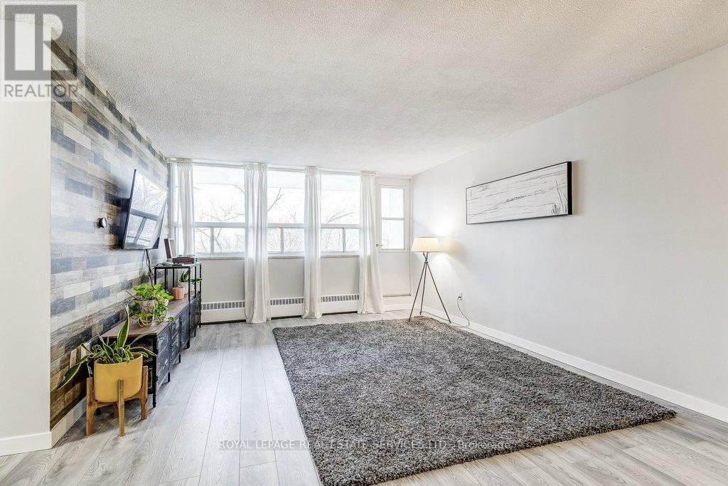Desirable south-facing suite at Arbour Glen, quietly set back in the heart of vibrant Kerr Village. Enjoy an open outlook and natural light with unobstructed views. This bright, inviting 960 sq. ft. 2-bedroom condo offers well-proportioned living space with a warm, updated interior and peaceful views over lush green grounds. Recent improvements include a modern kitchen, updated bathroom, open-concept living and dining area with feature wall, and quality laminate flooring throughout - a clean, move-in-ready home reflecting pride of ownership. Smart Nest thermostat integrated with Google Home controls lighting, select outlets, and the heat/AC unit. Includes walk-in ensuite locker/storage space. Enjoy one of Oakville's most walkable lifestyles: stroll to Kerr Village cafés, restaurants and local shops, with downtown Oakville, waterfront parks, trails, and the lake just minutes away. Easy access to transit, highways and everyday amenities. A perfect opportunity for downsizers, first-time buyers or anyone seeking relaxed, connected living in one of Oakville's most loved neighbourhoods. (id:64974)