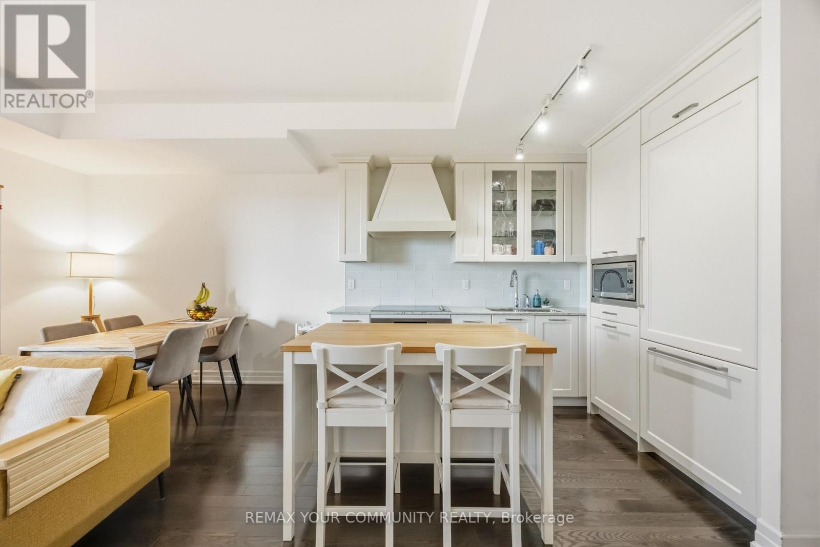 Welcome to The Riverhouse at the Old Mill, a rare opportunity to live in one of Toronto's most picturesque and tranquil communities. This stunning 1-bedroom residence offers nearly 700 sq ft of spacious living, thoughtfully designed to blend comfort, style, and everyday convenience. The open-concept layout features hardwood flooring, a modern kitchen with quartz countertops, built-in appliances, and bright living spaces perfect for both relaxing and entertaining. Enjoy a luxury boutique lifestyle with premium amenities including 24-hour concierge service, indoor pool, hot tub, steam room, fitness centre, visitor parking, and a beautifully landscaped outdoor terrace. Located in a prime location just steps from Old Mill Subway Station and the scenic Humber River trail, this home offers the perfect balance of nature and urban convenience. Walk to Old Mill Parkette, the historic Old Mill Hotel & Spa, and the charming restaurants, cafés, and boutiques of The Kingsway and Bloor West Village.**Bell Internet and Cable Included in Condo Fees** (id:64974)