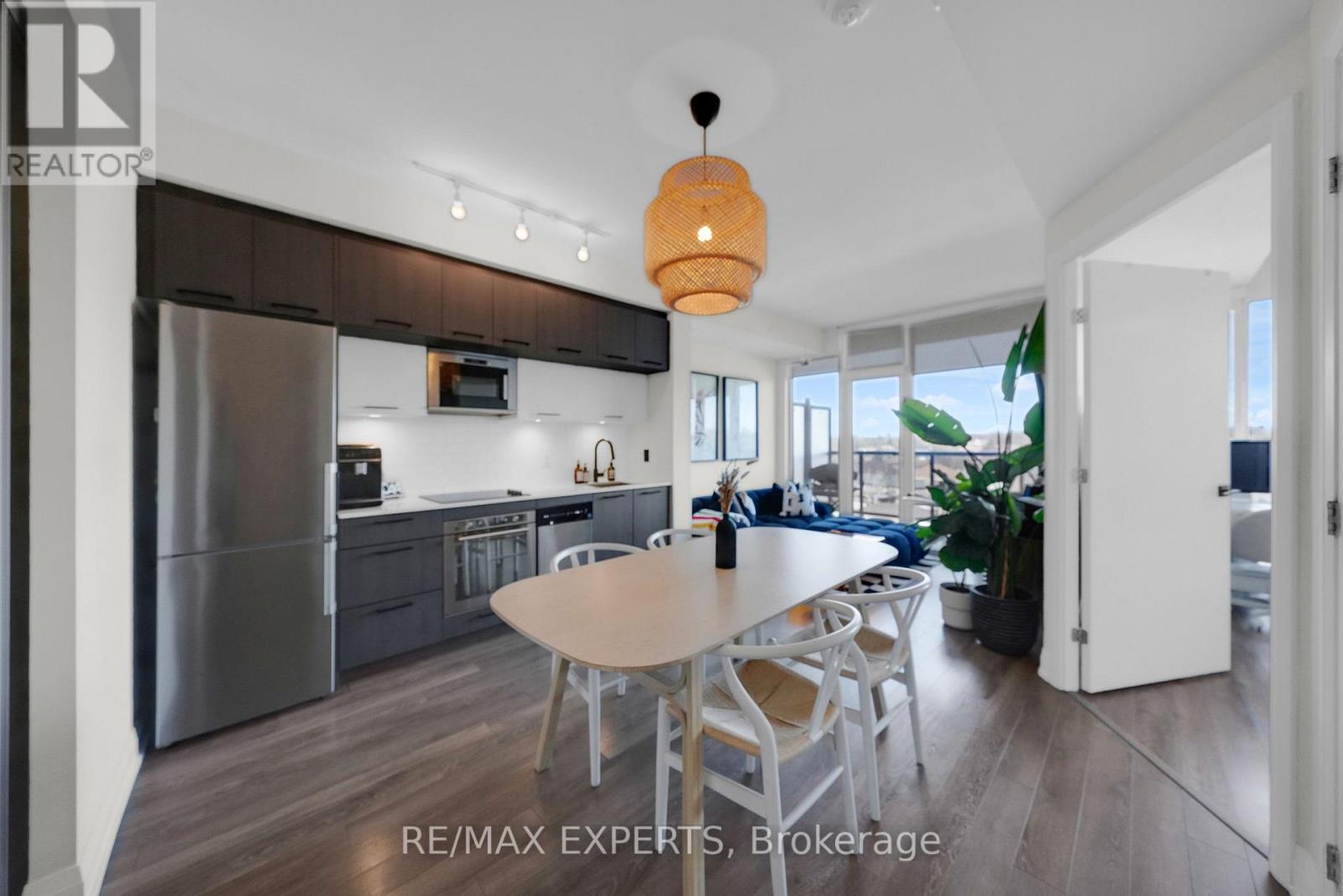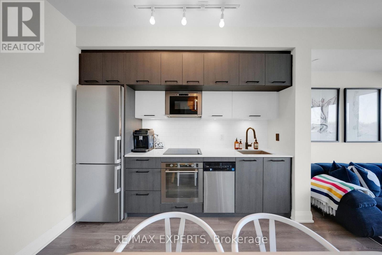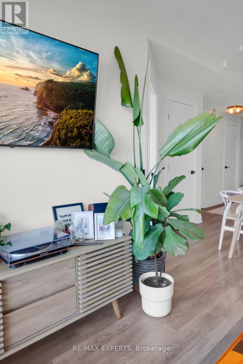 Welcome home to this beautiful 2 bedroom, 1 bathroom condo offering 650 sq ft of bright and thoughtfully designed living space. This freshly updated unit feels airy and inviting, with a smart layout that makes the most of every square foot. Large windows fill the home with natural light, creating an uplifting atmosphere and amazing energy throughout. The kitchen features sleek finishes, stainless steel appliances, and quartz countertops - perfect for everyday living and entertaining. The bathroom has been newly renovated with luxurious, spa-inspired details, giving the space a high-end feel. You'll also find stylish updates throughout the entire condo, making it completely move-in ready. The large terrace is a fantastic feature;it's the perfect spot for morning coffee, evening wind-downs and entertaining, or simply enjoying some fresh air. It truly extends the living space outdoors. Located in the heart of Woodbridge's sought after Avenue on 7 condos, residents enjoy incredible amenities including a rooftop lounge, outdoor saltwater pool, gym, sauna, party room, concierge, and visitor parking.Public transit is just steps away, with easy access to major highways including Hwy 400, Hwy 407, and Hwy 427. This condo is full of great vibes, positive energy, and thoughtful upgrades throughout; a truly special place to call home. (id:64974)