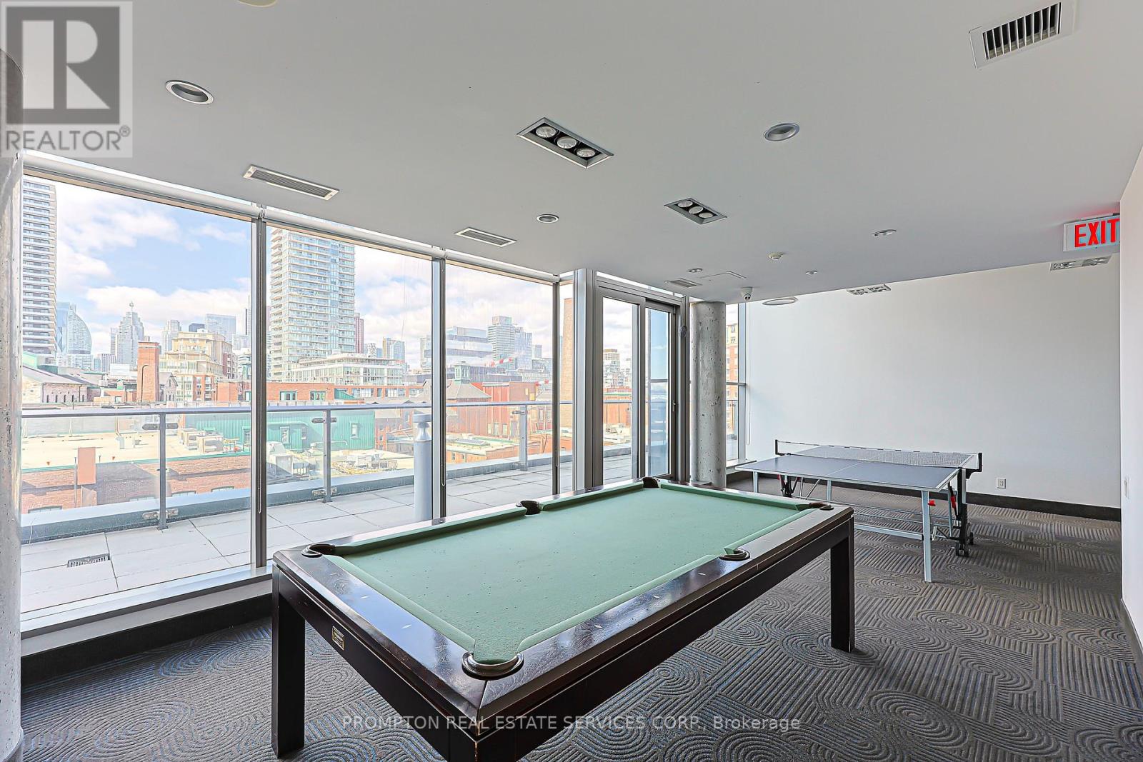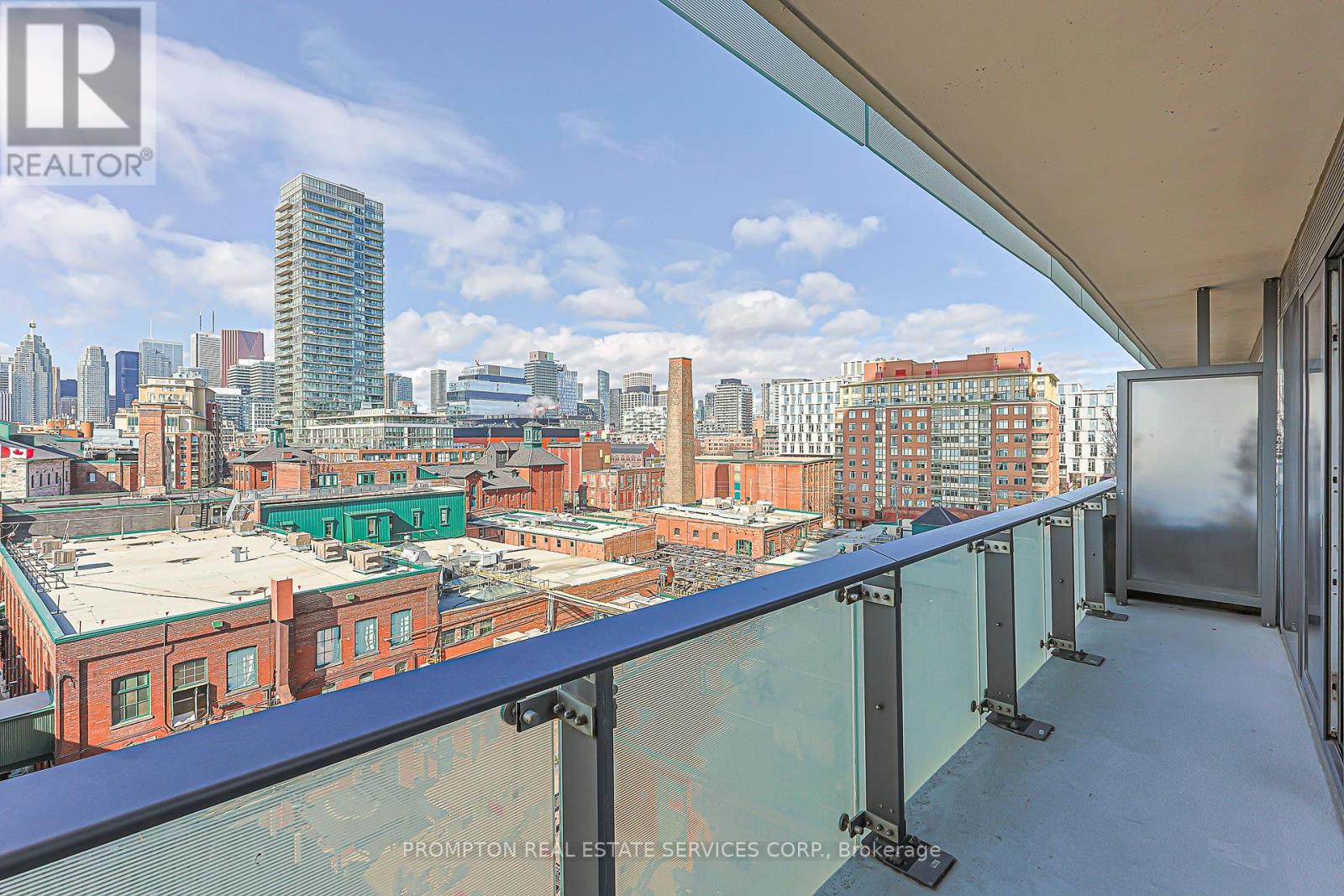 Historic charm, pedestrian-only streets, and vibrant experiences at every turn make the Distillery District one of Toronto's most desirable communities to live and invest in.This bright and spacious 1br +Den condo overlook Distillary district, offering stunning skyline and southwest lake views. Bright and modern, the unit features floor-to-ceiling windows, laminate floors, and an open-concept layout. The kitchen includes stainless steel appliances, a built-in dishwasher, generous storage, and sleek cabinetry. Step out onto the spacious balcony-perfect for relaxing or catching beautiful sunset. Extras include ensuite laundry, one owned parking space, and a conveniently located locker.Enjoy premium building amenities like a rooftop lounge, BBQ area, firepits, heated outdoor pool, gym, yoga room, steam sauna, party room, theatre, games and media rooms, and guest suites. Live steps from top restaurants, cafés, shops, galleries, and markets. Walk to St. Lawrence Market, Distillary District, Farm Boy, and No Frills. Quick TTC access connects you to Union Station in minutes. Move in and start loving where you live. (id:64974)