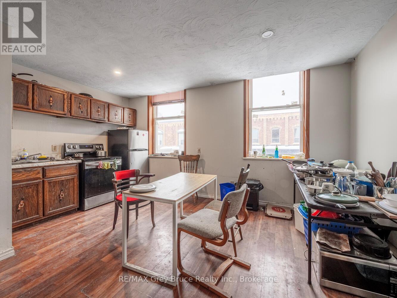 Opportunity awaits at 601 Berford Street in the heart of Wiarton-formerly known as KGUM BO and now operating as the Wiarton Roadhouse. This well-established mixed-use property offers both commercial and residential income potential in a high-visibility location. The main level features a spacious dining area with seating for up to 50 guests, complemented by a fully equipped commercial kitchen, two commercial washrooms, and ample storage to support day-to-day operations. The lower level adds further versatility with a separate function room that once accommodated up to 30 guests-ideal for private events or expanded service options. Upstairs, a generous 3-bedroom apartment with a full bath provides additional income or owner-occupancy potential.Both the commercial and residential spaces are currently tenanted, offering immediate cash flow for investors. Whether you're looking to expand your portfolio or step into a turnkey opportunity, this property delivers. Reach out to your REALTOR today for more details or to schedule a private showing. (id:64974)