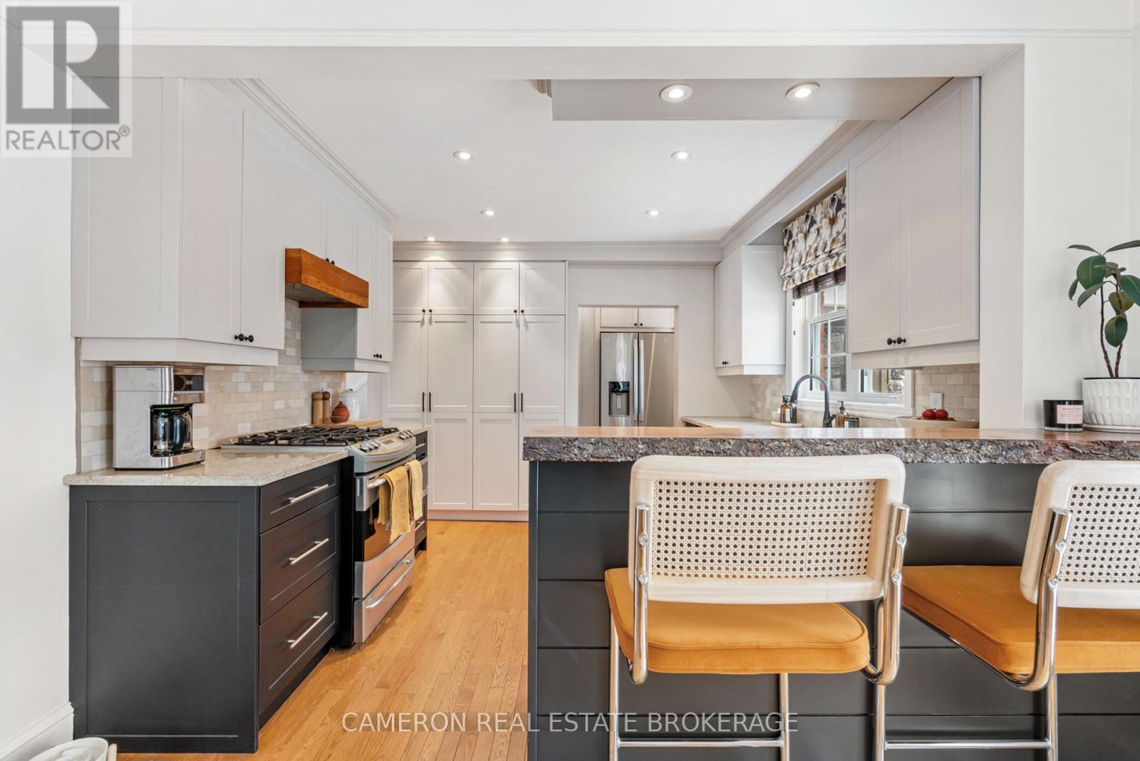 MODERN FAMILY HOME IN RIVERDALE! Are you in the market for a beautiful 2-storey home with an attached garage that's situated on an established street in one of the City's most premier neighbourhoods within walking distance to Riverdale Park, Schools, Public Transit and the Canal Lands + the Waterfront Trail? This tastefully modernized + well maintained home still retains much of its original character and is simply in move-in condition. Features include a gorgeous eat-in kitchen complete with two tone cabinetry + stone countertops, a dining area with french doors leading to the private rear yard oasis, a bright living room warmed by a cozy gas fireplace and overlooking the quiet street, 3 good sized bedrooms, 2 full updated baths, a mostly finished basement, a f.a. gas furnace with central a/c, many updated windows + doors, a heated garage and so much more! The pet friendly rear yard is fully fenced, treed + partially hedged and hosts a ground level patio area, there's a beautiful shed on a slab and plenty of space for the kids to play. Sale incudes appliances and California shutters. Sellers require SPIS signed & submitted with all offer(s) and 2 full business days irrevocable to review any/all offer(s). (id:64974)