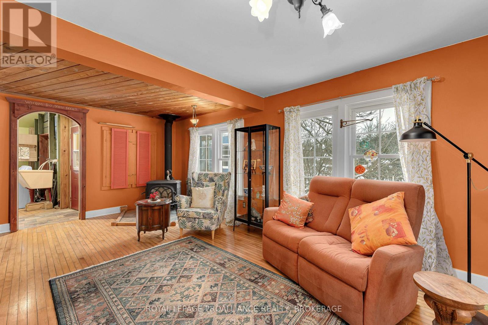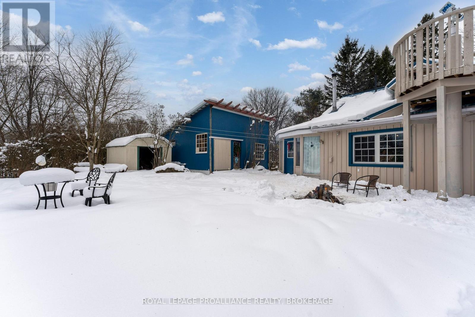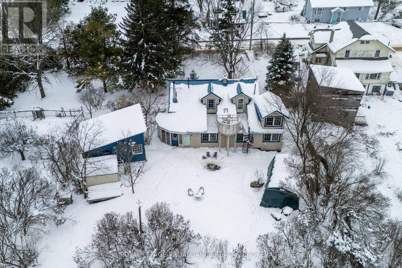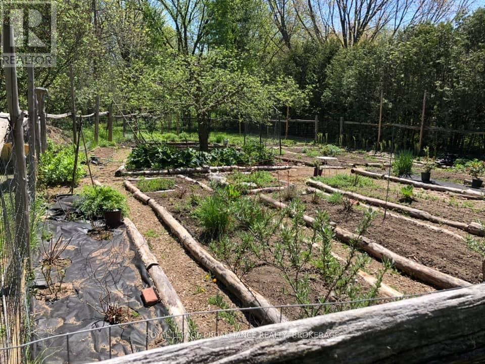Welcome to this charming century home nestled in the heart of Bellrock, a warm and welcoming small-town community (25 min to Kingston, 5 min to Verona) This beautiful gem is a true masterpiece, crafted with original hardwood and old-growth forest timber, milled at the Bellrock Lumber Mill. With 3 bedrooms and 2.5 washrooms, it's a home that tells a story, with every detail steeped in history and character. Step into the backyard, and you'll be greeted by the soothing sound of the Bellrock Mill Pond waterfall, a private swimming spot of your own. The Depot Creek waterway meanders through the rear of the property, eventually joining the Napanee River, creating a thriving ecosystem filled with turtles, otters, blue herons, dragonflies, and migratory birds. The private yard is a tranquil retreat, shaded by mature trees and adorned with lush lilac bushes, perfect for quiet mornings or family gatherings. Inside, the home has been lovingly updated while preserving its timeless charm. The freshly painted interior and exterior create a bright and welcoming atmosphere. The renovated main floor family room is perfect for lazy evenings, or gather around the cozy woodstove in the living room while enjoying quiet conversation. Upstairs offers three bedrooms and a 4 pc washroom. Wind your way up the spiral staircase to the outdoor observatory deck, with telescope mount, perfect for stargazing (Bortle 4 Dark Sky). The plant/sunroom, with its kitchenette and 3-piece bathroom, offers versatile space, while the main floor family room boasts original wood floors that exude warmth and character. Large Studio Shed, offers endless possibilities as a workshop or creative space, with a lower garden storage area for all your outdoor needs. This home is more than a place to live - it's a lifestyle, where history meets modern comfort, where nature and community come together, and where every corner tells a story. Many recent updates, inc. windows, furnace, appliances, water softener and more. (id:64974)