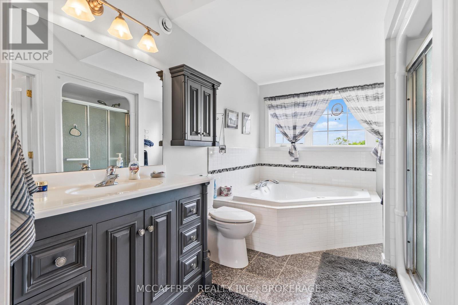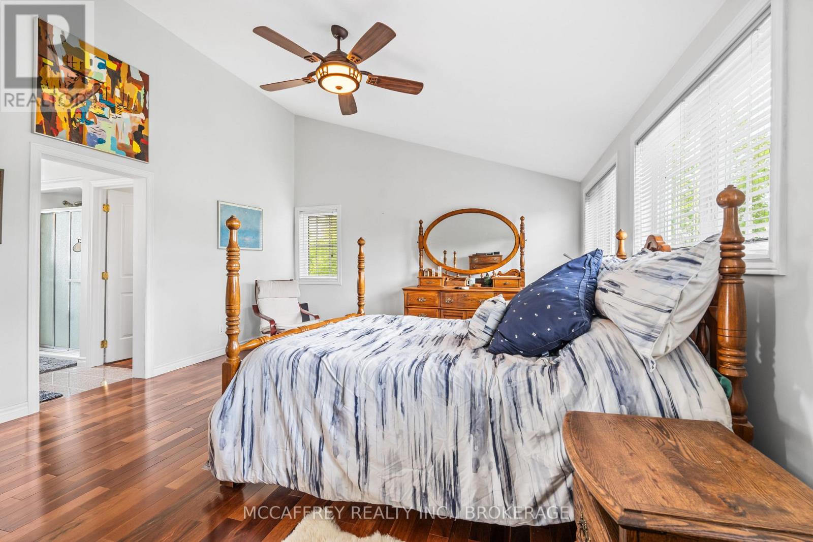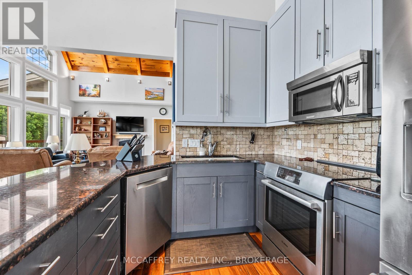 Welcome to your dream home on the shores of Hay Bay! This custom-built two-story masterpiece, constructed in 2012, blends luxury, comfort, and scenic beauty. Set on a 1.72-acre lot with 202 ft of waterfront, it offers unparalleled living. As you arrive, a double wide paved driveway leads to an attached 2-car garage and a distinctive detached 40' x 58' garage, complete with hydro and oversized doors (12'x14' & 12'x12'), ideal for boats, RVs, or a workshop. Inside, the main level impresses with 28 ft high cathedral ceilings adorned with BC Fir wood beams. Expansive windows illuminate interiors and offer picturesque views of the landscaped backyard and sparkling waters. This level includes a cozy living room with a gas fireplace, an office/den, and a gourmet kitchen with granite countertops, oak cabinetry, and a breakfast bar. The dining room and easy deck access enhance indoor-outdoor living, as well as entrances from the laundry room, and connections to the garage. Two spacious bedrooms, one with deck access, plus a 3 pc and a 4 pc bath, complete this level. Ascend the beautiful wooden staircase to discover the private sanctuary of the Primary suite. Here, you'll find a spacious bedroom complemented by two walk-in closets and a 4 pc ensuite, providing the ultimate retreat. The finished lower level enhances the home's entertainment and storage capabilities. The rec room features a wet bar, 2 pc bath, cold cellar, substantial storage room, and a utility room. Additionally, a semi-finished bedroom with walk-out offers flexibility for your needs. The outdoor space is nothing short of spectacular, with meticulously designed flower gardens and a 10'x24' floating dock invites you to embrace the waterfront lifestyle. Located just minutes from downtown Napanee, this home provides the perfect combination of convenient access to amenities and the privacy and tranquility of waterfront living. (id:64974)