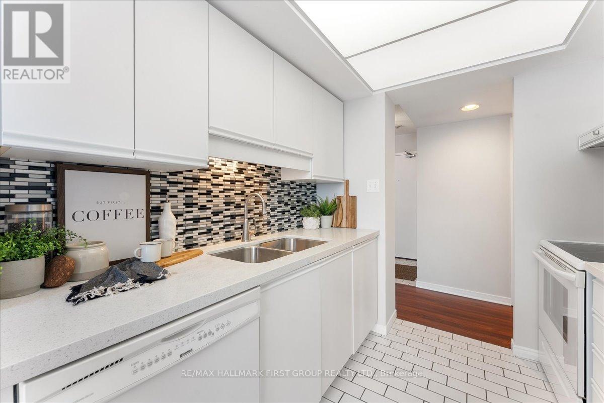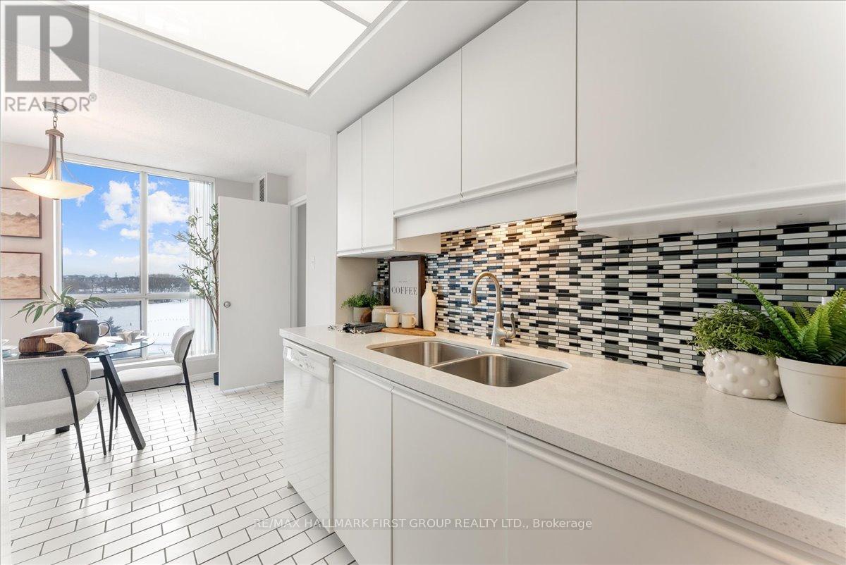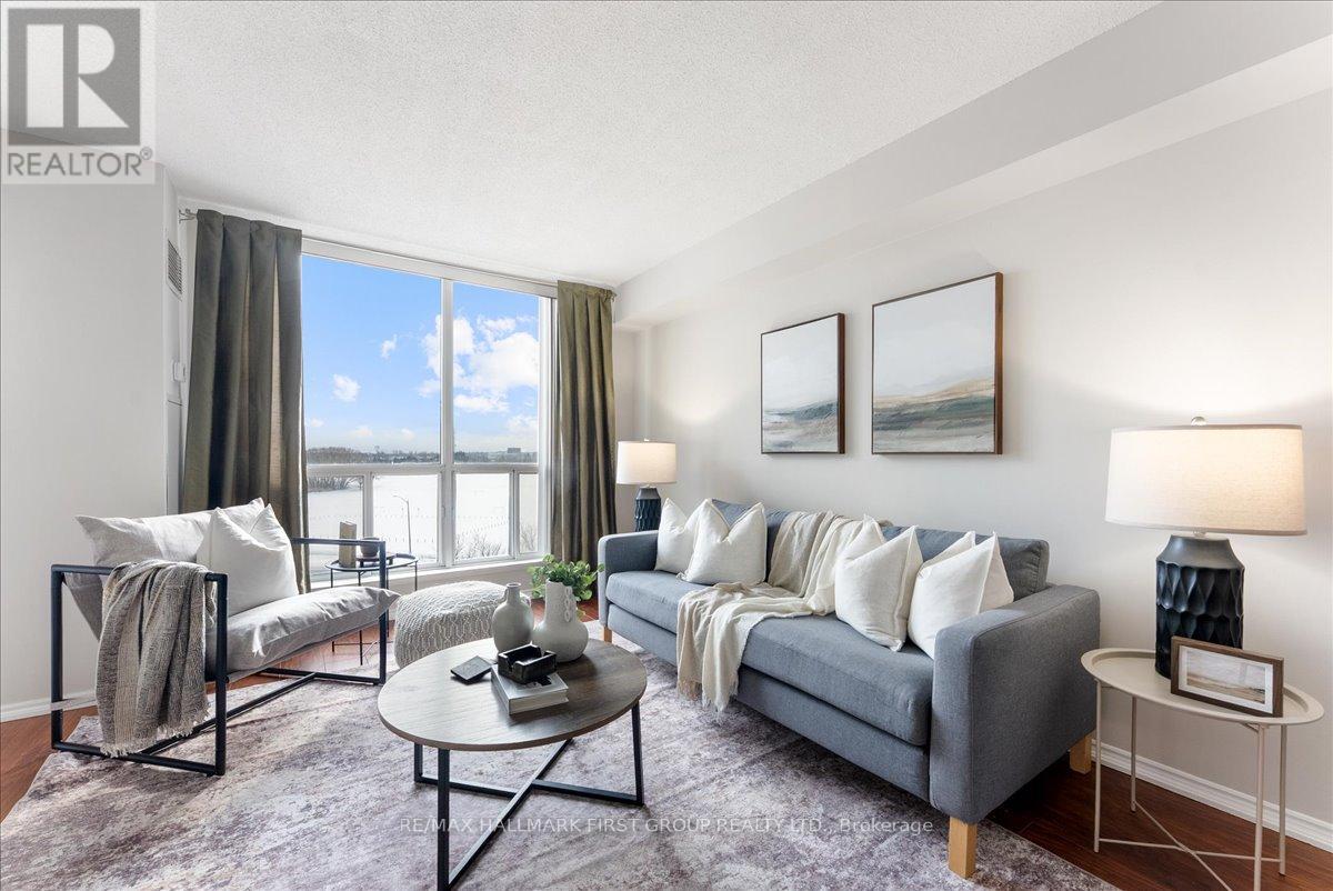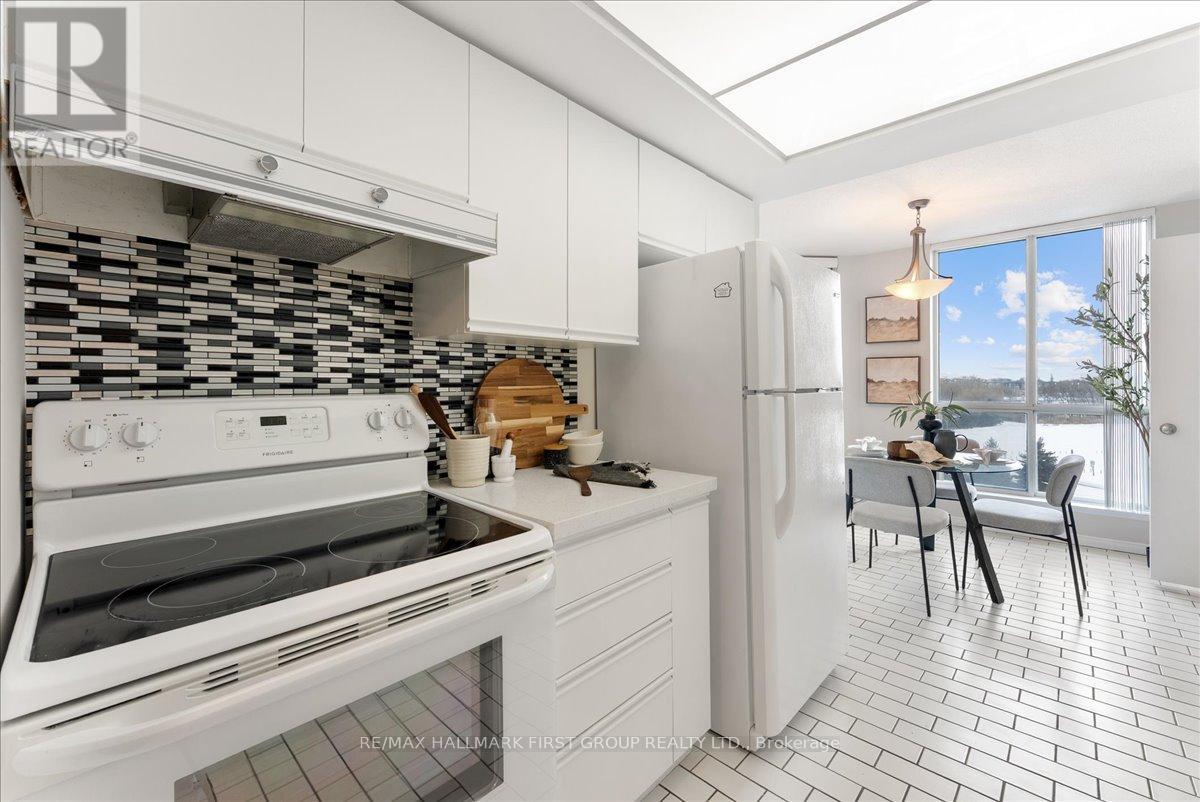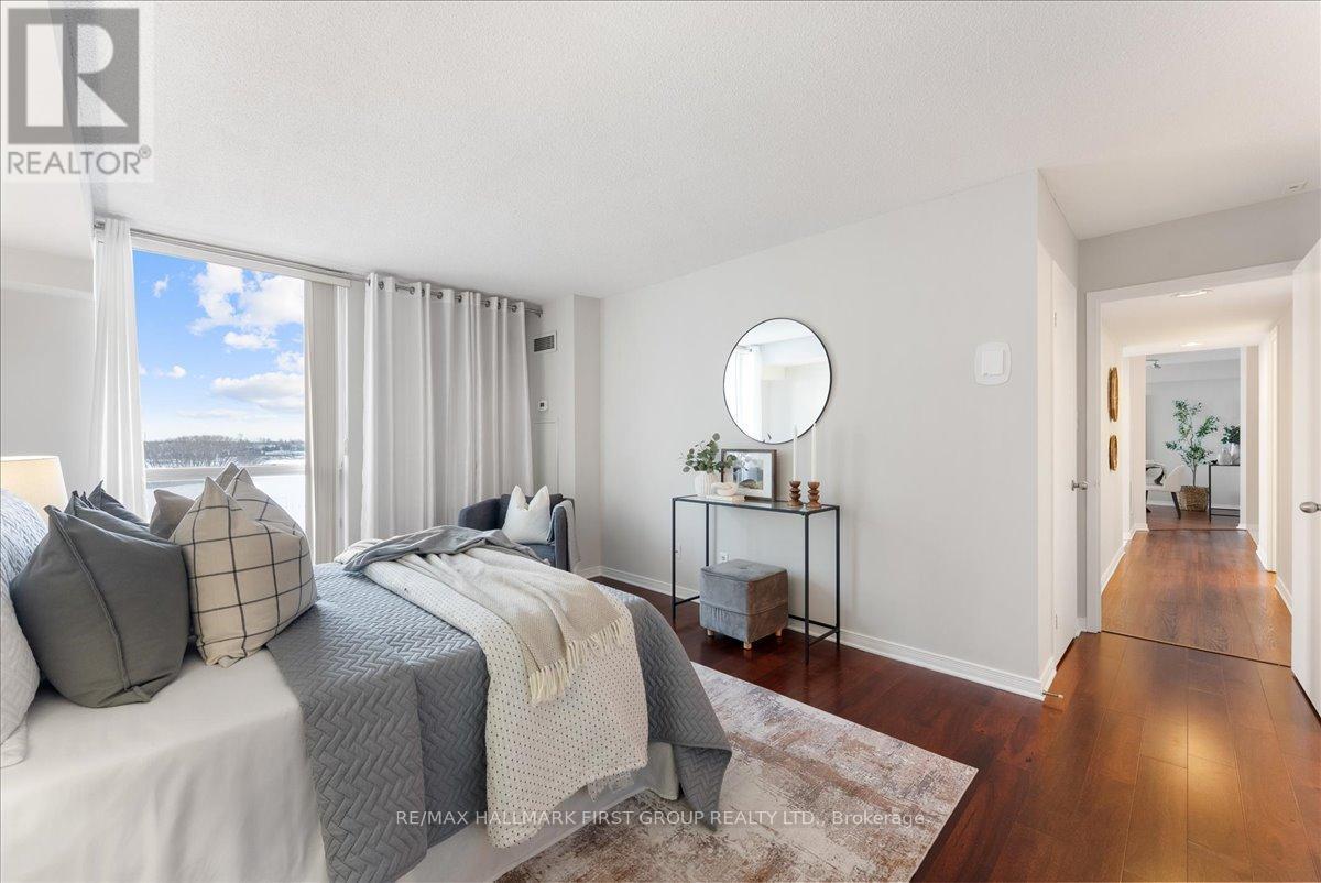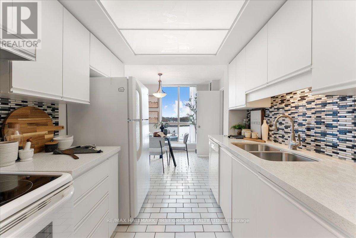 This updated "Mistral" model suite offers water and park views from every window and spans over 1,100 sq. ft. of thoughtfully designed living space, featuring 2 bedrooms, 2 full bathrooms, two walk-outs to the balcony, and a convenient ensuite laundry room. Recently repainted in a fresh, neutral dcor, the suite also showcases tasteful updates to the kitchen and bathrooms, creating a stylish, move-in-ready home. Designed with functionality in mind, the condo offers ample storage throughout, complete with built-in closet organizers to keep everything neatly in place. An underground parking space and a locker provide added convenience, while residents enjoy a wide range of building amenities and an unbeatable location within walking distance to shopping, scenic waterfront trails, the Abilities Centre, and the tranquil shores of Lake Ontario. (id:64974)