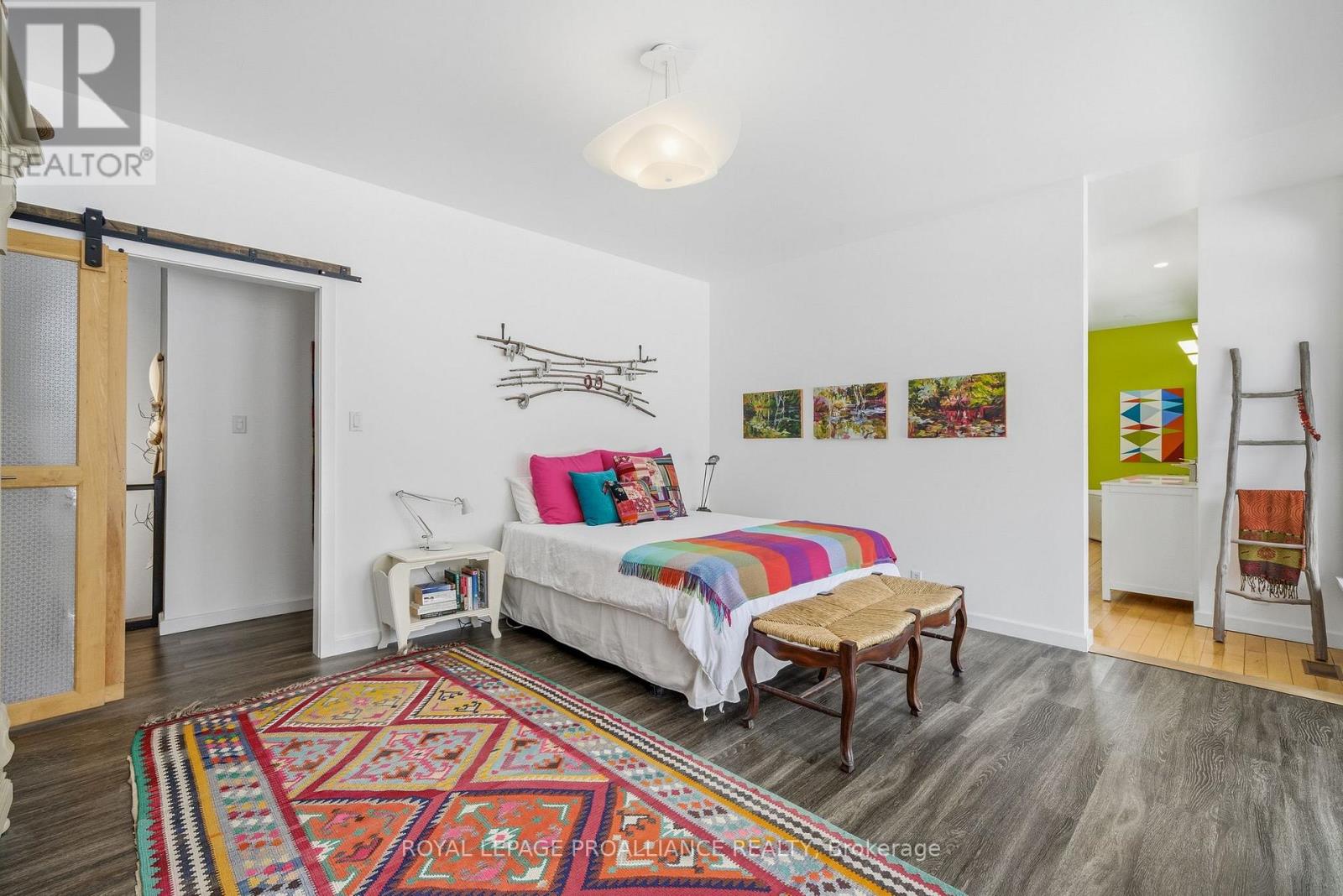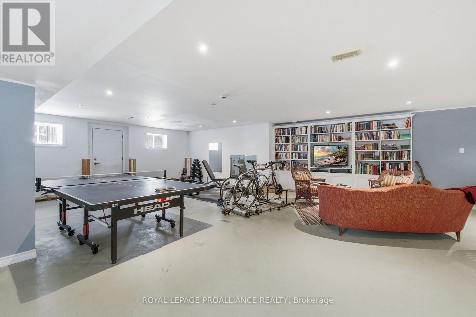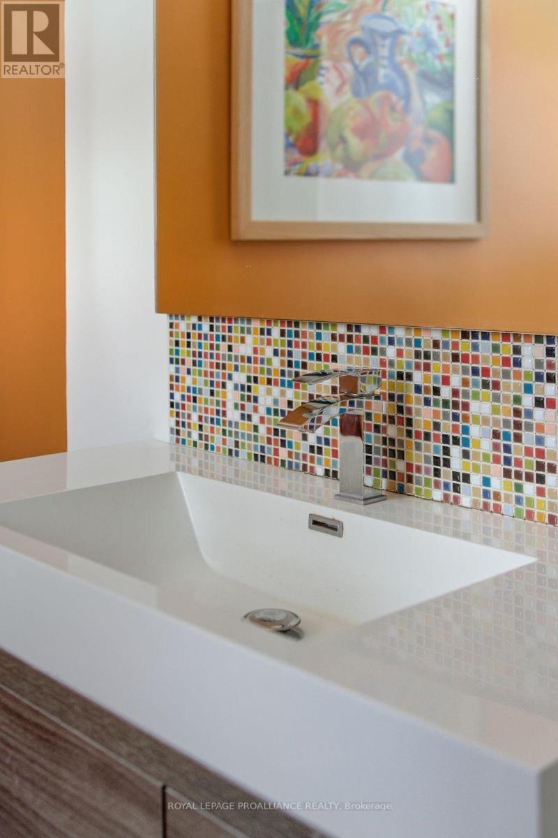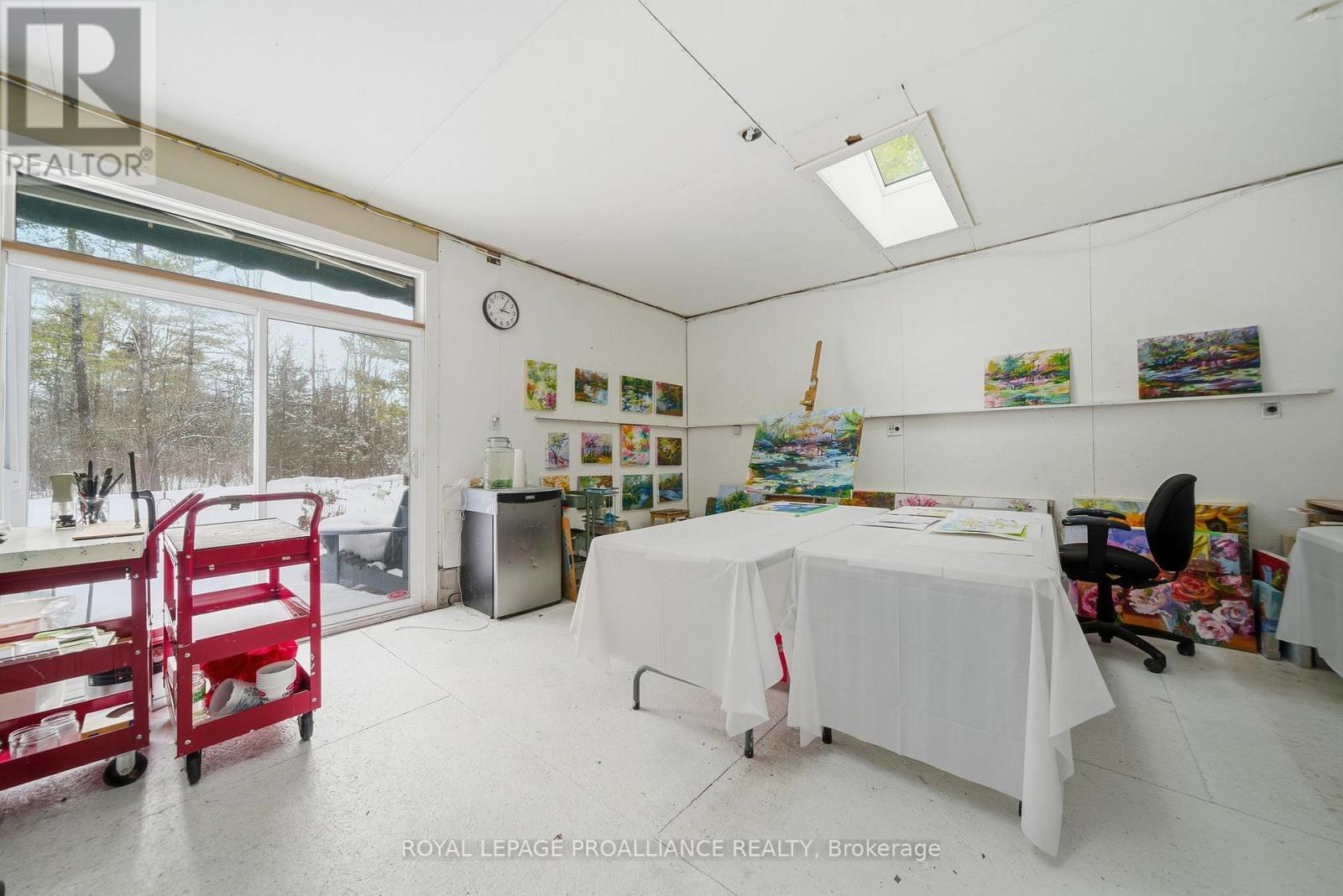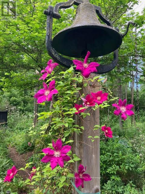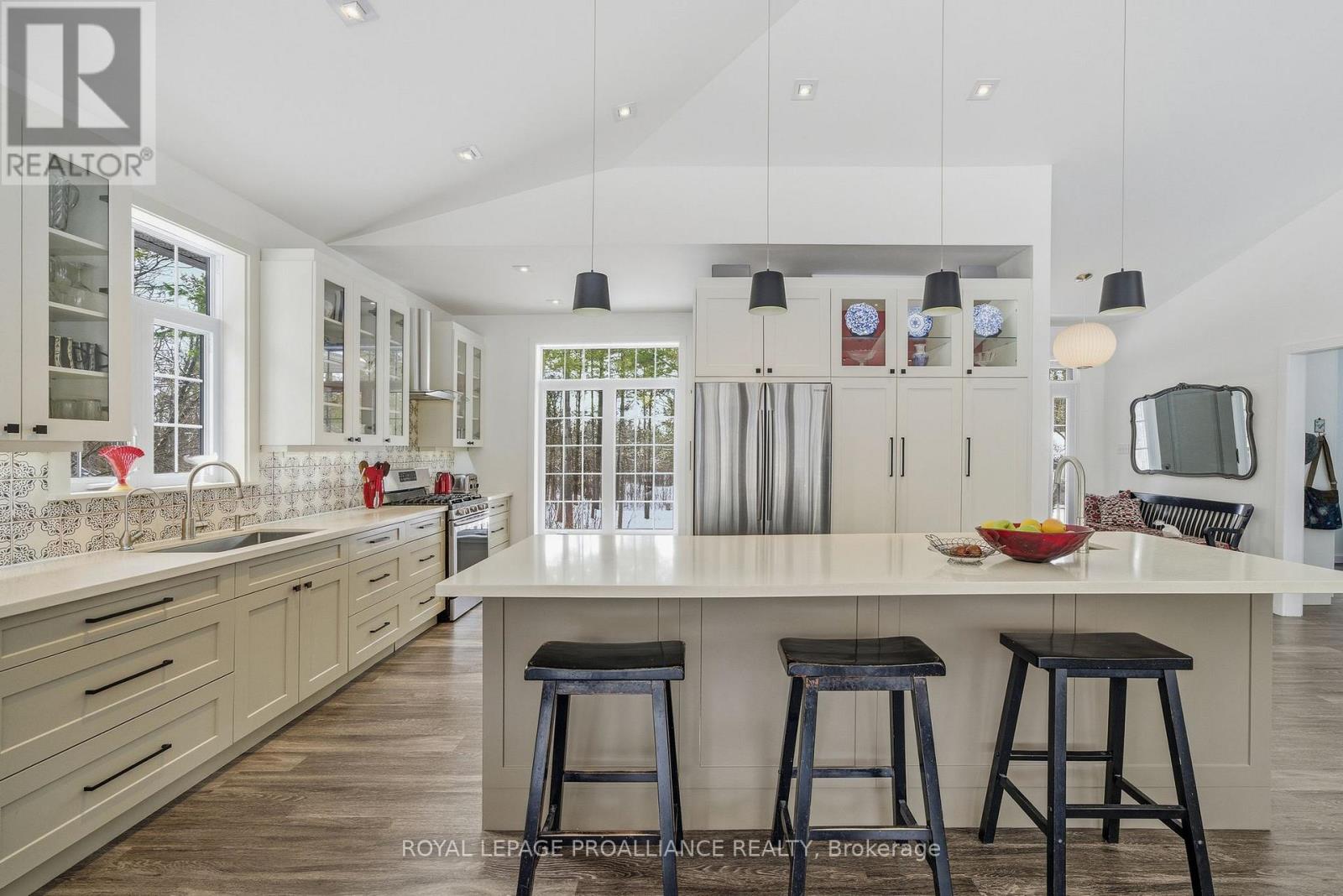 Follow the circular driveway through the trees to discover this inviting custom-built home, tucked away in a peaceful forest setting. Just minutes north of Picton, this raised ranch bungalow offers three bedrooms and an open-concept great room combining a spacious gourmet kitchen with dining and living areas. A striking stone wood-burning fireplace climbs to the vaulted ceiling, while expansive windows and skylights fill the entire space with abundant natural light and showcase the surrounding landscape. A screened-in 50' deck extending the full length of the back, provides front-row seats to the woods and its inhabitants, great for al fresco dining. The primary bedroom features a walk-in closet, a four-piece ensuite and direct access to the deck and hot tub install for a relaxing retreat. The commodious semi-finished basement boasts 8' ceilings, a wood-burning stove and a separate side entrance that together with the upstairs offers over 3,000 square feet. An oversized heated double garage is split between an artist's studio with skylights and patio doors overlooking a deck and mature perennial gardens while the remaining garage currently serves as a workshop/garage with 240 volt service. Lastly, a large, matching shed provides ample space for gardening tools and power equipment. This home is a turnkey invitation for cozy country living and entertaining. **** New 97% HE Propane furnace -2026, front and back decks restored & new Bosch Dishwasher- 2025, ensuite fully renovated -2024, new kitchen appliances, washer and dryer, powder room - 2017**** Garage Dimensions 27' x 18'8" | 504 sq ft Studio Dimensions 27'4" x 16'3" | 444 sq ft (id:64974)