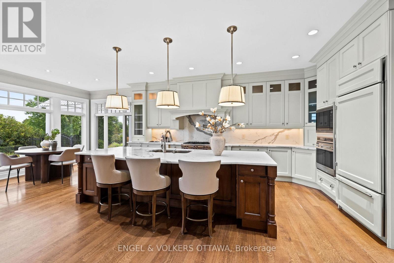 Designed by Jim Parsons and crafted by multi-award-winning Terra Nova, this Cape Cod-inspired residence captures the enduring elegance of the Hamptons. Nestled on 3.17 acres of meticulously landscaped grounds by Gerald Wheeler, the property offers direct Rideau River access, a private dock, and a resort-style in-ground pool, all just steps from the prestigious Rideau View Golf Club.Inside, exquisite craftsmanship is evident at every turn-from the custom Irpinia kitchen with marble countertops and full-height book-matched backsplash, to the Parliament-inspired office and a main-level primary suite designed for comfort and style. Featuring 4 bedrooms, 6 bathrooms, and sweeping panoramic river views, this home seamlessly blends architecture, landscape, and luxury into a cohesive legacy property.6029 Rideau Valley Dr. N is more than a home-, it's a refined residence where every detail has been perfected, offering a lifestyle of unmatched elegance and timeless appeal. (id:64974)