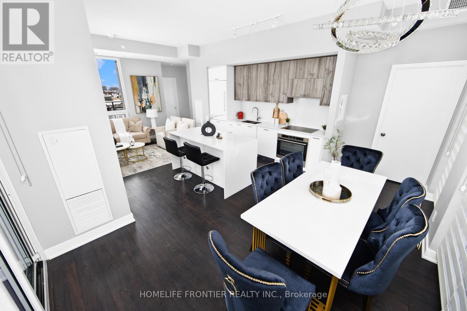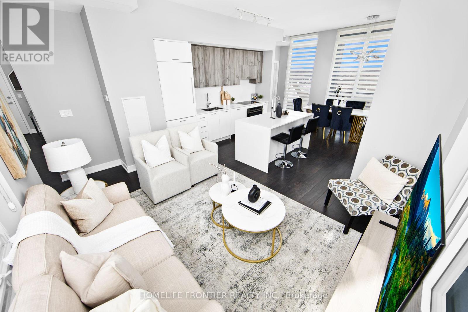 Luxurious 3-Bedroom 2-Bath Corner Suite boasting over 1,245sqfeet of Open Concept Space, 11FT High Ceilings & Soaring Floor-to-Ceiling Windows that flood the Living & Dining Areas with Natural Light. The European Designer Chef's Kitchen is a modern dream, Fully Upgraded with Sleek Quartz Countertops & Built-In Appliances, while a Massive Wrap-Around Terrace offers Stunning Panoramic Views from every angle. Complete with 2 side-by-side underground parking spaces & a private entrance, this residence is perfectly positioned minutes from the Mount Pleasant GO Station, transit, hospitals, & parks in Southwest Brampton. Modern living at its best in a this Boutique Building. (id:64974)